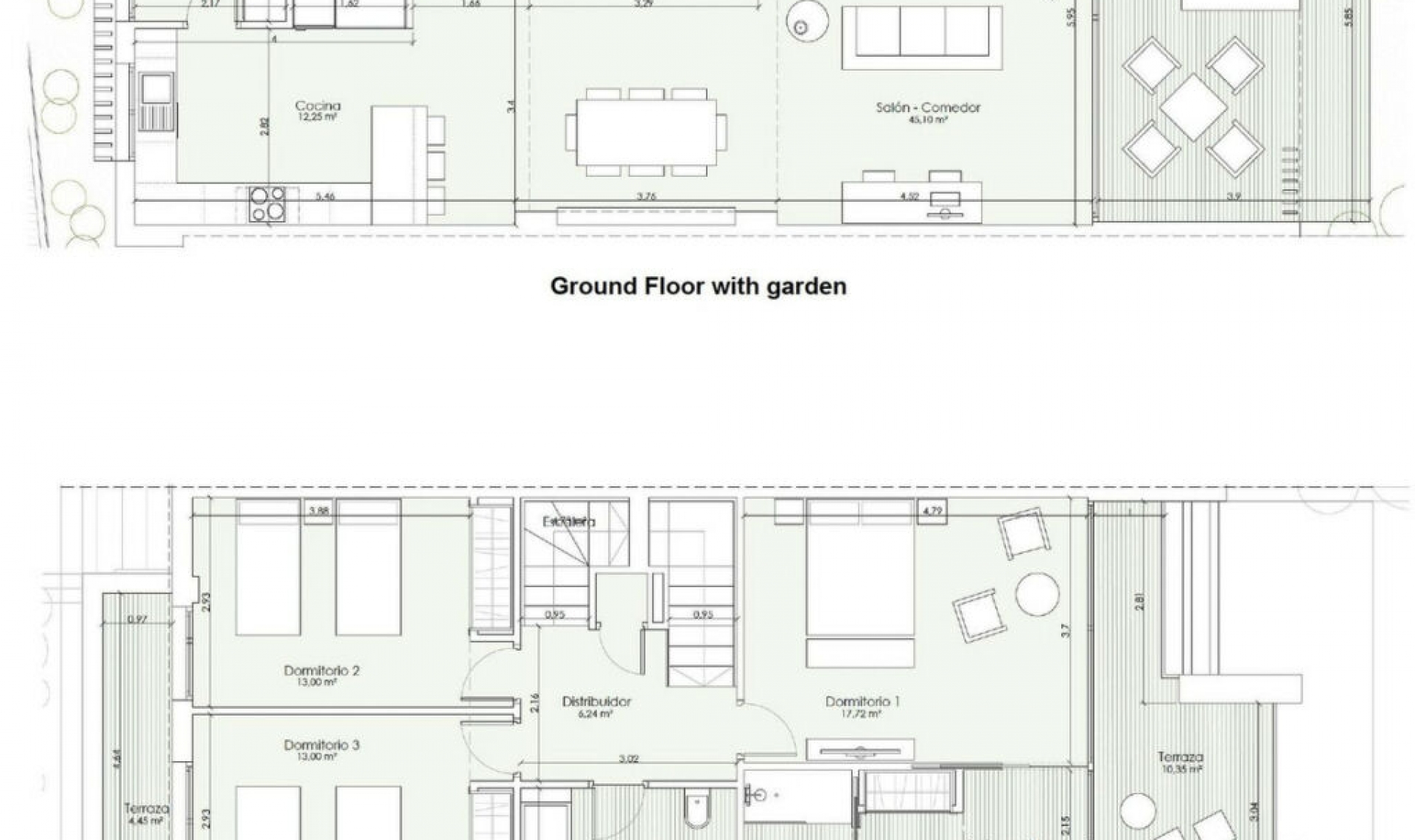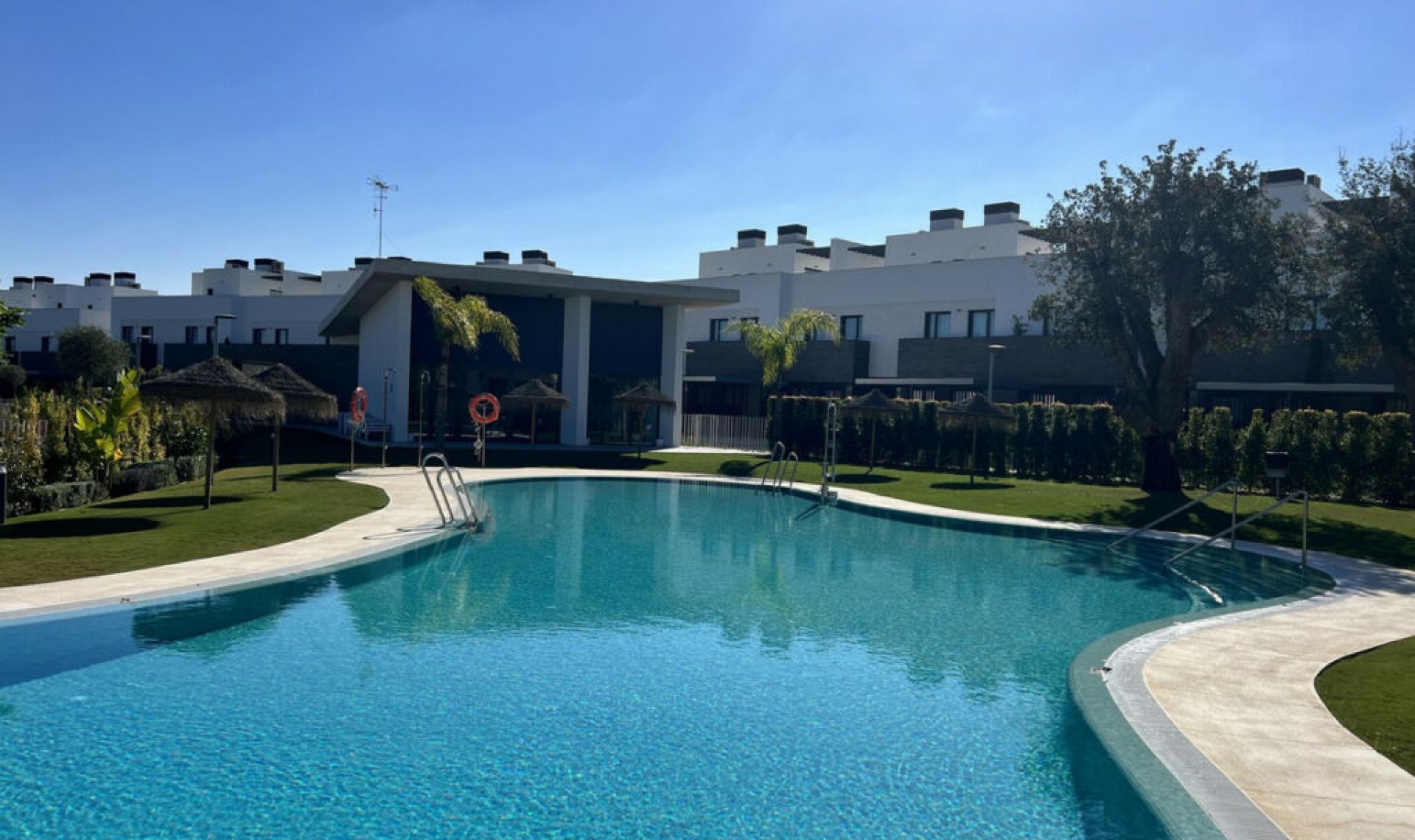 This exceptional townhouse, completed in 2022, offers contemporary living with stunning views of the prestigious San Roque Golf Club. With 180 m² of usable space, whether you're looking for a dream vacation home or a permanent residence, this property has it all. Featuring 3 spacious bedrooms, a stylish living and dining area, an open-concept kitchen, 2 bathrooms, a guest toilet, as well as storage space and 2 garage spaces, this home combines comfort and practicality. The ground floor boasts a bright and airy living room that opens up to a large west-facing terrace and private garden, perfect for outdoor gatherings, with stunning views of the golf course. The sleek, modern kitchen is fully equipped with high-end appliances. Also on this level, you'll find a convenient guest WC and a useful storage room. Upstairs, the master bedroom comes with an en-suite bathroom and a private glazed balcony overlooking the golf course. Two additional well-sized bedrooms share a bathroom with a bathtub, and have access to a balcony with views of the community pool. The spacious rooftop terrace, offers panoramic views of the sparkling sea, the well-maintained golf course, and the community area. Large, modern windows with aluminum frames flood the home with natural light, while an energy-efficient heat pump system ensures comfort throughout the year. Situated in a secure, gated community with 24-hour security, this property offers both luxury and peace of mind. The complex features a gym, sauna, and a communal pool, all surrounded by beautifully landscaped gardens and cork oak trees. Located in a peaceful setting, it's just a short drive from Alcaidesa Beach and Sotogrande Marina. This is a rare opportunity to live in one of the most sought-after locations in Spain. Don't miss your chance to own this exceptional property!