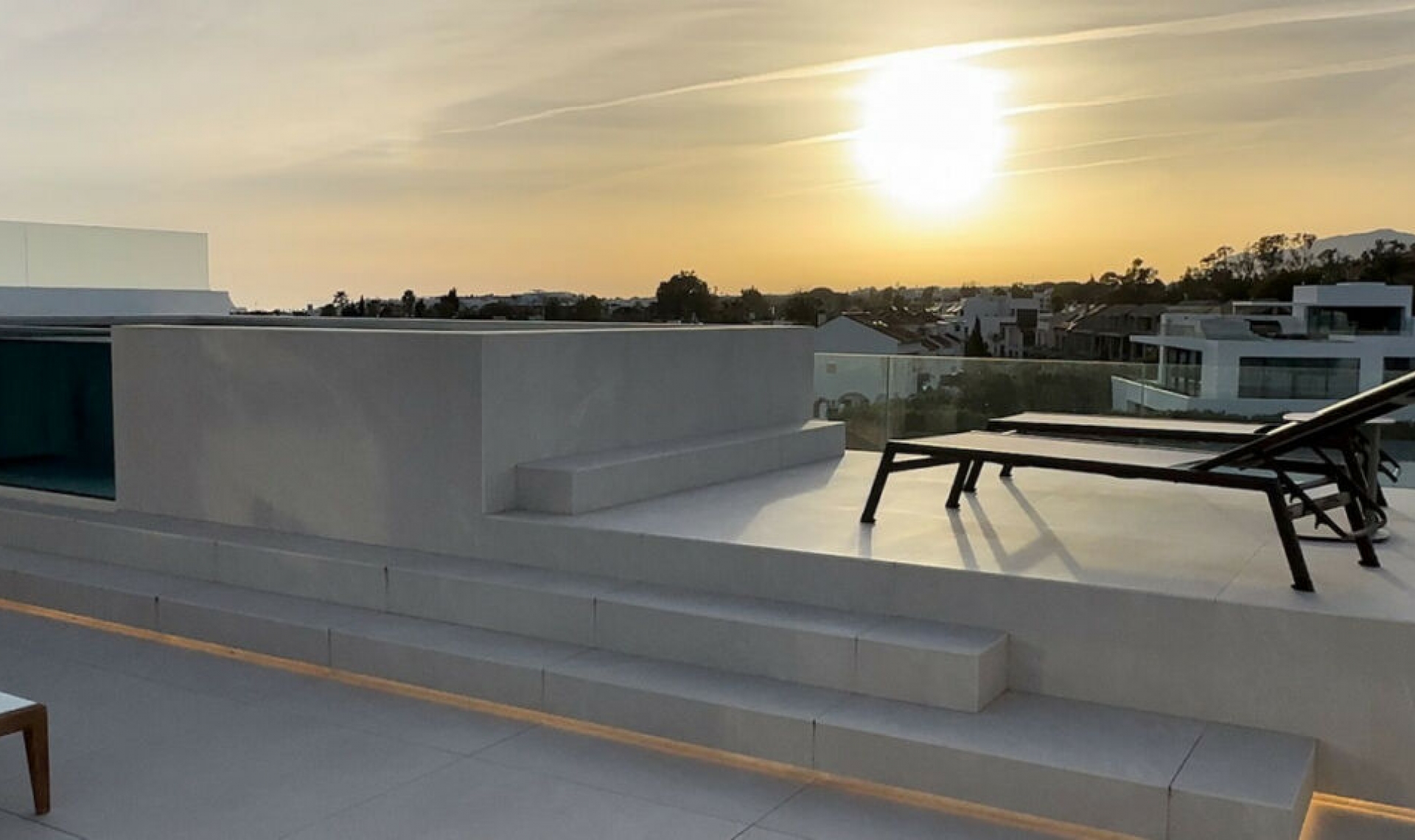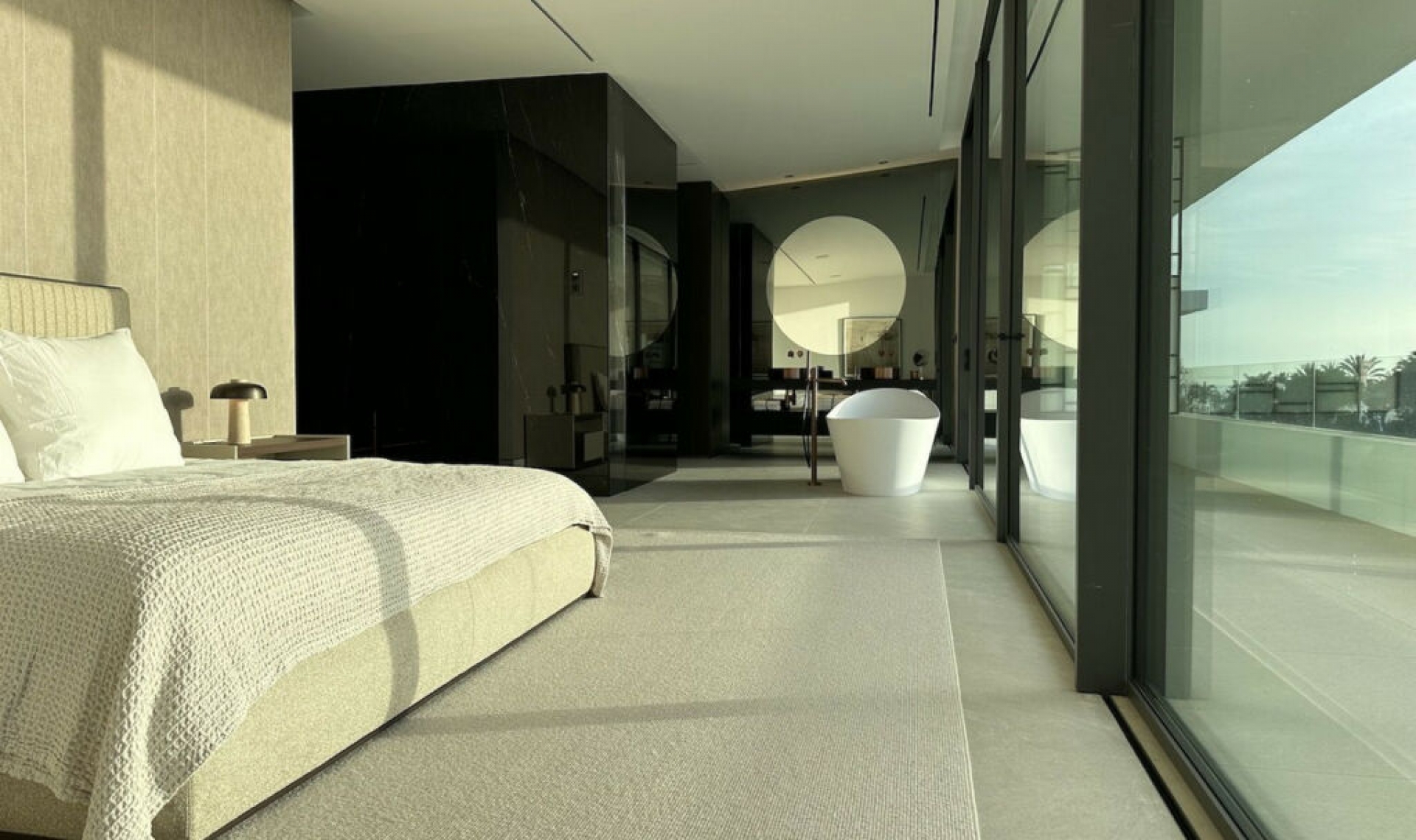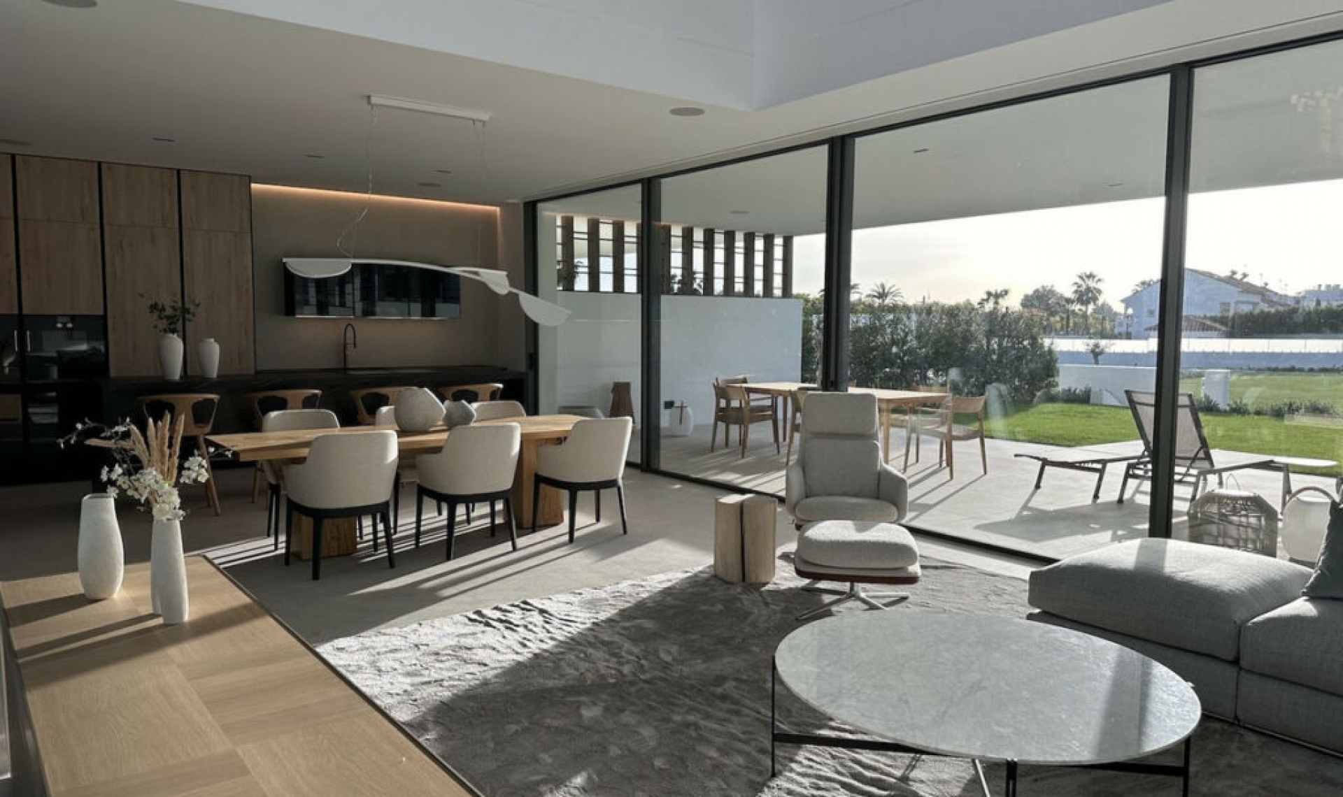 Brand new modern villa located in the prestigious area of Marbella's Golden Mile, close to the beach and within a secure community. This home is all about comfort and convenience, featuring modern architecture and private amenities. The villa has been built in four levels, including a basement that can be customized and a rooftop terrace with a small heated pool. Designed with an open layout to maximize space and natural light, it includes a private lift to access all levels. On the first level, you find the master bedroom suite with a designer walk-in wardrobe, a terrace, and another two spacious suites. The basement provides options for adding a gym, spa, extra bedrooms, or a studio. A great location with a practical design, making it suitable for those looking for a modern home.