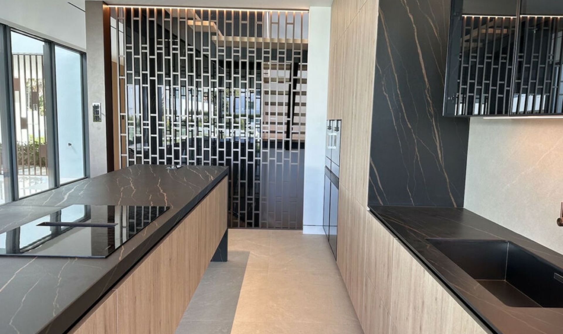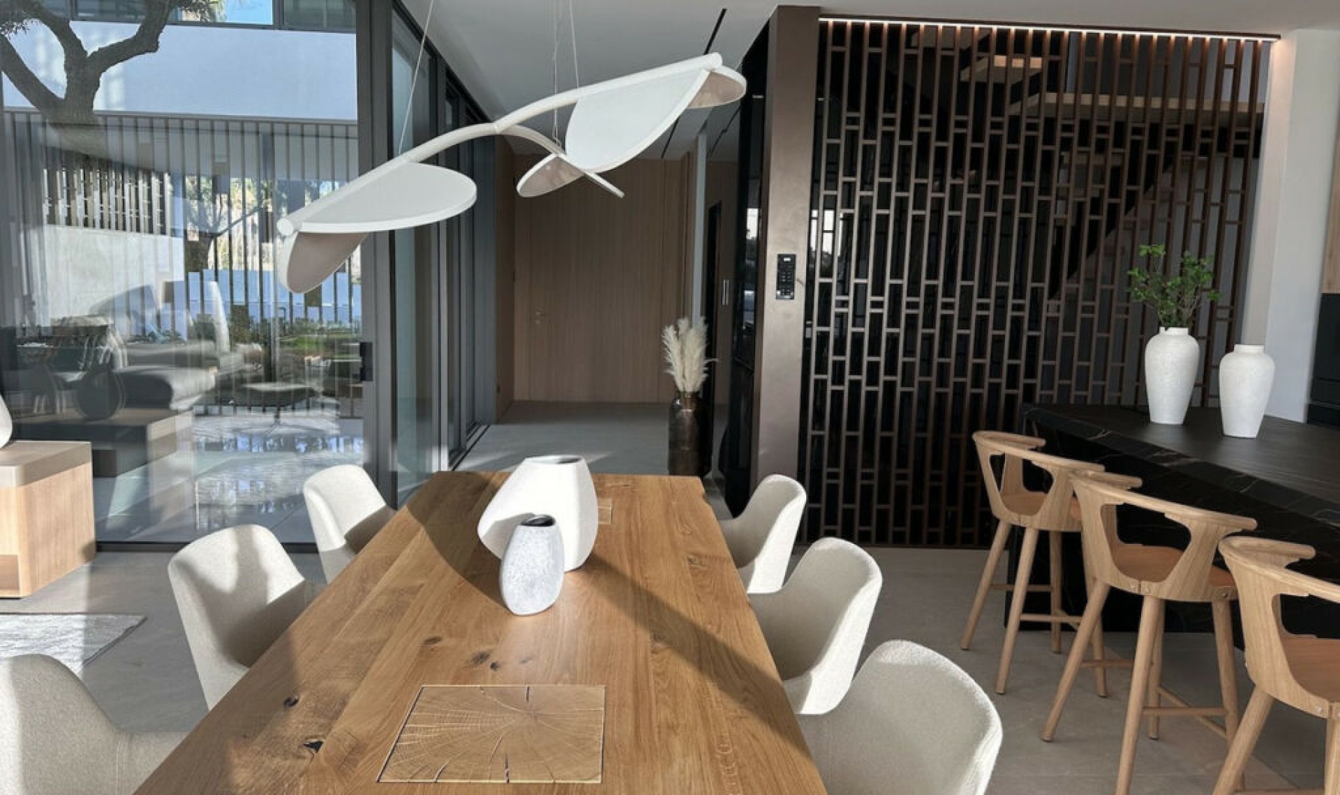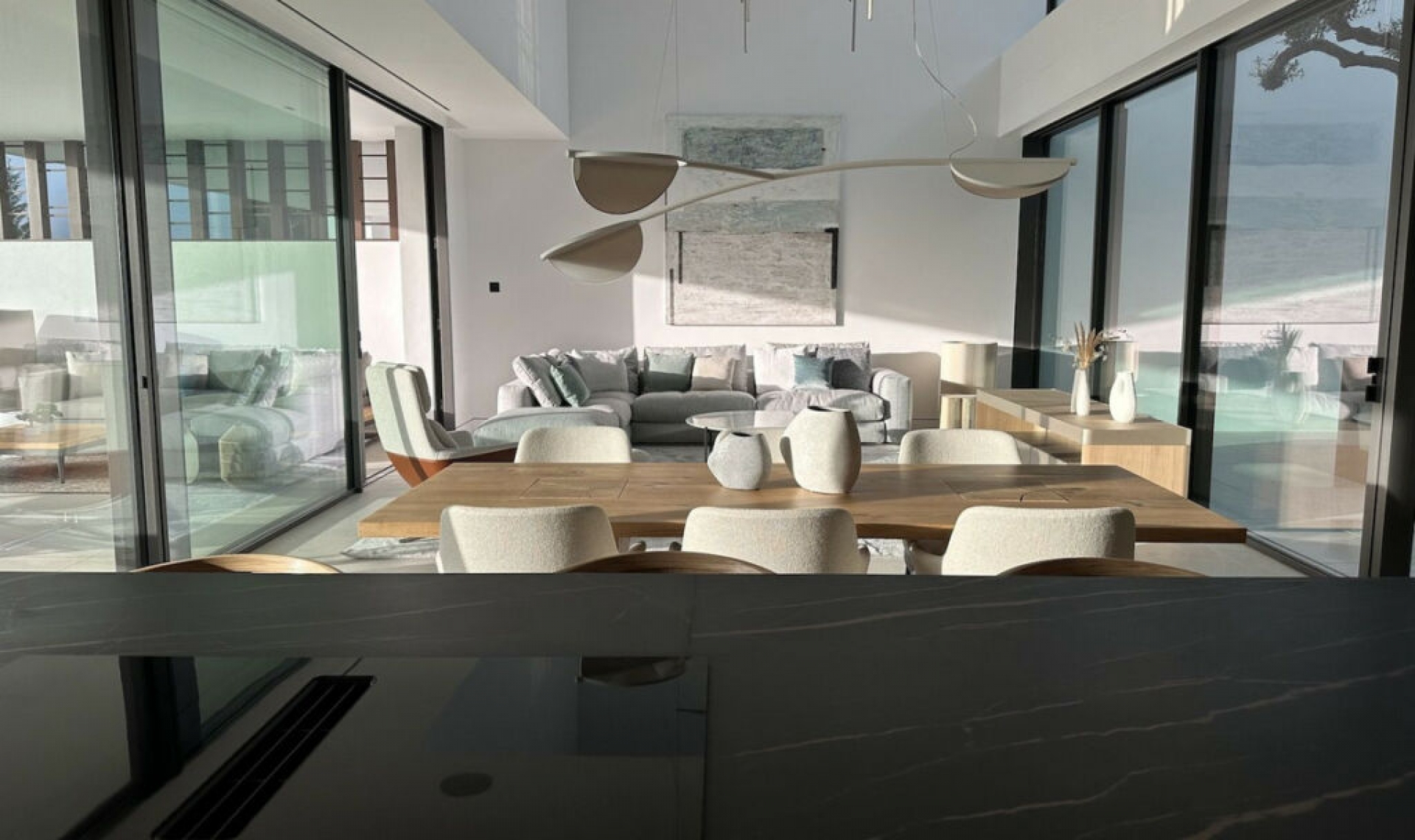 Brand new modern villa located in the prestigious area of Marbella's Golden Mile, close to the beach and within a secure community. This home is all about comfort and convenience, featuring modern architecture and private amenities. The villa has been built in four levels, including a basement that can be customized and a rooftop terrace with a small heated pool. Designed with an open layout to maximize space and natural light, it includes a private lift to access all levels. On the first level, you find the master bedroom suite with a designer walk-in wardrobe, a terrace, and another two spacious suites. The basement provides options for adding a gym, spa, extra bedrooms, or a studio. A great location with a practical design, making it suitable for those looking for a modern home.