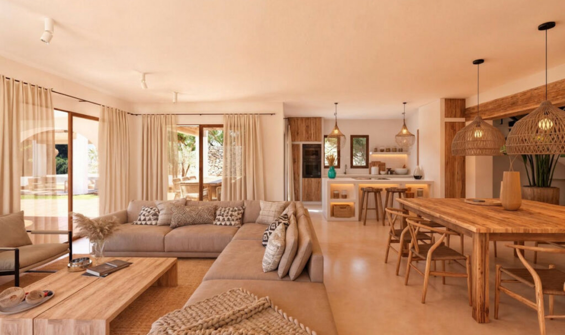 New Development: Prices from 1․795․000 € to 1․795․000 €. [Beds: 4 - 4] [Baths: 4 - 4] [Built size: 264․00 m2 - 264․00 m2] Luxury Mediterranean Rustic Villa with Sea and Mountain Views Discover this elegant rustic Mediterranean-style villa, situated on an extensive plot that offers both privacy and an unparalleled natural setting. With breathtaking sea and mountain views, this exclusive property combines the charm of a traditional country house with all modern comforts. The home features spacious bedrooms, all with en-suite bathrooms, as well as a guest toilet. The interiors stand out for their high-quality materials, blending rustic and Mediterranean elements, large windows, and Technal carpentry that maximizes the connection with the surrounding landscape. Comfort is ensured with underfloor heating and ducted air conditioning. The exterior invites you to enjoy outdoor living with expansive open spaces, gardens, and terraces that make the most of the panoramic views. The property also includes outdoor parking and offers customization options. Additionally, 6․000 m² of the estate is dedicated to the production of the region's traditional Muscat grape. This unique villa combines contemporary luxury with rustic character, ideal for those seeking an exclusive, tranquil lifestyle yet close to the beaches and all amenities. *There is the possibility of adding a basement over the entire area of occupation of the house for a cost of 155․000 €, finished like the rest of the house and customizable.