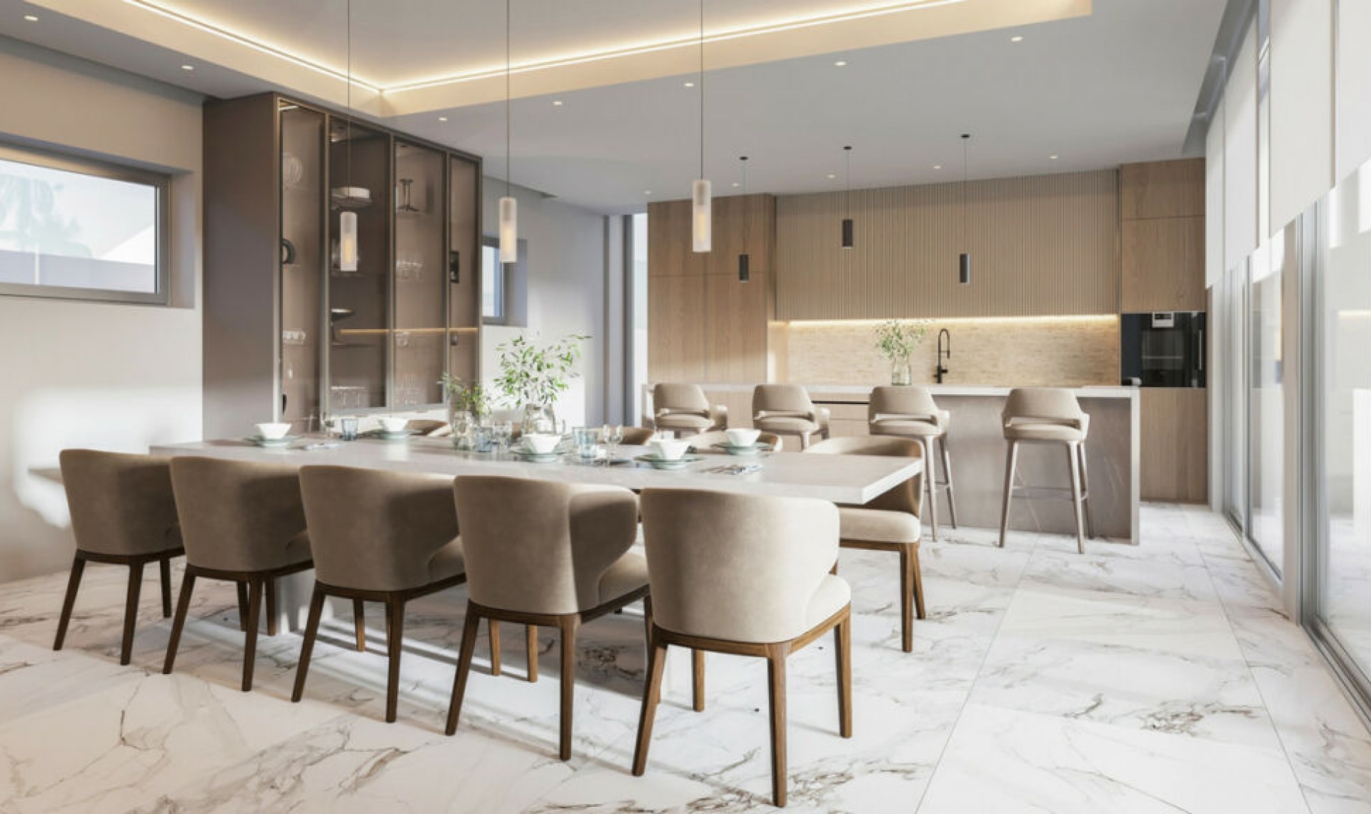 Brand-new property for sale in Paraiso Alto that will be ready for you by the end of 2023. The villa has a dynamic design with an open plan concept, geometric shapes and clean lines of style. The house offers six bedrooms, six bathrooms, guest toilet, large living and dining areas, a fully equipped American style kitchen with high quality appliances. On the lower floor it will be possible to have a wine cellar, a wellness area with a gym, spa and sauna. The villa will have huge windows with double height ceilings and glass doors will give you an amazing feeling of light and lightness. The impressive pool with waterfall will be covered with a special stone from Indonesia that purifies the water. An automatic irrigation system will be installed in the garden. The house also provides - a guest room, laundry room, pantry and dressing room, elevator, studio, separate guest toilet and a private garage that will accommodate three of your cars. Amenities include a digital video intercom, air conditioning and underfloor heating, Smart Home, a unique glass fireplace, built-in wardrobes and more. The villa is located in the exclusive residential complex "El Paraiso Alto", surrounded by several golf courses, is located in the quiet valley of El Paraiso.