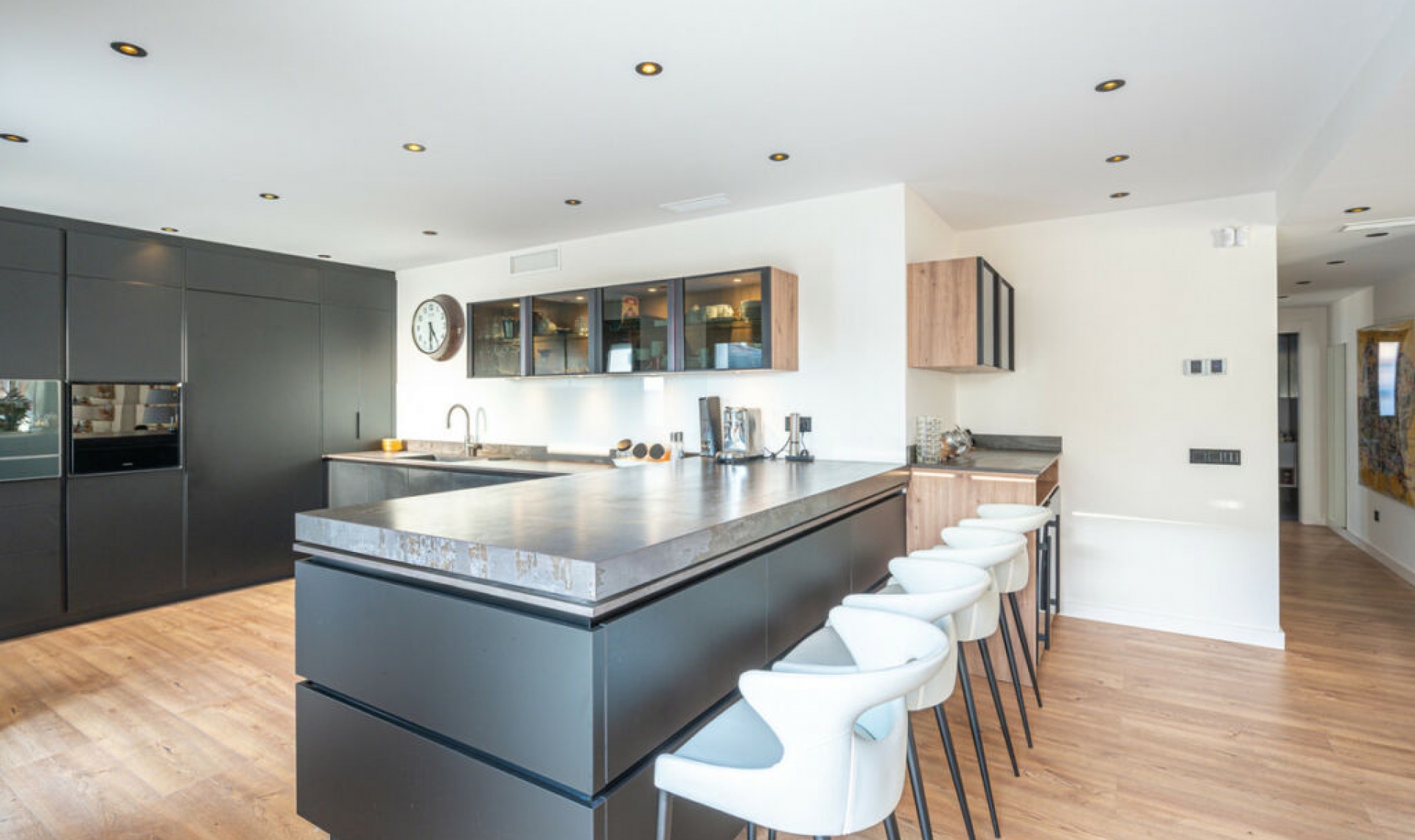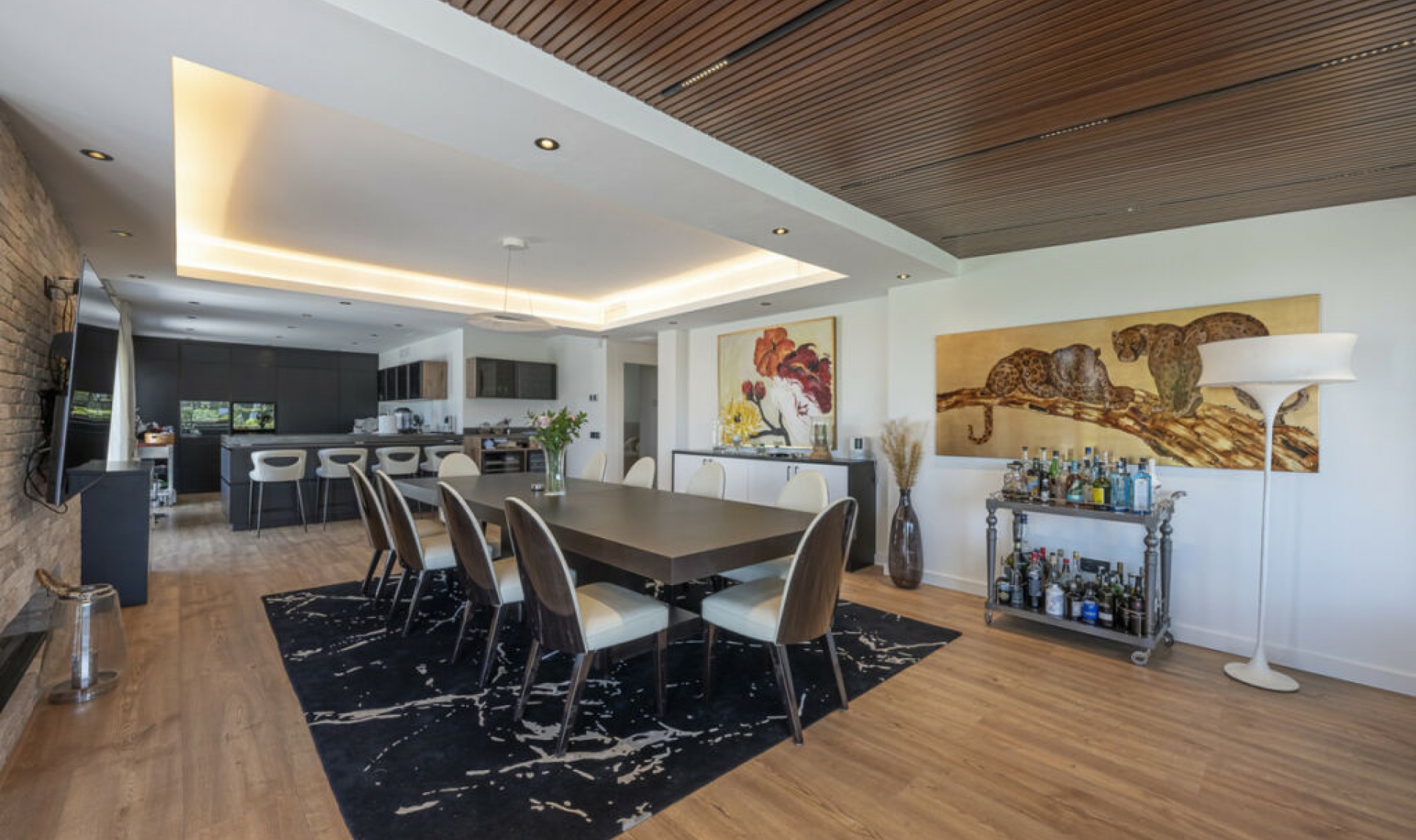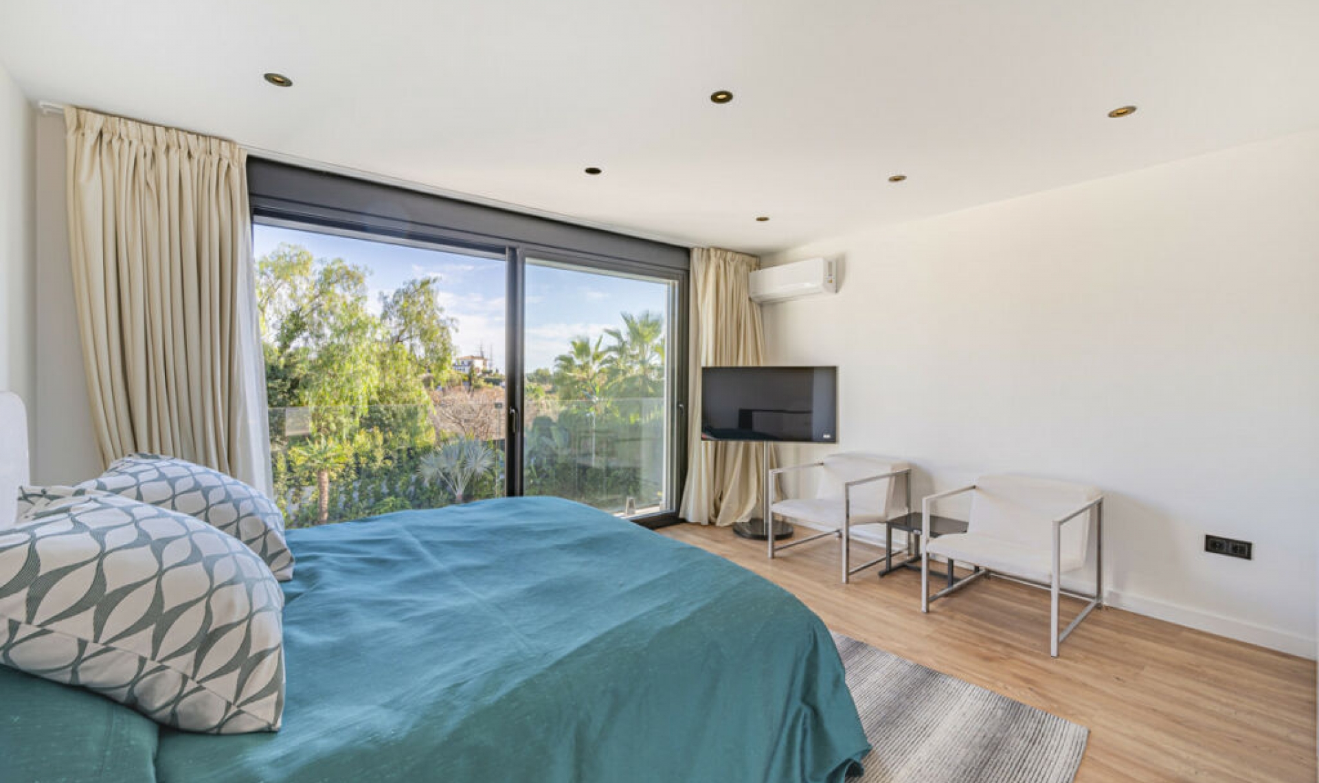 Presenting an exceptional villa in the sought-after El Rosario Urbanization on the esteemed Costa del Sol. This meticulously renovated property epitomizes luxury and stands as one of the premier residential areas on the eastern side of Marbella. Nestled in an enclave of villas surrounded by lush gardens, this residence prioritizes serenity. The villa boasts nearly 310 m2 of living space on a 1․065 m2 plot, featuring a pool, solarium, terraces with a covered outdoor kitchen, garden areas, and a covered garage. The residence features underfloor heating and electricity from advanced photovoltaic systems. Calacatta Venato marble adorns the exterior, and oak doors with an Iroko finish add elegance. The open-plan living and dining area seamlessly connects to a kitchen with wooden floors, creating an expansive space. The upper floor showcases three bathrooms with marble flooring and three bedrooms, two en suite, with illuminable wardrobes. The smaller bedroom is repurposed as a fitness area, while the main bedroom boasts a terrace with fitness equipment. The Gaggenau-equipped kitchen features top-of-the-line appliances and fine Moblapa wood furniture. Two guest flats with private entrance offer additional space. The villa includes a climate-controlled wine cellar and a newly constructed guest house with pure luxury and splendid views. The outdoor kitchen is equipped with exclusive all-weather technology and high-end appliances.