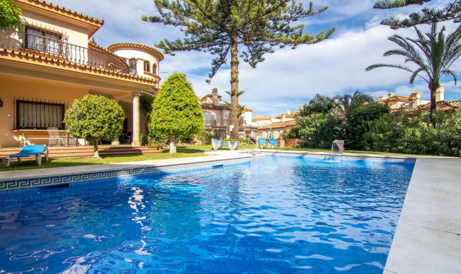 This enchanting and unique townhouse is nestled within the exclusive Belgravia Club, offering direct access to Estepona Marina, the port, and the renowned El Cristo Beach. This gated haven comprises townhouses and apartments set within the grounds of a colonial-style villa, once the residence of the Moroccan Ambassador. The serene pool area invites relaxation with its sun loungers, tables, chairs, and a delightful communal barbecue. As you step inside, a fully fitted kitchen welcomes you, leading into a vast, open-plan lounge and dining area adorned with elegant white marble floors, a cozy fireplace, and expansive patio windows. These open onto a charming terrace that boasts breathtaking panoramic views of the sea and Estepona Marina—a perfect spot for enjoying the best of outdoor living with sun all day long. Ascending the stairs, the master bedroom enchants with its en-suite bathroom and stunning vistas of Africa and Gibraltar. Across the landing, another double bedroom with a separate guest bathroom overlooks a quaint courtyard featuring a fountain and orange trees, exuding Andalusian charm. The top floor reveals a spacious terrace complete with a barbecue area and picturesque views of the boats, marina, Gibraltar, and the magnificent Moroccan mountain range, including the stunning Atlas Mountains. Each bedroom is equipped with fully fitted wardrobes, blinds, and air conditioning. Descending to the basement, you will find two generous double bedrooms with fitted wardrobes, a bathroom, and a sunroom enclosed in glass, offering a cozy lounge area with captivating sea views. This property also includes a separate apartment with its own bathroom and private access, ideal for accommodating extra guests. Includes fully fitted kitchen, alarm system, fitted wardrobes and airconditioning. Outdoor awning for shade. Belgravia Club, with its enchanting gardens and Andalusian architecture, is one of the most sought-after communities in Estepona. It features a communal swimming pool, off-street parking, direct access to the marina and Playa del Cristo, and the added luxury of a five-bedroom guest villa for residents. Estepona's charming old town is just a ten-minute stroll away, with a cycle path and public transport right at your doorstep. The location is simply unbeatable. This property is perfect as a holiday home with exceptional rental potential.