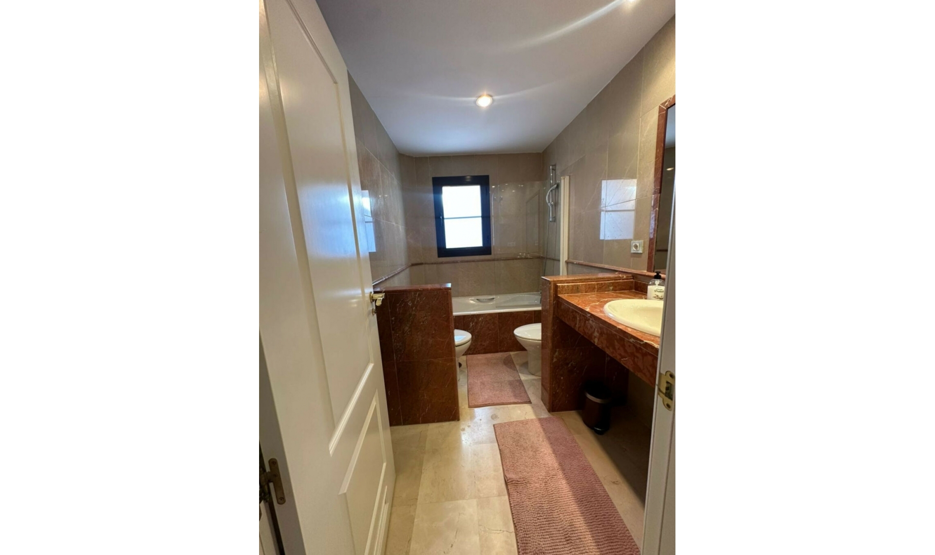 Located in the gated community of Hacienda del Sol, this exceptional ground-floor apartment offers a rare opportunity to own one of the largest two-bedroom units in the complex. Just steps away from the beach in the desirable Atalaya area of Estepona, this property boasts spacious living areas and an enviable south-facing orientation. Situated directly across from one of the complex's five pools, the apartment perfectly combines comfort and convenience. From the private terrace, you can enjoy serene outdoor living, with just a few steps—less than 10 meters—leading you to the pool. Inside, the apartment features a welcoming hallway, a spacious living room with a cozy fireplace, and a fully equipped kitchen with an adjoining laundry room. The master bedroom includes a complete en-suite bathroom with a bathtub, walk-in shower, and double sinks, as well as ample closet space and direct terrace access. A comfortable guest bedroom and a guest bathroom complete the layout. The property is sold fully furnished, including the added convenience of underground parking. Hacienda del Sol offers an unparalleled lifestyle, located just a two-minute walk from the beach and within walking distance of supermarkets and shops just outside the complex. A short drive takes you to San Pedro in five minutes and Puerto Banús in ten. The community itself is secure, with 24-hour gated security, and offers a wide range of amenities, including five pools, a gym, a tennis court, and the largest indoor jacuzzi on the Costa del Sol.