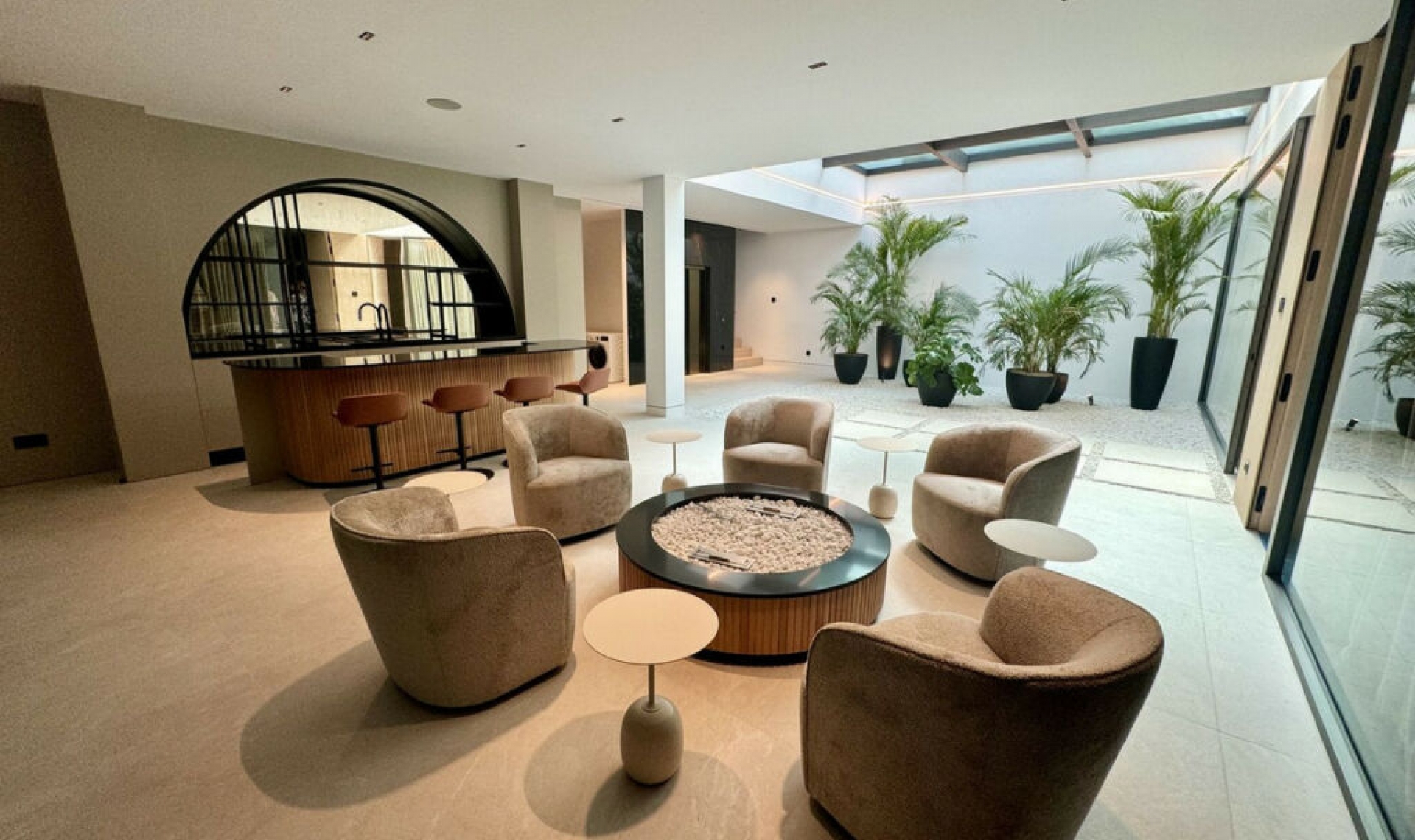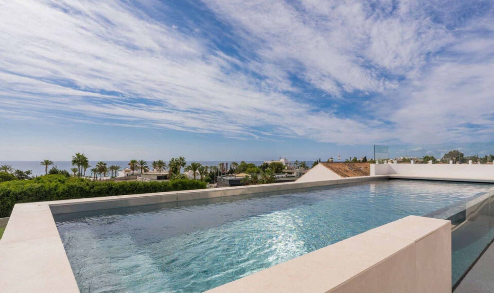 Opportunity to acquire a magnificent modern Villa on the plot with the sea views. Located of the Golden Mile just 300 meters from the best beaches in Marbella. Villa was build in 2023, fully furnished. Modern 4 floors Villa welcomes you into an exquisite entrance. Main floor: Living area with an open plan fully fitted kitchen and equipped with top of the line appliances, leading towards the chic dining area, one guest bedroom and bathroom. The first floor includes the large master suite, a sublime walk-in closet and large terrace with the fantastic sea views over Puerto Banus, office-sitting area and two spacious bedrooms in-suite. The iconic roof top terrace has been totally prepared to be equipped with all luxury features, there is a dining zone with BBQ and the infinity swimming pool with sea views. An impressive basement level includes plenty of entertaining features, bar with open plan fireplace, cinema room, guest bedroom, garage for more than 6 cars. The Golden Mile, one of the most luxurious residential areas in Marbella, lies into the edge of the centre of Marbella to the west to Puerto Banus. The best word to describe the Golden Mile is luxury, here you will find the best hotels in Marbella like Puente Romano and Marbella Club, some of the resort's most expensive properties, nicest seafront promenade and exclusive restaurants and shops.