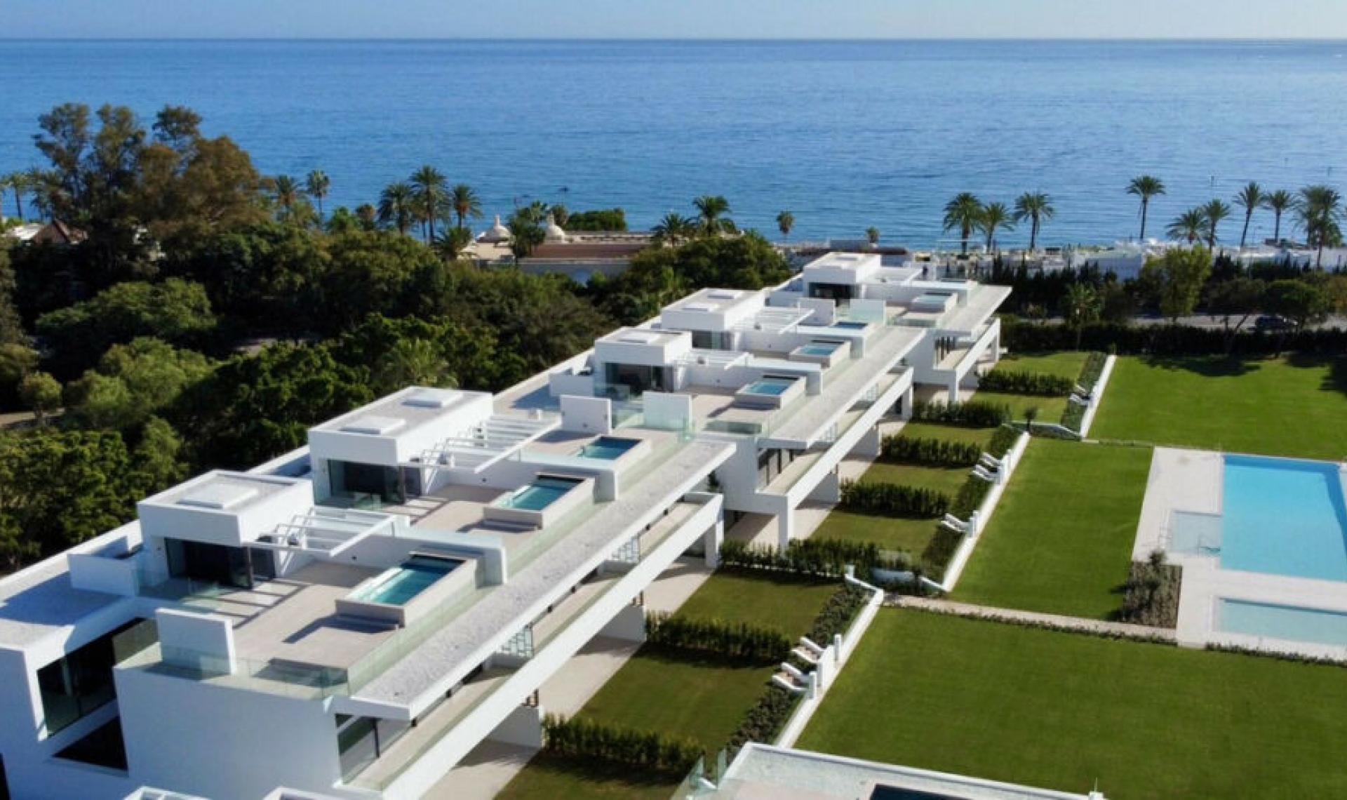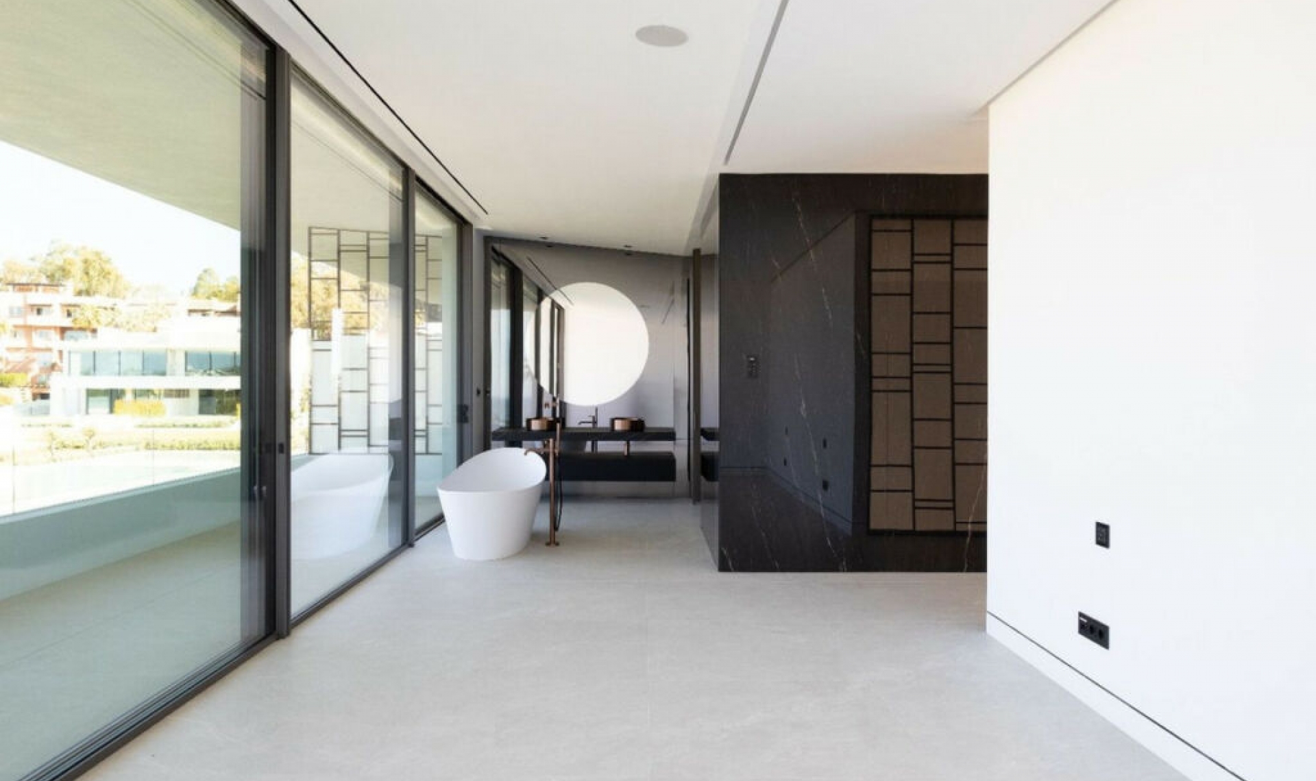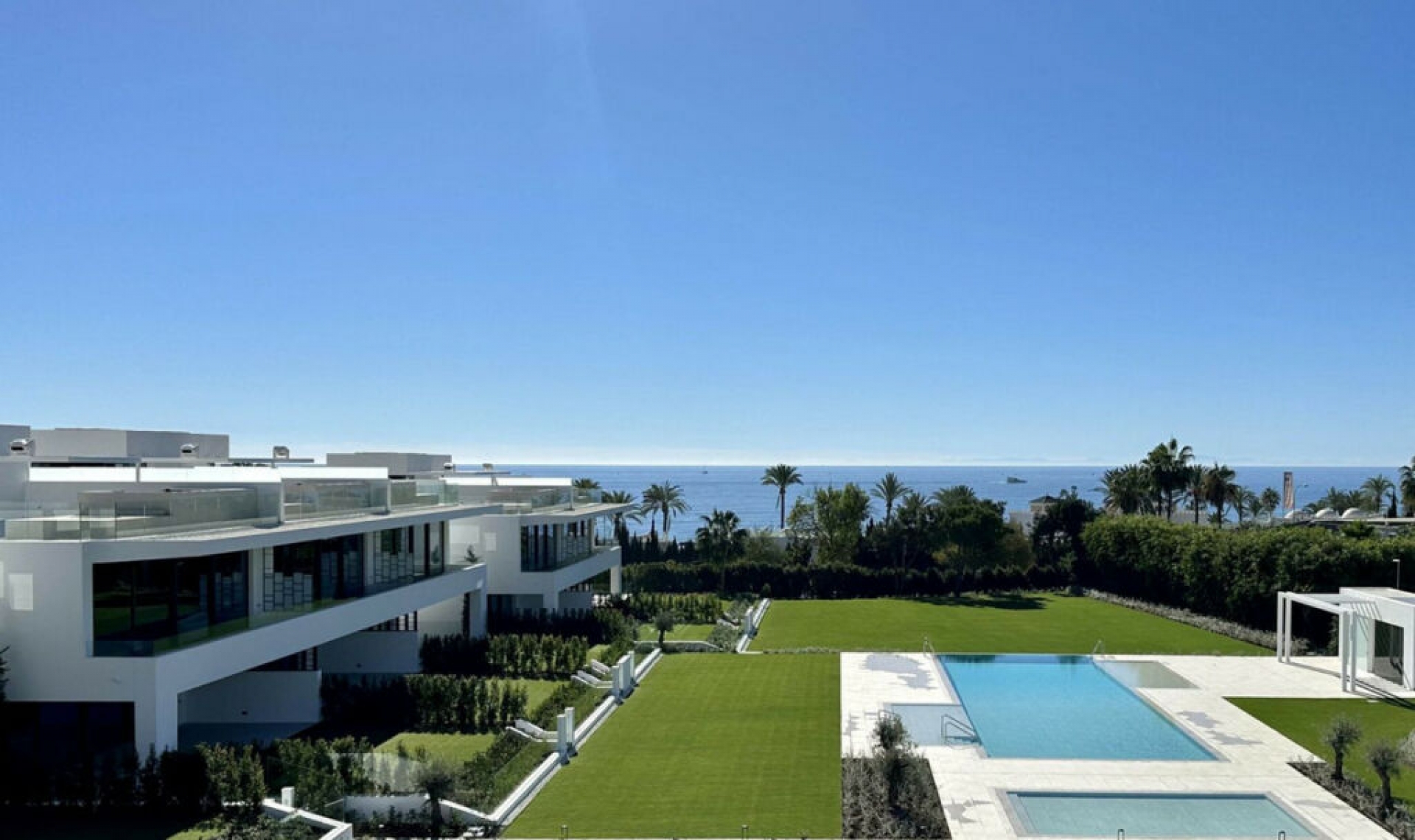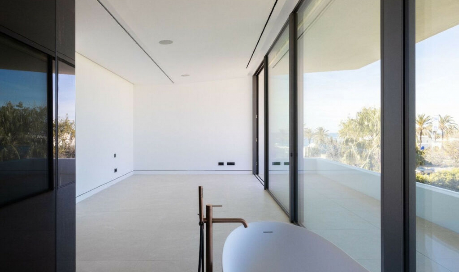 This magnificent Viila is located in a gated and secured residence of 12 Villas on the luxurious Marbella Golden Mile. It is ideal for those who seek comfort and luxury of one of the most prestigious areas of the entire Mediterranean region. Villa was built in 2023. The beautifully built Villa on 4 levels offers high quality, stylish and bright living room open to the large and elegant terrace with stunning panoramic views towards the sea. All 2 bedroom suites include floor-to-ceiling windows, oak flooring, Porcelanosa marble and hardware throughout, showcasing an elegant and refined modern style. A sleek minimalist kitchen has integrated Gaggenau appliances. All 4 levels are connected by a modern elevator. Terraces leading out to a private area of garden – as well as having access to the beautifully landscaped communal gardens and swimming pool. Roof terrace with private swimming pool and outdoor cinema. A customizable basement provides ample space for an additional third bedroom, a home gym or room for any other use, such as an office. Underground parking for 4 cars. It is facing south-west, admires spectacular views of the Mediterranean Sea, Puerto Banus marina and has the legendary La Concha Mountain as a background. Surrounded with high-end properties of the Golden Mile, this perfectly executed contemporary property is just 250 meters away from the sandy beach and an array of amenities, well-known restaurants and bars, 5-star iconic hotels like Puente Romano, designer boutiques, shops and supermarkets. Unique opportunity to own a contemporary villa – one of just 12 – with panoramic sea views set on the world-famous Golden Mile!