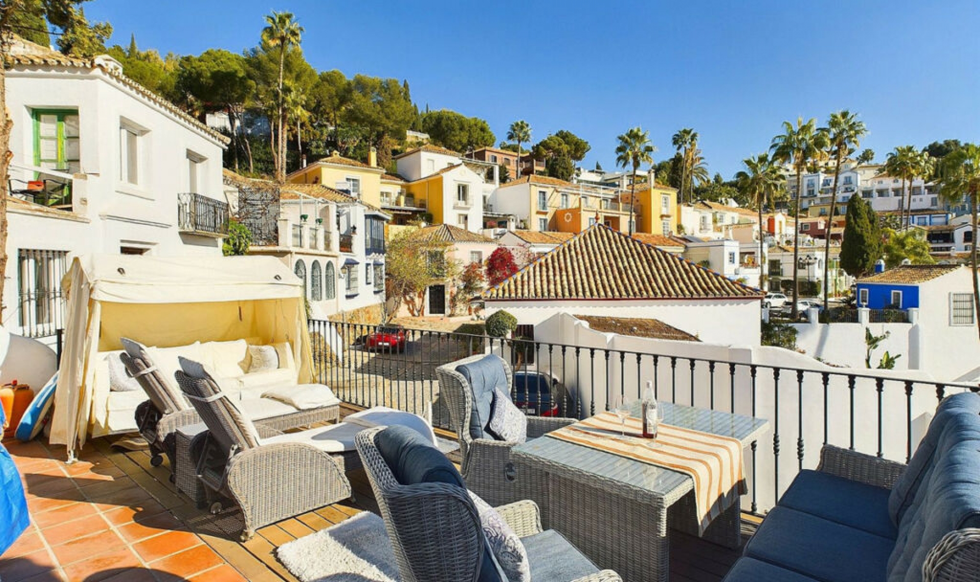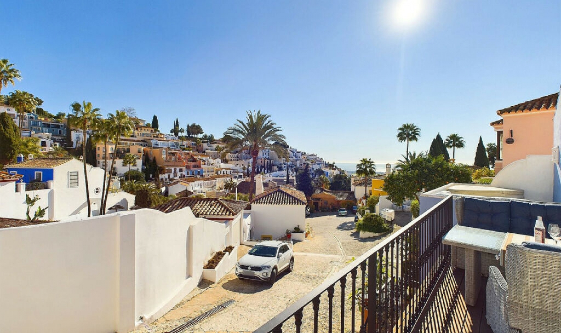 ABSOLUTELY FABULOUS LA HEREDIA HOUSE RECENTLY REDUCED IN PRICE. This stunning, detached, stand-alone house is one of the few original homes in the charming and picturesque village of La Heredia, near Benahavís. Situated next to several prestigious golf resorts, including Los Arqueros Country Club and La Quinta, it's just a few minutes' drive to the beach in San Pedro, 15 minutes to Marbella, and 45 minutes to Malaga Airport. The house is full of warmth and character, featuring original stone-tiled floors and beautiful beamed vaulted ceilings, creating a cozy and inviting atmosphere. It also boasts an open fireplace for those cooler evenings. The spacious living room opens onto a large terrace, offering lovely views of the village and the sea. The kitchen is fully fitted and includes an American fridge-freezer, while the dining room is conveniently located between the kitchen and the terrace. The master bedroom is located on the upper level and features an en suite bathroom with a stunning 'roll-top bath'. This bedroom has its own private terrace with a jacuzzi, perfect for relaxing while enjoying the beautiful views. On the lower level, there are two guest bedrooms. Bedroom 3 has a bathroom with a steam shower, and the second bedroom also has an en suite bathroom with a large walk-in shower. The lower level also features a covered terrace and an under-stairs storage room, while at the rear of the house, there is a gated area for additional storage. The community offers two swimming pools, including a heated pool located just a few steps from the house. La Heredia is an award-winning village known for its beauty and unique charm. The village has its own butcher, Dutch bakery, bar, and restaurant, making it a truly special place to live. There is 24-hour security, ensuring peace of mind for all residents. This property offers the perfect combination of comfort, charm, and location. Don't miss the chance to view this exceptional home!
