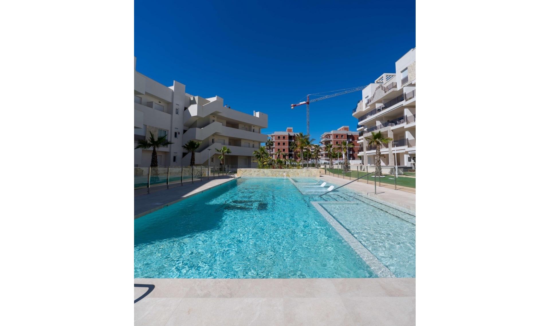 NEW BUILD RESIDENTIAL IN EL RASO, GUARDAMAR DEL SEGURA New Build private residential complex of apartments in El Raso, Guardamar del Segura. Complex consisting of 135 homes with 2 or 3 bedrooms in blocks of 3 or 5 floors plus solarium, designed in a minimalist way and with high quality standards, its modern architecture harmonises with our large open spaces, nature and swimming pools, offering a unique and peaceful atmosphere. Beautiful residential complexes, including a glassed-in GYM-Spa area with views of green areas, swimming pools and from its terrace overlooking the salt lagoon of La Mata, paddle tennis court, etc. Parking space included in the price. Development is located on a unique and unrepeatable plot, bordering the natural landscape of the salt lagoon, enjoy its biodiversity and unique environment, in El Raso de Guardamar del Segura, with all kinds of services and amenities and close to the best beaches of the Mediterranean. At the same time, thanks to the proximity of El Moncayo beach, you will be able to go for a bike ride and enjoy the best climate of the Costa Blanca. Additionally and thanks to the five levels of some of the blocks that make up the residential, all of them facing south, we include in our luxury penthouses, fully equipped kitchen on the solarium, outdoor shower (hot/cold water), and jacuzzi area, to complete the unique experience of living in front of a unique and unrepeatable natural environment. El Raso is a part of Guardamar del Segura. Guardamar del Segura is a town located on the Costa Blanca South. With its 11 kilometres of natural beach and its large pine forest. Guardamar del Segura has a large port with activities throughout the year, it has a large sports centre with paddle tennis, tennis, soccer and a large heated swimming pool that works all year round. It also has a library where there is free wifi and computers. Guardamar del Segura is only 20km away from the Alicante - Elche (El Altet) airport, where there are many flights every day with connections to the main European cities, due to the demand for tourists on the Costa Blanca.