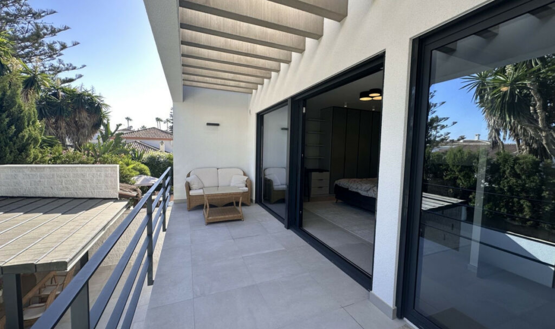 New & Modern house located in a splendid location on the Golden Mile, just 20 meters from the beach. This spacious villa offers high qualities and is perfect for those looking for comfort and luxury. With 4 bedrooms and 5 bathrooms, it provides ample space for a family or guests. The large terraces on each floor, both covered and uncovered, are ideal for barbecues, meetings with friends, or sunbathing all year round. The heated pool allows for enjoyment even during the long Marbella summer. The property is situated in a safe and exclusive urbanization of Río Verde, just a three-minute walk from Puerto Banús. It is also conveniently located near the supermarket and offers all the benefits of being close to the beach. With a private garden and space to park three cars, this detached villa provides privacy and convenience. The house features stunning sea, beach, and garden views, creating a peaceful and relaxing atmosphere. It is fully furnished and equipped with air conditioning, pre-installed A/C, heating, electric blinds, and an alarm system for added comfort and security. Additional amenities include satellite TV, ADSL/WIFI, and an ensuite bathroom. Don't miss out on this investment opportunity in the Costa del Sol. With a total of 226m² built, this property offers plenty of room for a comfortable lifestyle. Whether you're looking for a permanent residence or a vacation home, this luxury villa is sure to impress. Contact us now to arrange a viewing and make this dream home yours. Detached Villa, The Golden Mile, Costa del Sol. 4 Bedrooms, 5 Bathrooms, Built 226 m², Terrace 100 m², Garden/Plot 455 m². Setting : Beachside, Close To Marina, Urbanisation. Orientation : South. Condition : Excellent. Pool : Private, Heated. Climate Control : Air Conditioning, Pre Installed A/C, Hot A/C, Cold A/C, U/F Heating. Views : Sea, Beach, Garden. Features : Covered Terrace, Fitted Wardrobes, Near Transport, Private Terrace, Satellite TV, ADSL / WIFI, Ensuite Bathroom. Furniture : Fully Furnished, Optional. Kitchen : Fully Fitted. Garden : Private, Easy Maintenance. Security : Electric Blinds, Entry Phone, Alarm System, Safe. Parking : Garage, More Than One, Private. Utilities : Electricity, Drinkable Water, Telephone. Category : Beachfront, Investment, Luxury.