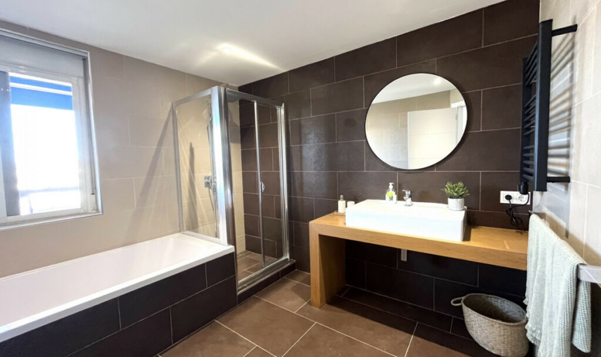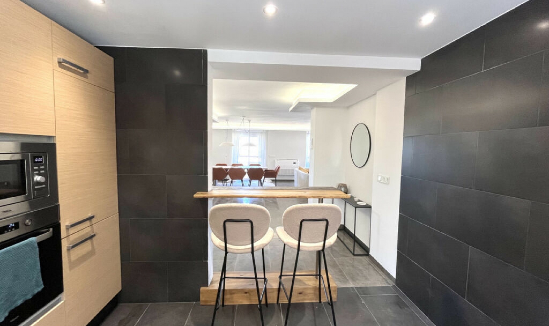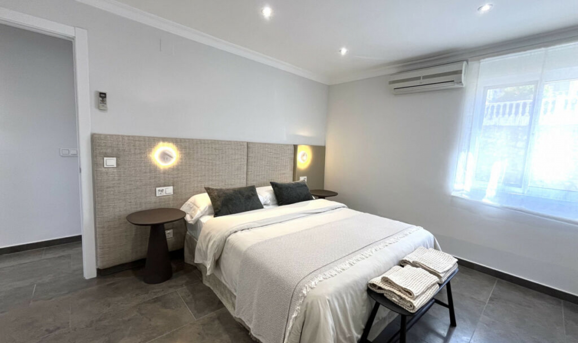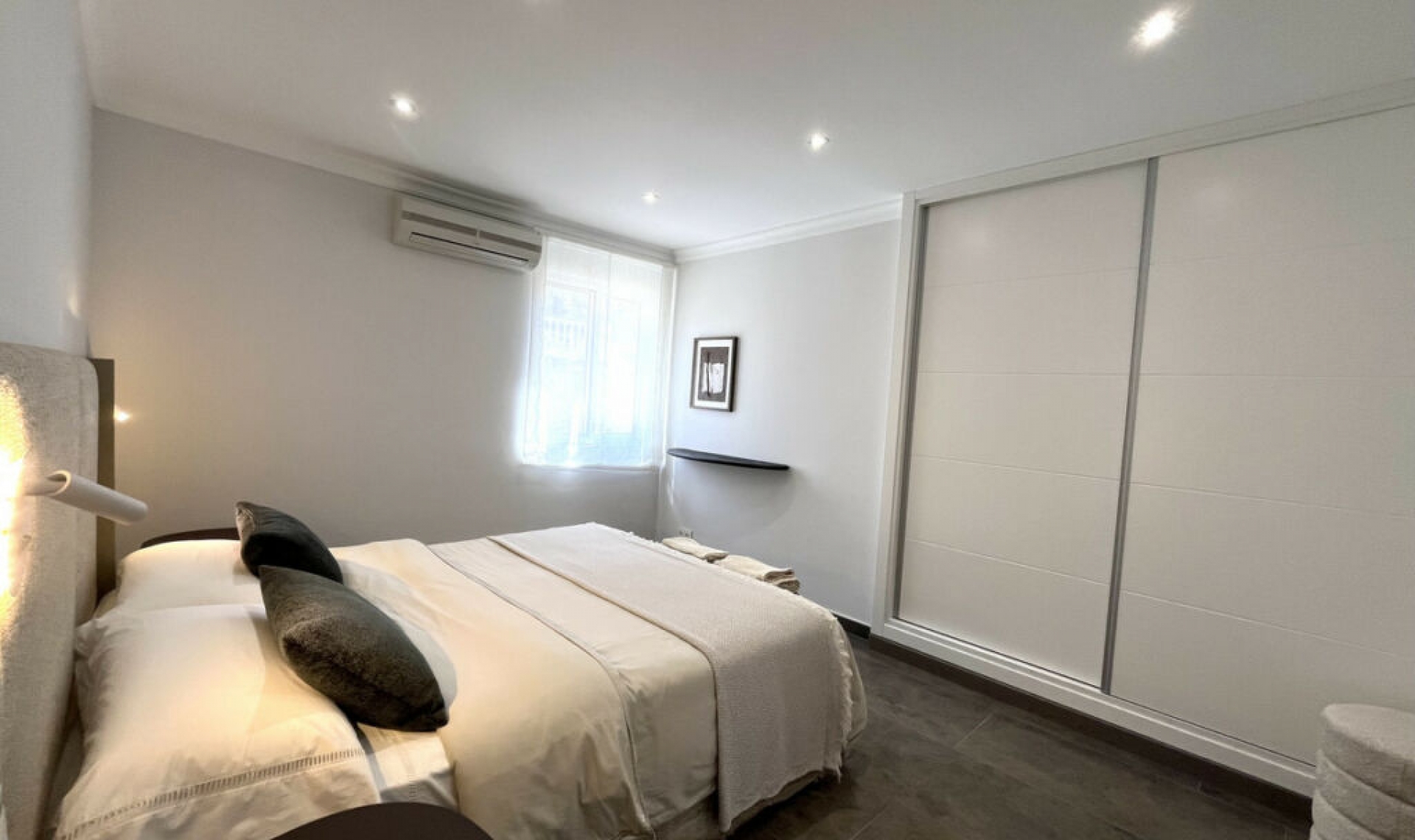 Experience the rare sense of space and openness in this beautifully renovated apartment, created by merging two separate units into one generous and well-designed home. This property offers panoramic views of the Mediterranean Sea and the surrounding mountains, all within 15 minutes' walking distance to the beach and local amenities. Boasting four spacious bedrooms, two elegant bathrooms and one guest toilet, this apartment is ideal for families or anyone seeking both comfort and room to breathe. At the heart of the home is a large open-plan living and dining area seamlessly connected to a modern, fully equipped kitchen. The master bedroom is exceptionally spacious and features its own en-suite bathroom, creating a private retreat within the home. Two of the bedrooms, as well as the living area, offer direct access to the expansive terrace, where you can enjoy breathtaking views that can also be admired from inside the apartment through large windows that flood the space with natural light. The property is situated in a quiet residential complex with a communal swimming pool and shared parking facilities. This is a home where space, style, and location come together in perfect harmony.