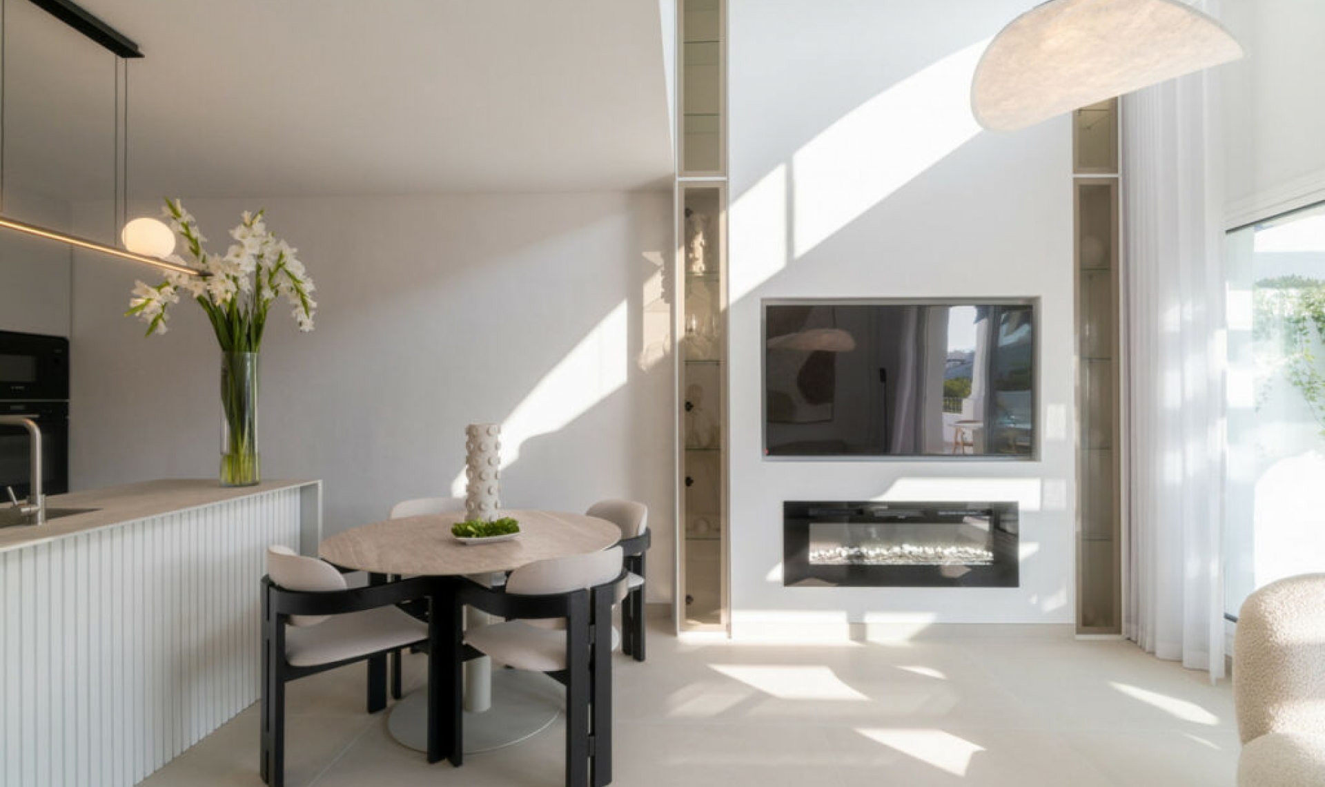 Step into this beautifully renovated 3-bedroom, 3․5-bathroom duplex penthouse, ideally situated just steps from the beach and within easy walking distance to shops, the town center, restaurants, and bars. Nestled within a small and exclusive gated community, the property offers access to a communal swimming pool surrounded by beautifully landscaped and well-maintained gardens, providing a serene and private atmosphere. Furnished in elegant Scandinavian style, the home features a bright open-plan kitchen, and a spacious living area with a charming vaulted ceiling. Glass doors that open out to a private terrace with an outdoor dining table—perfect for enjoying the Mediterranean lifestyle. Upstairs, the master suite spans the entire top floor and features its own en-suite bathroom and private terrace which leads to a stunning upper patio with a jacuzzi and barbecue, offering panoramic and sea views—ideal for relaxing or entertaining. The property also includes an underground parking with enough space for two cars and a private storage room. A move-in ready beachside home in a boutique community—offering modern comfort, privacy, and elegant coastal living.