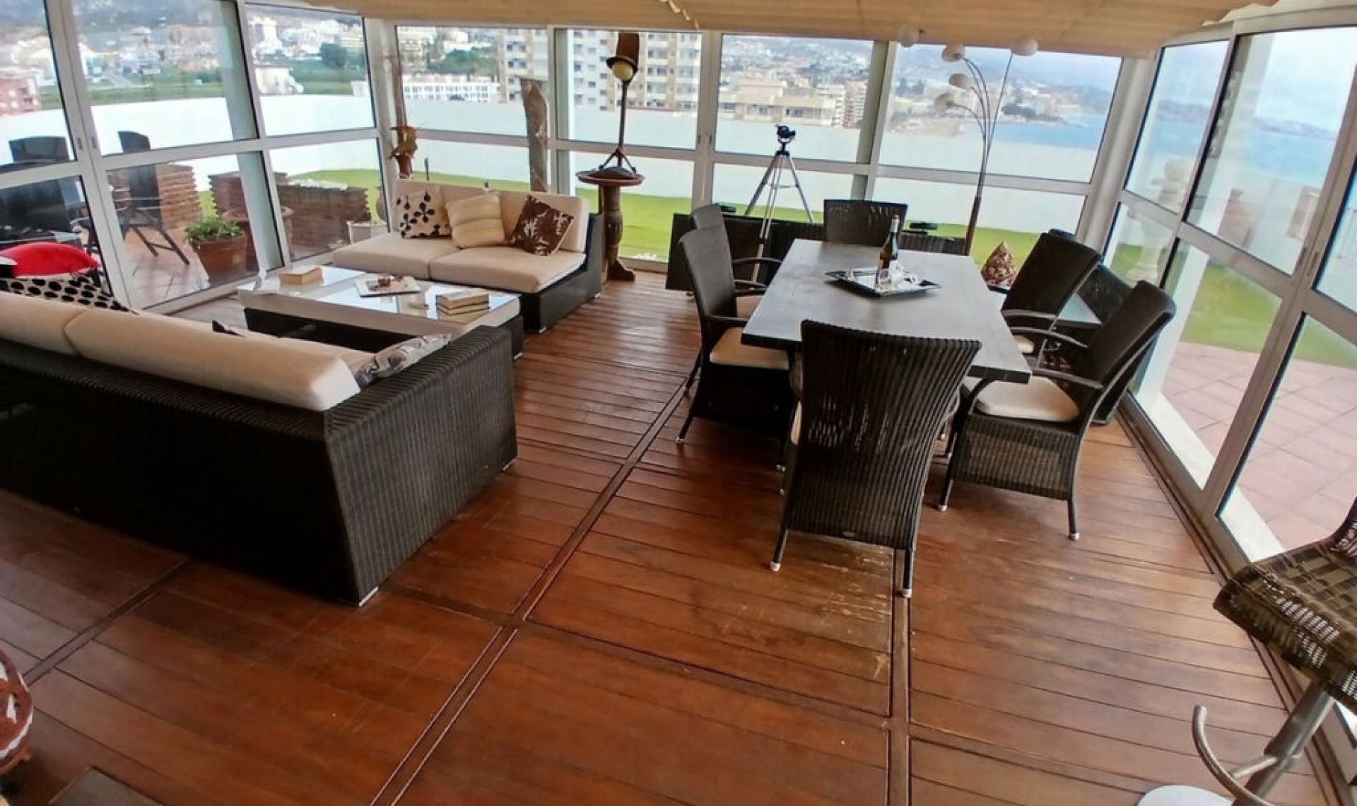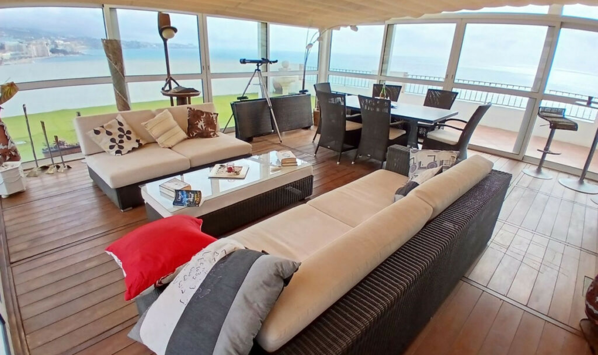 Breathtaking Penthouse in the Heart of Los Boliches Promenade – Where Every Day Feels Like a Holiday Welcome to a truly exceptional penthouse, perched in an unbeatable location along the vibrant Paseo Marítimo of Los Boliches, Fuengirola. This is more than a home – it's a front-row seat to the Mediterranean lifestyle. Step outside your door to a 7 km palm-lined promenade beloved by locals and visitors alike, perfect for morning jogs, leisurely strolls, or sunset bike rides. With endless beachfront restaurants and cozy bars just steps away, you'll never run out of places to explore, savor, and enjoy – all year round. From the moment you wake up, you're greeted with sweeping, panoramic views of the shimmering Mediterranean Sea, the bustling marina dotted with yachts and fishing boats, the charming town of Fuengirola, and the majestic Mijas mountains in the distance. Sip your morning coffee or enjoy an alfresco meal on your expansive, private terrace – a space made for unforgettable moments with family and friends. Located on the 12th floor, this penthouse is accessed via the Paseo Marítimo or the quieter rear street. Two elevators take you up to the 11th floor, where a broad staircase (with a chairlift for convenience) leads to your private sanctuary above it all. Inside, the home welcomes you with an entrance hall, guest toilet, and laundry/utility room. Two generously sized bedrooms – both with built-in wardrobes and en-suite bathrooms – offer comfort and privacy. The spacious open-plan living room flows seamlessly into a cozy conservatory lounge – the heart of the home – bathed in natural light and ideal for year-round relaxation. And the crown jewel? The vast, sun-soaked terrace offering total privacy and unbeatable views. The building itself is meticulously maintained, with concierge and maintenance staff, and features a large Olympic-sized swimming pool surrounded by lush lawns – perfect for soaking up the Costa del Sol sunshine. Penthouses like this are a rare gem. Their exclusivity and limited availability make them not only a dream to live in but also a smart investment – with enduring value and outstanding potential for holiday rentals.