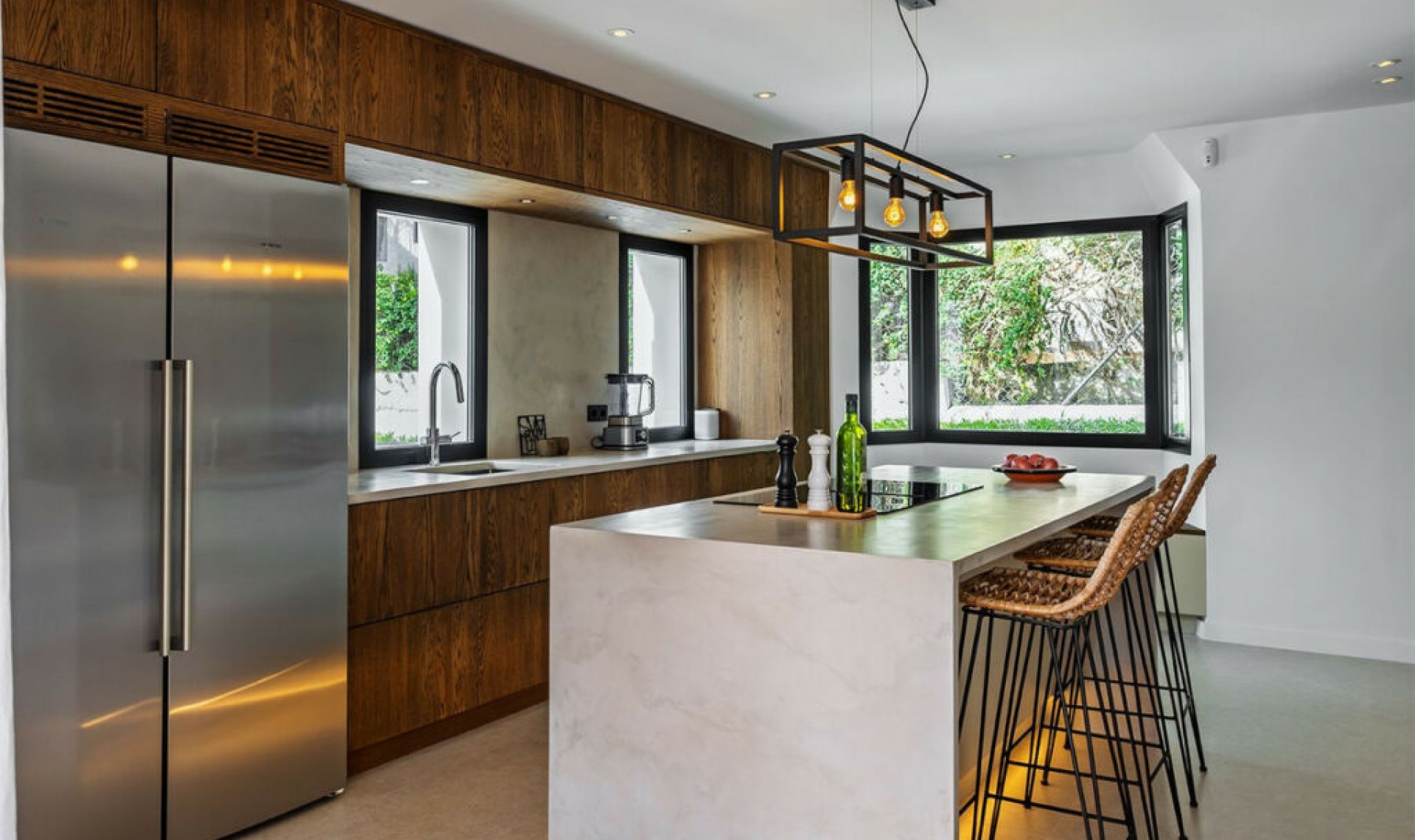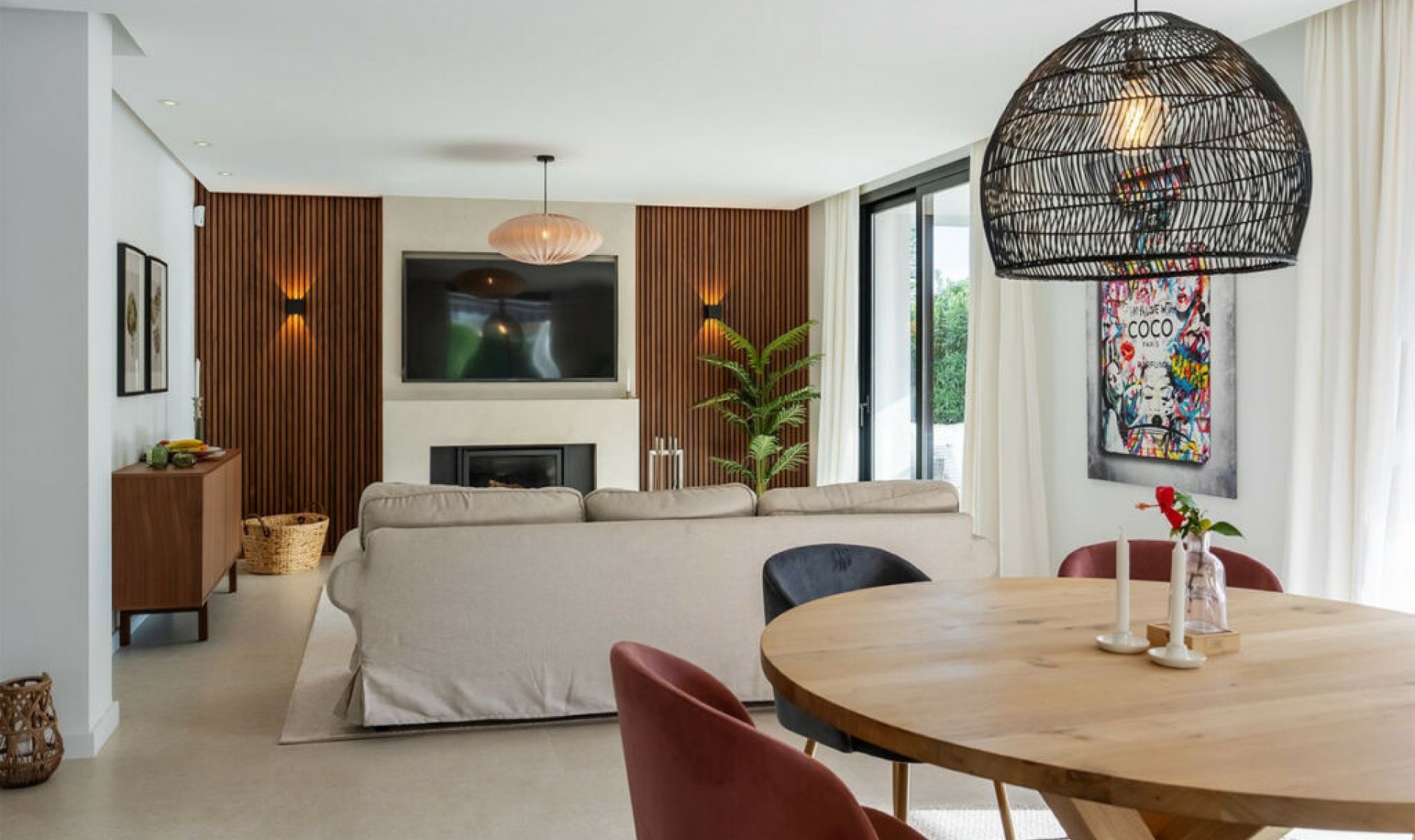 This fantastic villa is located in the middle of the Golf Valley in Nueva Andalucia, a quiet and very attractive area with proximity to golf courses such as Las Brisas, Los Naranjos and Aloha Golf. Here you live with a 20 minute walk to the nearest restaurants and café. Only a few minutes by car to Puerto Banus and Marbella town, which offers a wide range of restaurants and shops. Proximity to the beach and the long, lovely promenade. In Nueva Andalucia you are close to a supermarket, school, pharmacy and bank. Welcome to a newly renovated villa of the highest quality, completed in 2024 in a modern Scandinavian style. Four bedrooms and four bathrooms, three of which are en-suite with underfloor heating. The ground floor has a kitchen from Ballingslöv and Siemens appliances, a living room in a bright open plan and direct access to the large terrace and garden. Large sliding glass doors that provide natural sunlight into the entire villa. Upper floor with two bedrooms en-suite and a balcony that is accessible from both rooms with a lovely view where you can sense La Concha and Los Naranjos golf course. Basement with bedroom en-suite, spacious gym and a separate laundry room. Here there are endless possibilities to decorate how you want and according to your own needs. From the basement you have access to a large garage, storage room and the entrance to the house. Solar cells that give the villa an energy-efficient living space, fireplace in the living room for a lovely cozy feeling and natural warmth. Airzone air conditioning system where you personally ensure temperature control throughout the villa. Spacious terrace, partly covered, private pool and outdoor shower. Large garden that provides plenty of space for outdoor activities and enjoying the wonderful climate of the Costa del Sol.