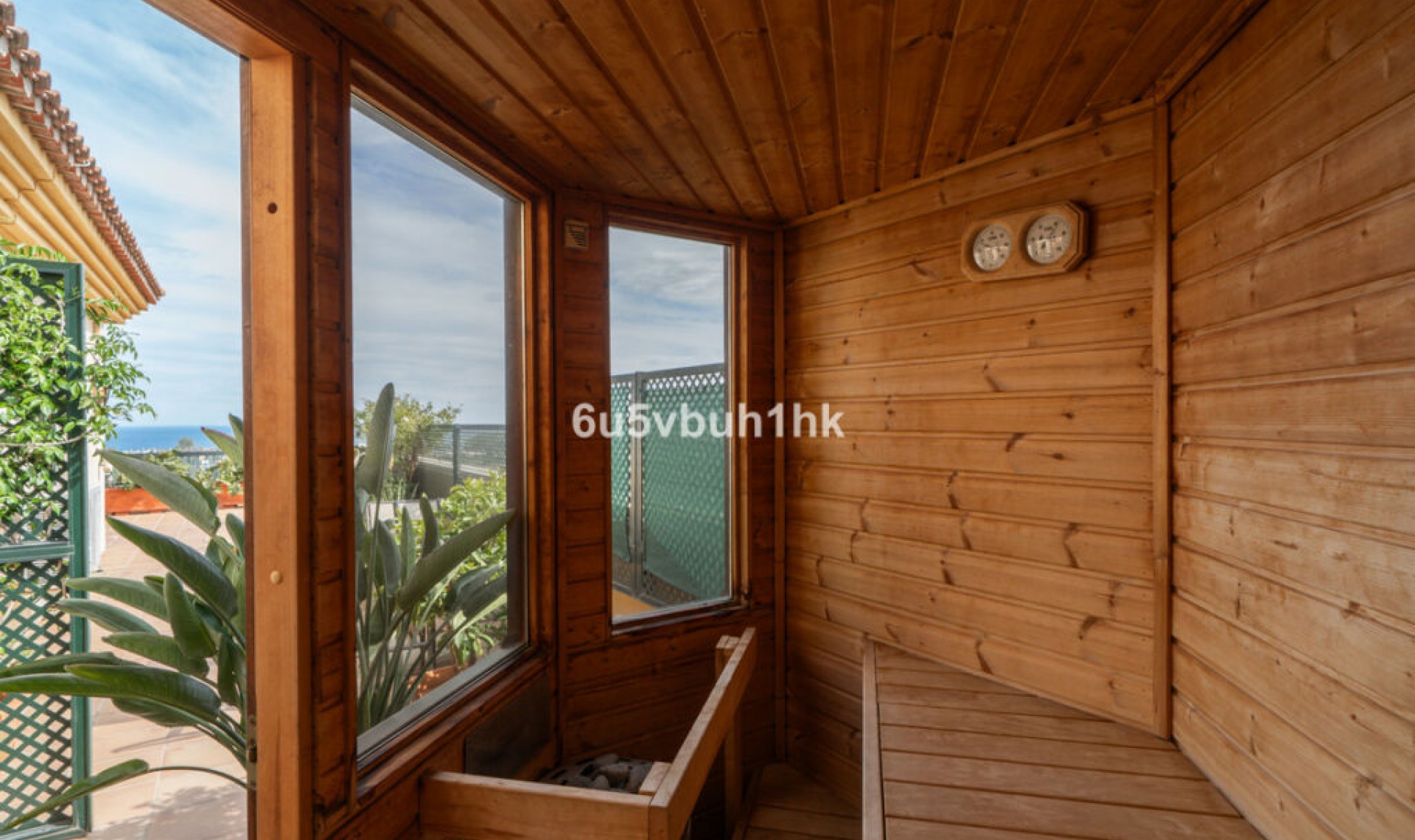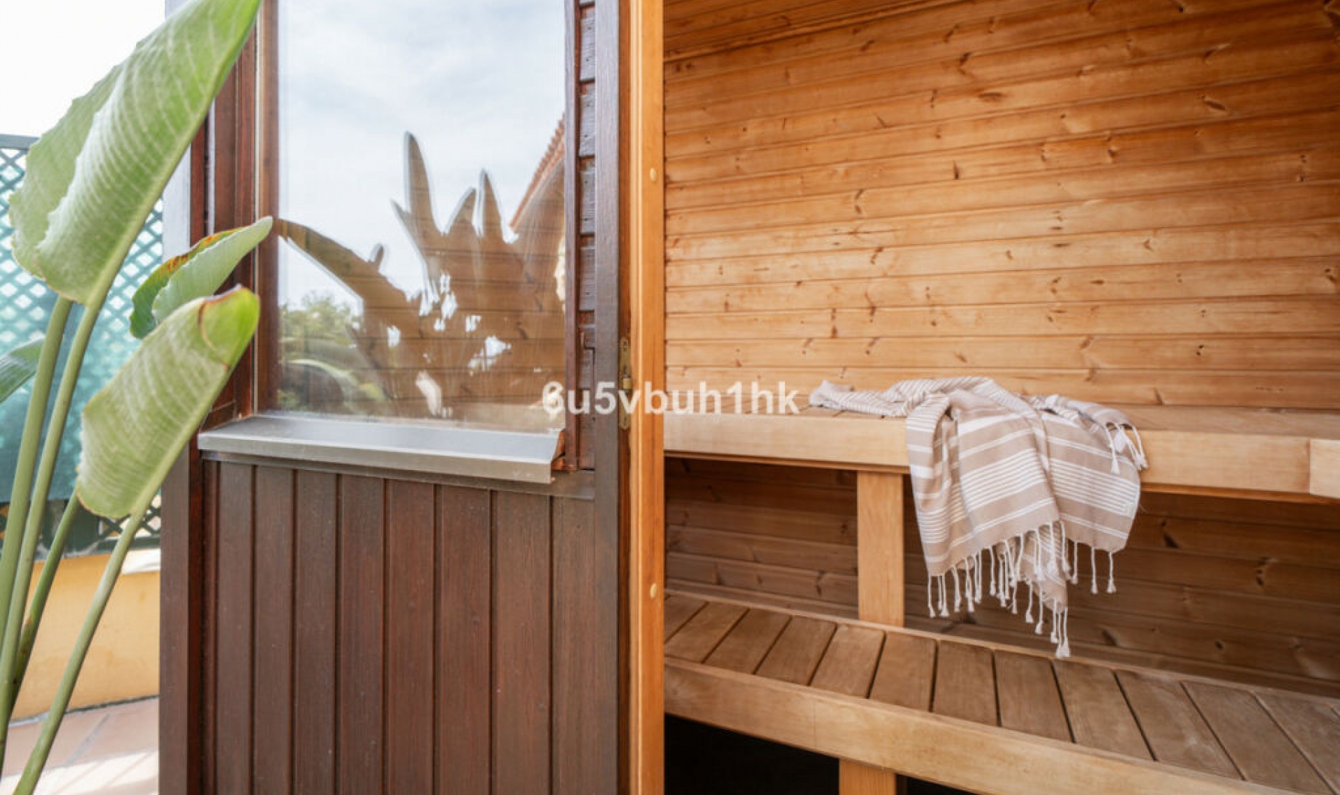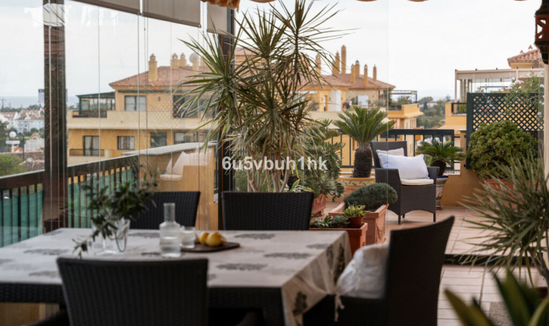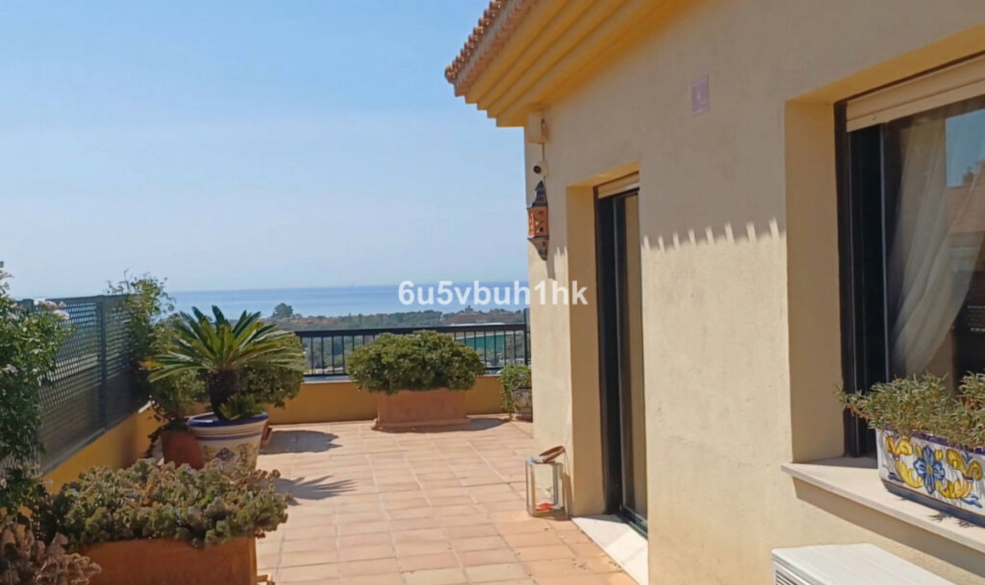 We invite you to explore this remarkable 4 bedroom penthouse that offers spectacular 180º sea views and epitomizes the perfect blend of location, space, and functionality. Nestled in one of the most coveted areas of San Pedro de Alcantara, this property is situated within walking distance to all amenities (restaurants, supermarkets, pharmacies, international and local schools, gym, cafés etc.) and just a few minutes walk from the beach. Upon entering this exquisite residence, you are greeted by a generously sized living-dining area, flooded with natural light thanks to the expansive windows that frame breathtaking views of the Mediterranean. The layout is thoughtfully designed to ensure seamless connectivity to the outdoors, enhancing the overall ambiance of tranquility and luxury. The separate, fully fitted kitchen stands as a culinary masterpiece, complete with a dedicated laundry room. For those who favor an open-concept lifestyle, the kitchen can easily be integrated into the living area, creating a spacious, inviting environment ideal for entertaining family and friends. This penthouse boasts four elegantly appointed bedrooms, each showcasing finishes that reflect sophistication and space. The master bedroom is a private sanctuary, featuring its own en-suite bathroom for added convenience and comfort. In total, the residence includes four bedrooms, three bathrooms and a private sauna with sea views, offering a spa-like experience in the comfort of your home. What truly sets this penthouse apart is the extensive terrace that envelops the property, measuring over 143m². This outdoor oasis provides unparalleled views and can be accessed from nearly every room, giving you the sensation of residing in a secluded skyvilla rather than a penthouse. It's the perfect setting for sunbathing, alfresco dining, or simply soaking in the serene surroundings while enjoying the incredible views over the Mediterranean. With the penthouse there comes well sized two underground parking spaces and a spacious storage room, ensuring space for your needs. Residents will also enjoy access to a large swimming pool area and beautifully landscaped communal gardens, enhancing the allure of this exceptional property. Don't miss the opportunity to make this property yours in the Mediterranean. The property has markable opportunities to convert it into a paradise in the skyline. Perfect as it is, or with some renovation, it could be truly exeptional jewel. With it´s unparalleled location, stunning views, and spacious areas, it is a unique opportunity for a family or for an investor.