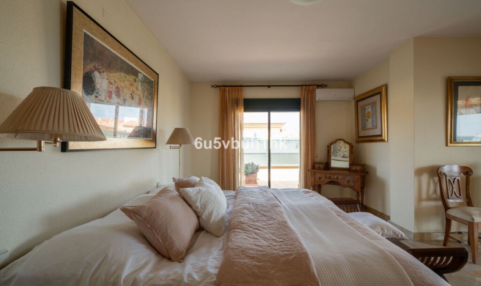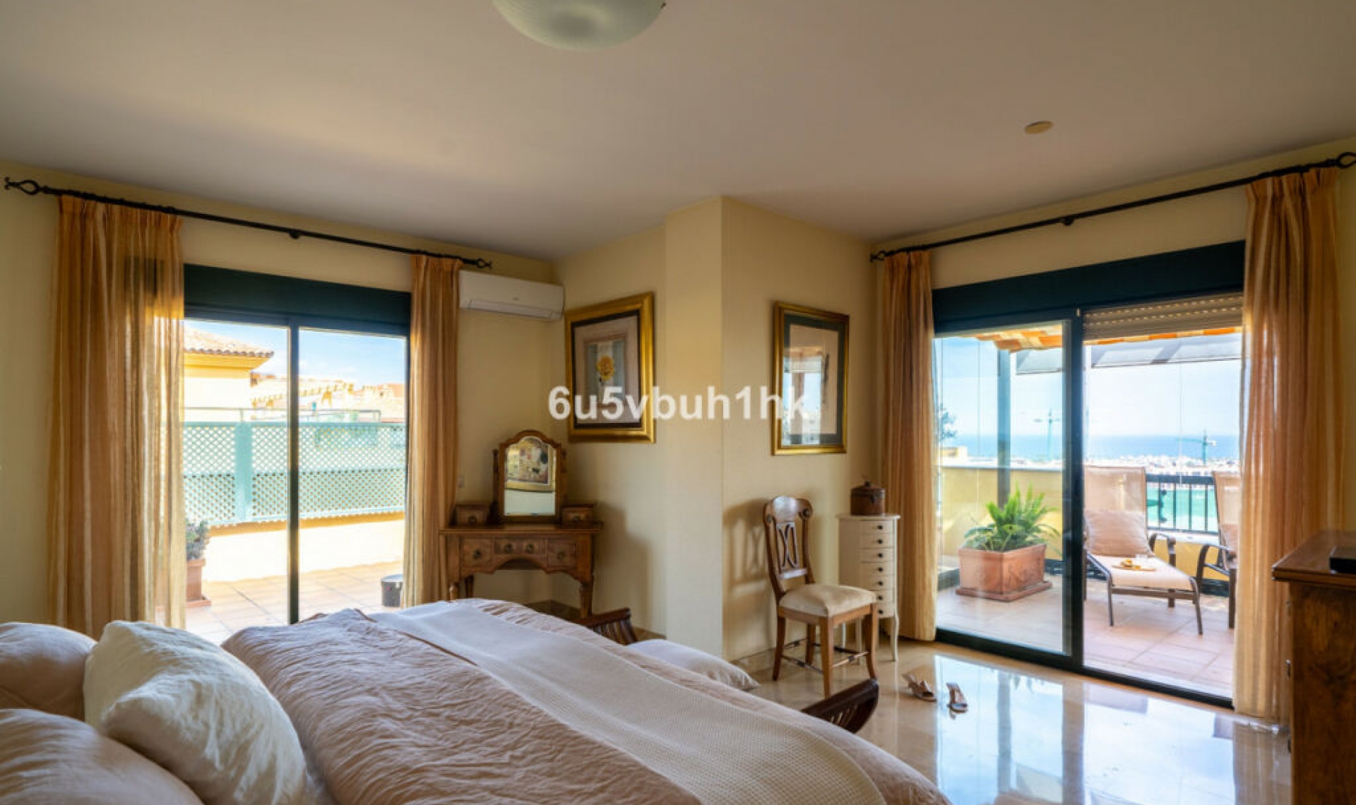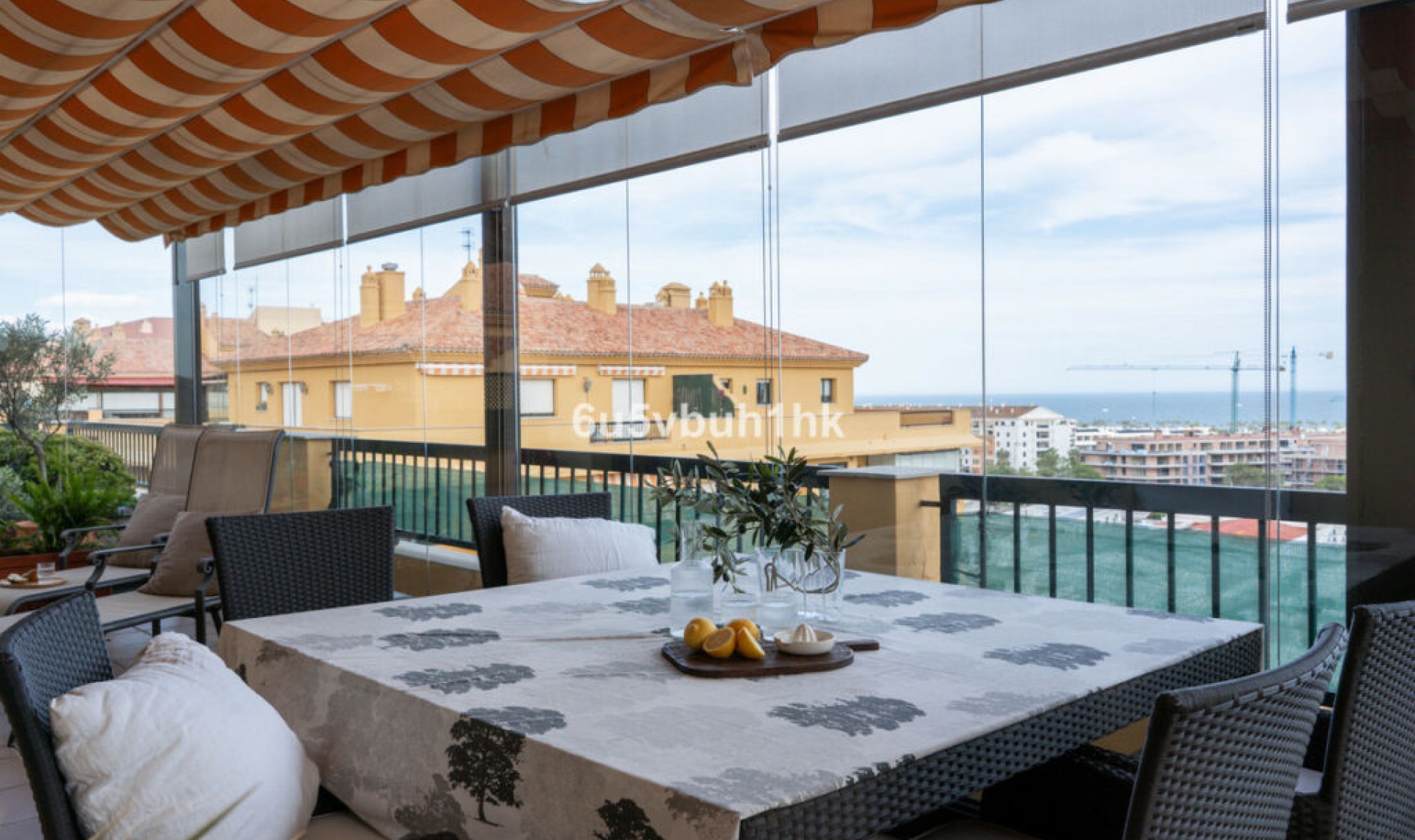 We invite you to explore this remarkable 4 bedroom penthouse that offers spectacular 180º sea views and epitomizes the perfect blend of location, space, and functionality. Nestled in one of the most coveted areas of San Pedro de Alcantara, this property is situated within walking distance to all amenities (restaurants, supermarkets, pharmacies, international and local schools, gym, cafés etc.) and just a few minutes walk from the beach. Upon entering this exquisite residence, you are greeted by a generously sized living-dining area, flooded with natural light thanks to the expansive windows that frame breathtaking views of the Mediterranean. The layout is thoughtfully designed to ensure seamless connectivity to the outdoors, enhancing the overall ambiance of tranquility and luxury. The separate, fully fitted kitchen stands as a culinary masterpiece, complete with a dedicated laundry room. For those who favor an open-concept lifestyle, the kitchen can easily be integrated into the living area, creating a spacious, inviting environment ideal for entertaining family and friends. This penthouse boasts four elegantly appointed bedrooms, each showcasing finishes that reflect sophistication and space. The master bedroom is a private sanctuary, featuring its own en-suite bathroom for added convenience and comfort. In total, the residence includes four bedrooms, three bathrooms and a private sauna with sea views, offering a spa-like experience in the comfort of your home. What truly sets this penthouse apart is the extensive terrace that envelops the property, measuring over 143m². This outdoor oasis provides unparalleled views and can be accessed from nearly every room, giving you the sensation of residing in a secluded skyvilla rather than a penthouse. It's the perfect setting for sunbathing, alfresco dining, or simply soaking in the serene surroundings while enjoying the incredible views over the Mediterranean. With the penthouse there comes well sized two underground parking spaces and a spacious storage room, ensuring space for your needs. Residents will also enjoy access to a large swimming pool area and beautifully landscaped communal gardens, enhancing the allure of this exceptional property. Don't miss the opportunity to make this property yours in the Mediterranean. The property has markable opportunities to convert it into a paradise in the skyline. Perfect as it is, or with some renovation, it could be truly exeptional jewel. With it´s unparalleled location, stunning views, and spacious areas, it is a unique opportunity for a family or for an investor.