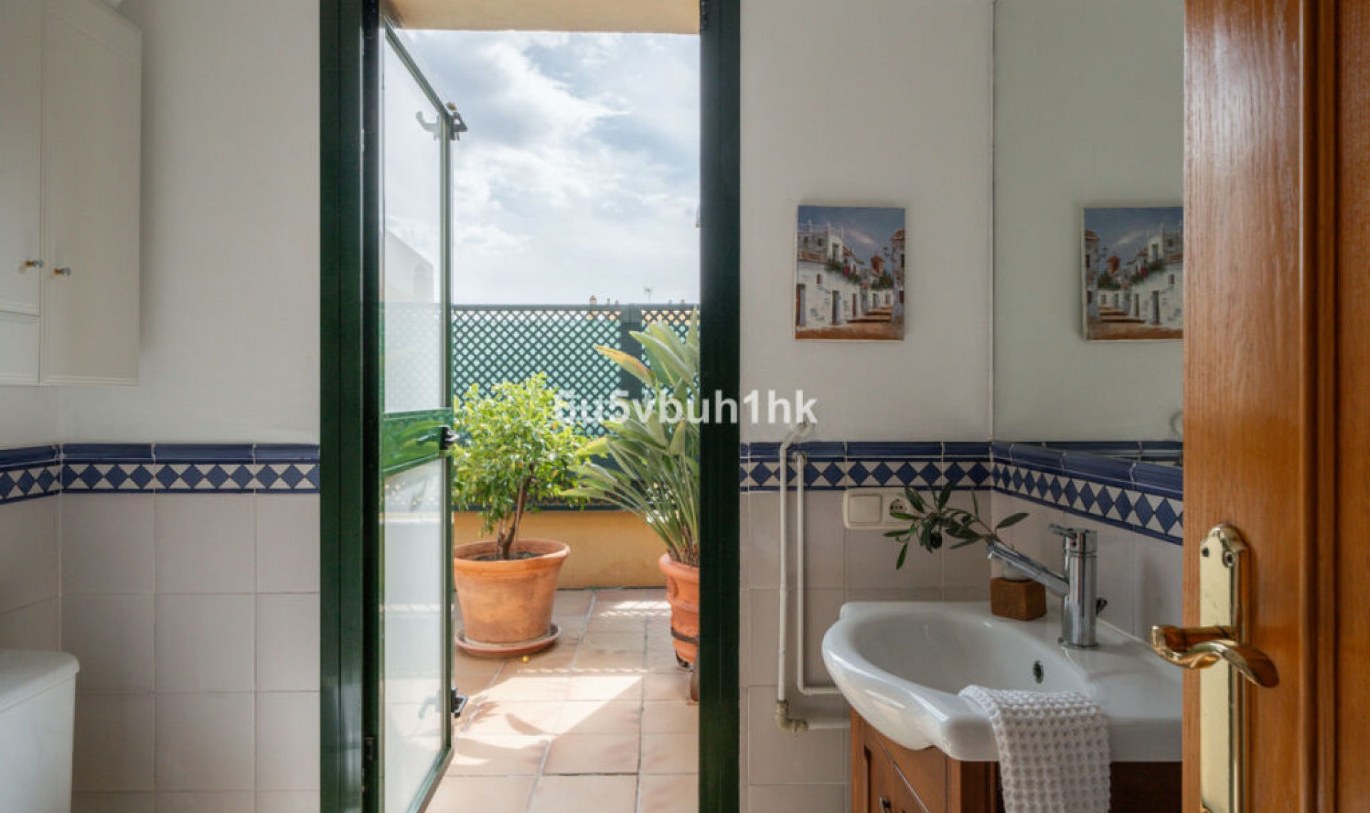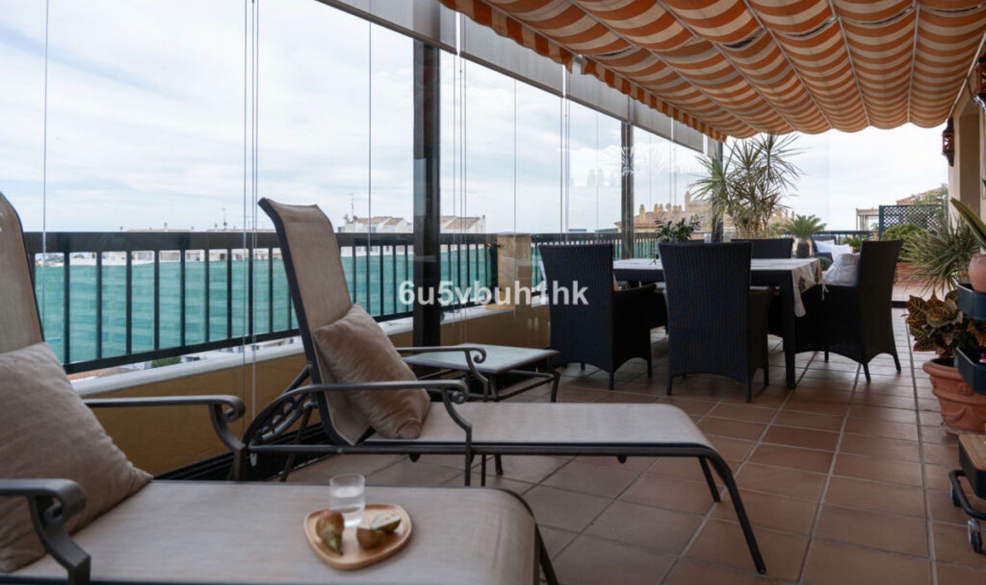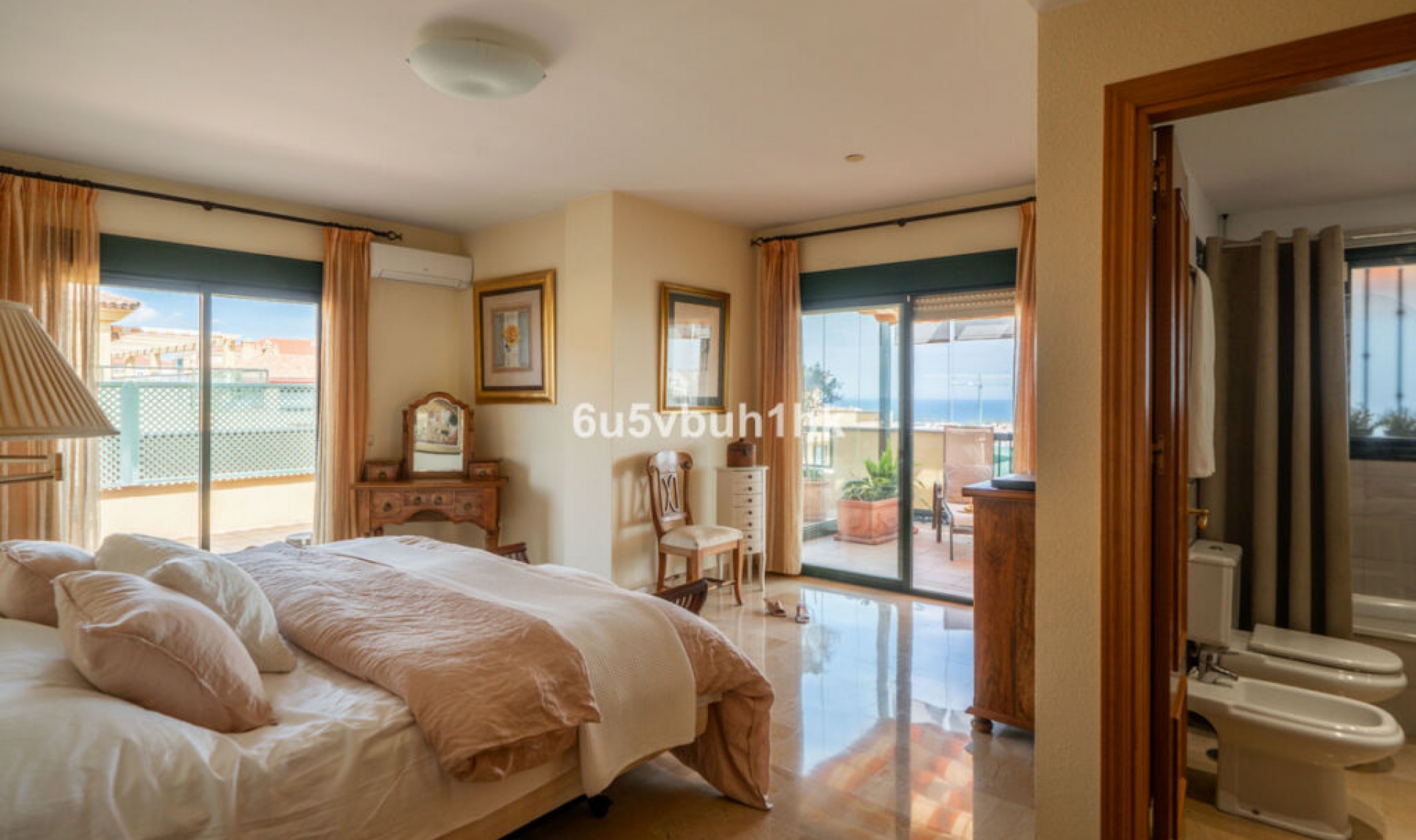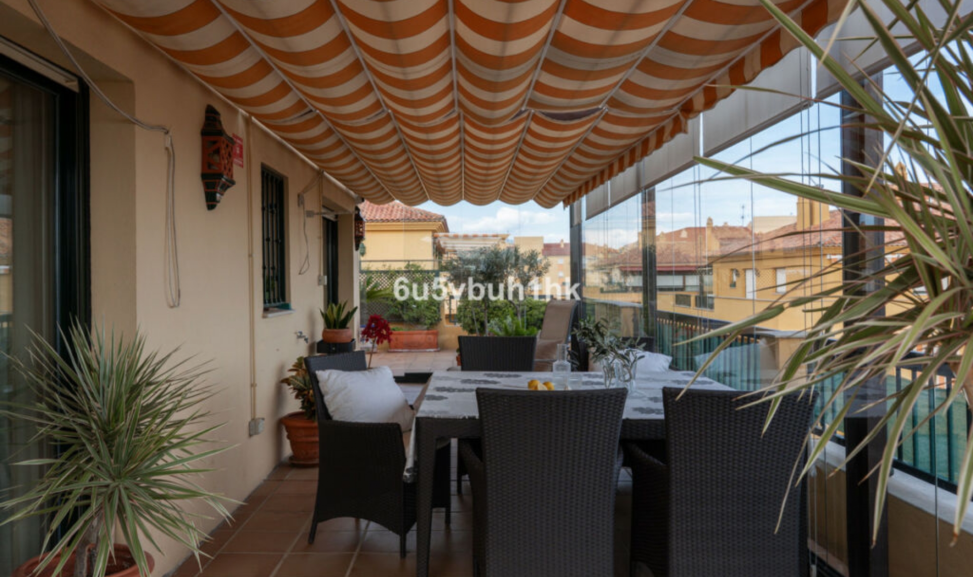 We invite you to explore this remarkable 4 bedroom penthouse that offers spectacular 180º sea views and epitomizes the perfect blend of location, space, and functionality. Nestled in one of the most coveted areas of San Pedro de Alcantara, this property is situated within walking distance to all amenities (restaurants, supermarkets, pharmacies, international and local schools, gym, cafés etc.) and just a few minutes walk from the beach. Upon entering this exquisite residence, you are greeted by a generously sized living-dining area, flooded with natural light thanks to the expansive windows that frame breathtaking views of the Mediterranean. The layout is thoughtfully designed to ensure seamless connectivity to the outdoors, enhancing the overall ambiance of tranquility and luxury. The separate, fully fitted kitchen stands as a culinary masterpiece, complete with a dedicated laundry room. For those who favor an open-concept lifestyle, the kitchen can easily be integrated into the living area, creating a spacious, inviting environment ideal for entertaining family and friends. This penthouse boasts four elegantly appointed bedrooms, each showcasing finishes that reflect sophistication and space. The master bedroom is a private sanctuary, featuring its own en-suite bathroom for added convenience and comfort. In total, the residence includes four bedrooms, three bathrooms and a private sauna with sea views, offering a spa-like experience in the comfort of your home. What truly sets this penthouse apart is the extensive terrace that envelops the property, measuring over 143m². This outdoor oasis provides unparalleled views and can be accessed from nearly every room, giving you the sensation of residing in a secluded skyvilla rather than a penthouse. It's the perfect setting for sunbathing, alfresco dining, or simply soaking in the serene surroundings while enjoying the incredible views over the Mediterranean. With the penthouse there comes well sized two underground parking spaces and a spacious storage room, ensuring space for your needs. Residents will also enjoy access to a large swimming pool area and beautifully landscaped communal gardens, enhancing the allure of this exceptional property. Don't miss the opportunity to make this property yours in the Mediterranean. The property has markable opportunities to convert it into a paradise in the skyline. Perfect as it is, or with some renovation, it could be truly exeptional jewel. With it´s unparalleled location, stunning views, and spacious areas, it is a unique opportunity for a family or for an investor.