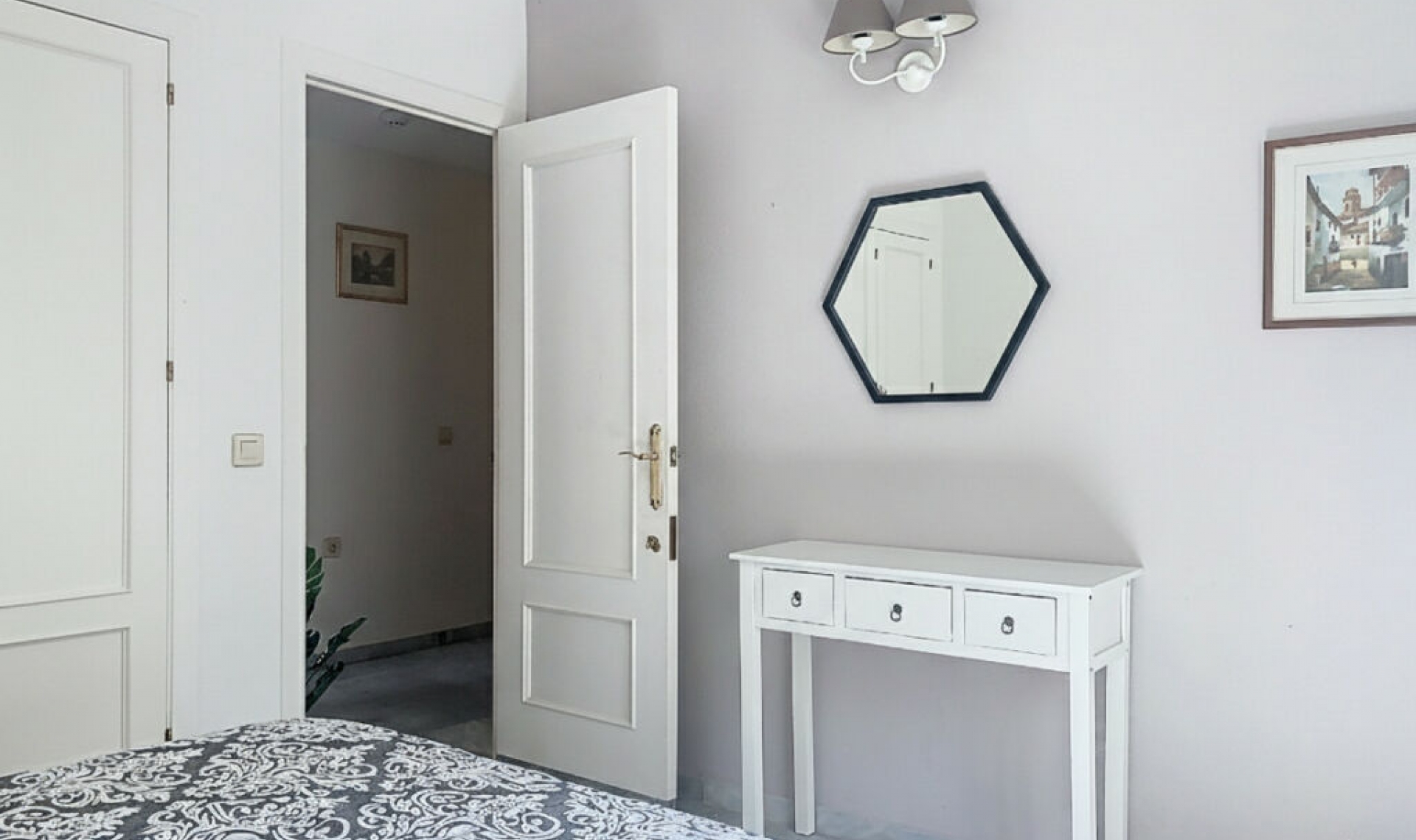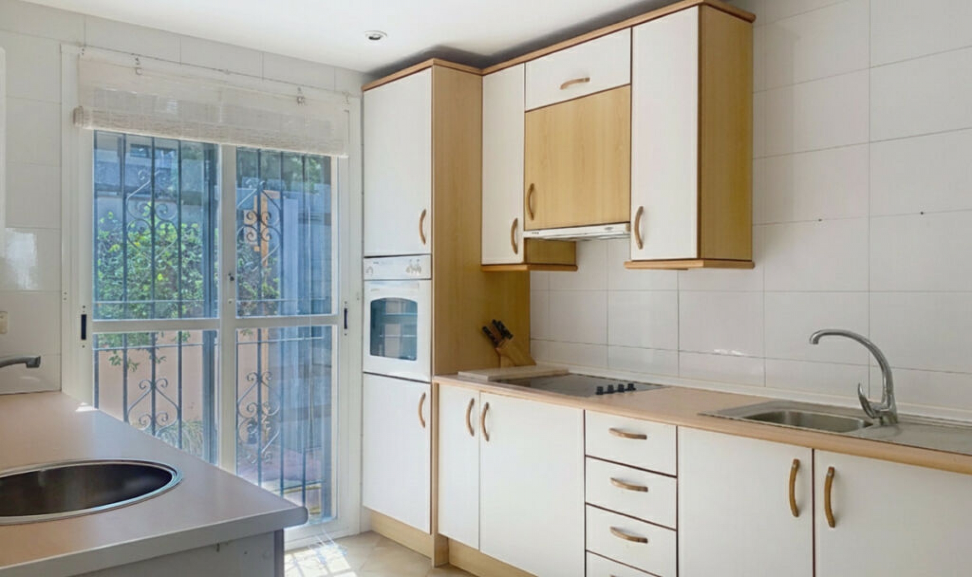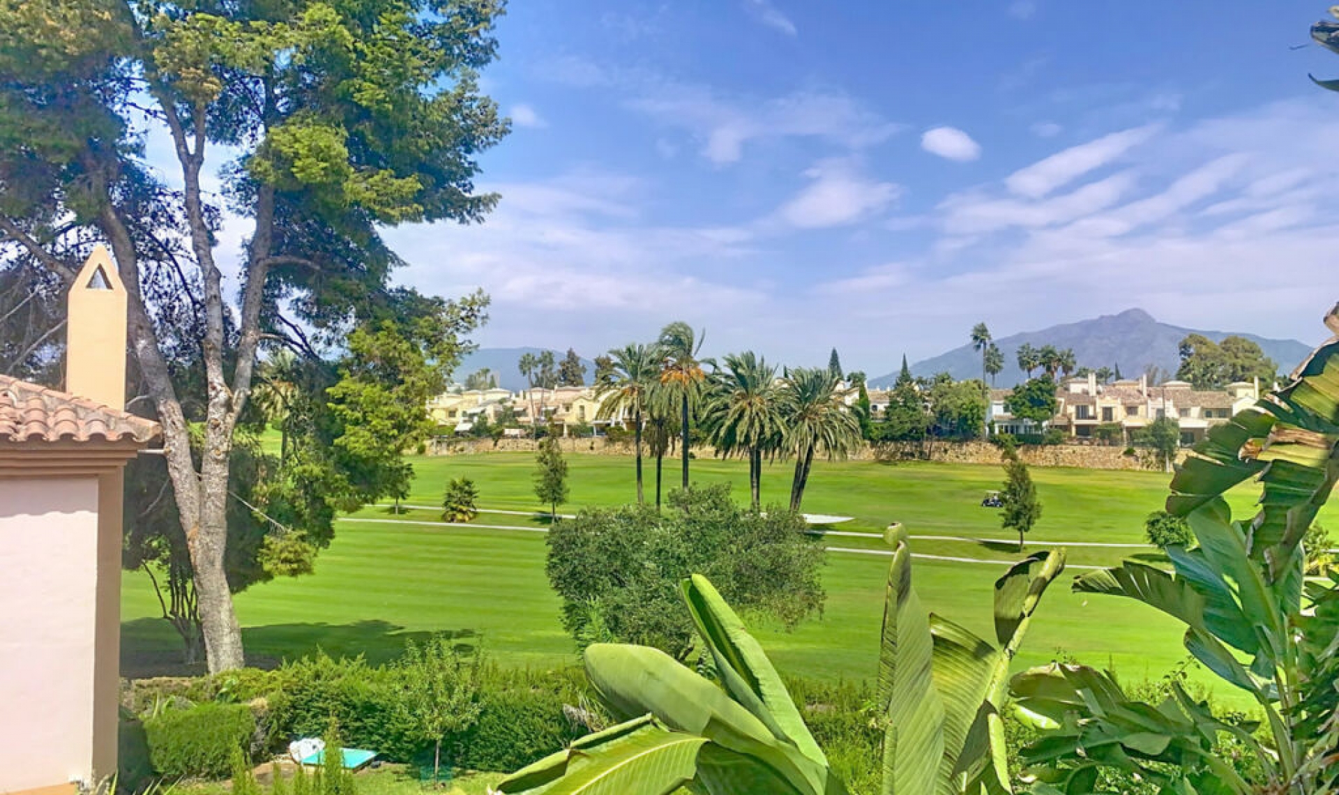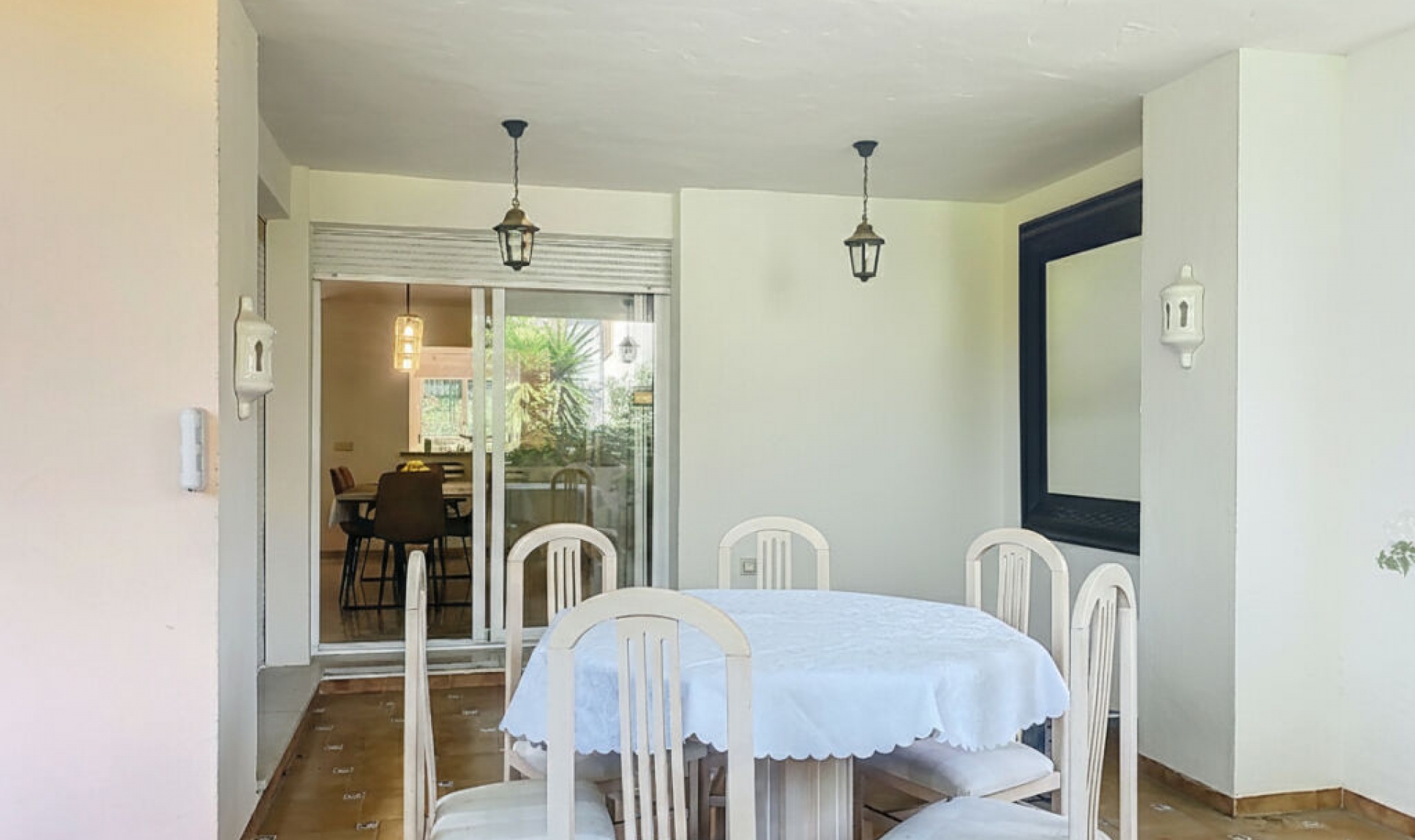 This semi-detached property is located in Guadalmina Alta, in a privileged frontline golf location and just minutes from all essential services in both San Pedro de Alcántara and Marbella and Puerto Banús. With a built area of 254․27 m² on a 246․33 m² plot, the property combines the main two-storey house and an independent apartment, offering great value in a tranquil setting, with open views of the golf course and easy access to schools, shops, restaurants, and the beach. The private plot features two patios. The entrance patio includes a porch and a covered carport for two vehicles, providing access to the house. On the main floor, the property offers a spacious living-dining room with a fireplace and marble floors, creating an elegant and welcoming atmosphere. The kitchen, semi-open in style and fully equipped for daily use, connects both to the dining area and the entrance patio. This floor also includes a guest toilet for added convenience. From the living-dining room, there is access to a 40 m² covered terrace, perfect for enjoying the Mediterranean climate. Downstairs, the terrace connects to the front patio—a space with abundant vegetation and shade that, in addition to having side access from the street and offering an independent entrance to the guest apartment, features a gate with direct access to the communal swimming pool. The sleeping area is located on the upper floor, with three bedrooms, all with built-in wardrobes. The master bedroom features a walk-in closet, en-suite bathroom, and access to a private 20 m² terrace with direct views of the golf course. The other two bedrooms share a full bathroom equipped with a bathtub. In the basement, accessible from the house terrace or the front patio, there is an independent guest apartment, consisting of a spacious open-plan room with kitchen-dining and living area, one bedroom, a walk-in closet, and a full bathroom. This space ensures privacy for guests or family members, although it can also be adapted for any other use according to the needs of the new owners. The property is in good general condition, although a renovation would further enhance its value, modernize the spaces, and adapt it to each family's lifestyle. Thanks to its proximity to golf courses, the beach, schools, shops, and restaurants, this property represents a practical, versatile, and well-connected option for those seeking quality of life on the Costa del Sol.