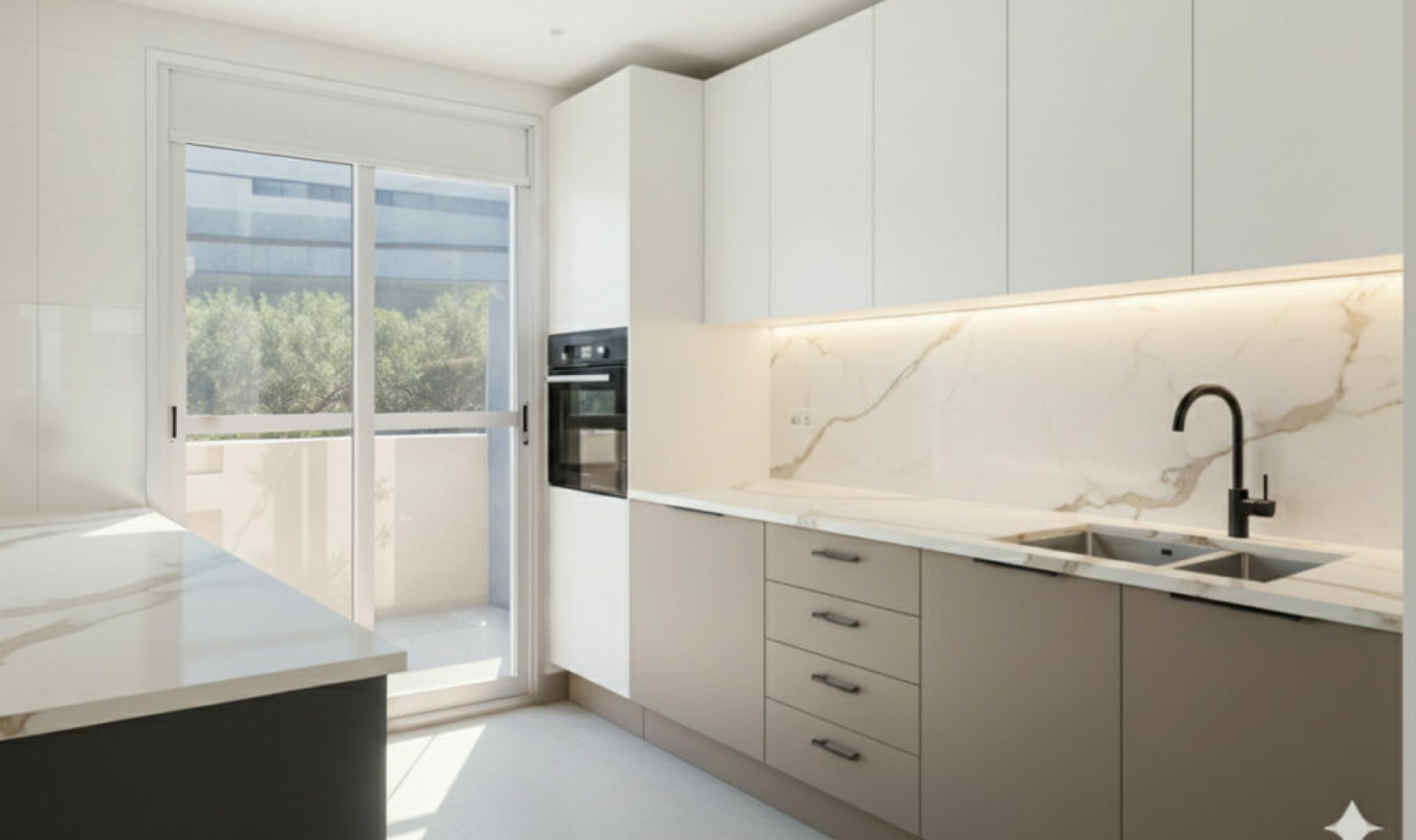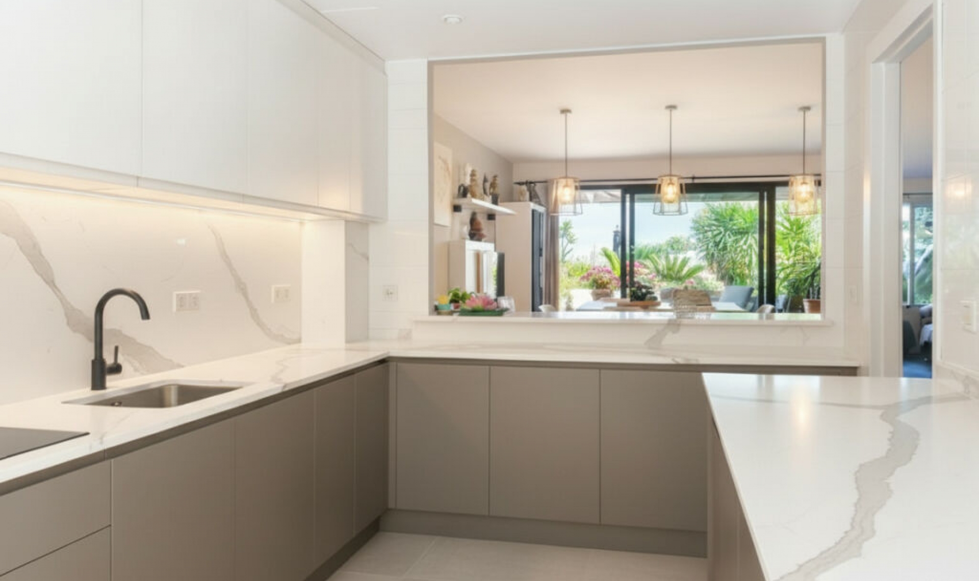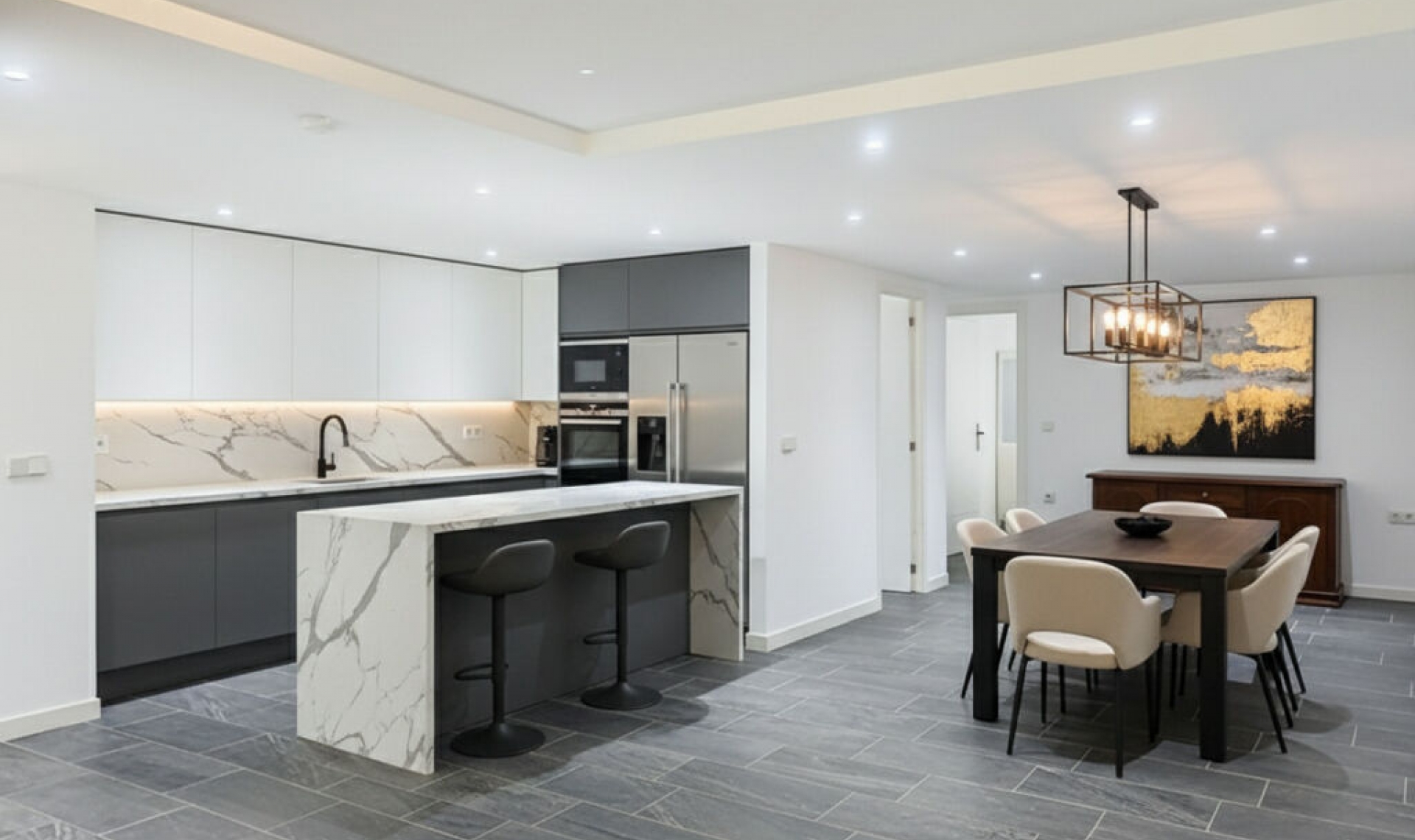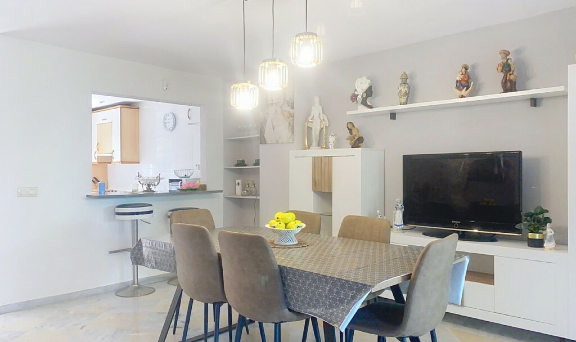This semi-detached property is located in Guadalmina Alta, in a privileged frontline golf location and just minutes from all essential services in both San Pedro de Alcántara and Marbella and Puerto Banús. With a built area of 254․27 m² on a 246․33 m² plot, the property combines the main two-storey house and an independent apartment, offering great value in a tranquil setting, with open views of the golf course and easy access to schools, shops, restaurants, and the beach. The private plot features two patios. The entrance patio includes a porch and a covered carport for two vehicles, providing access to the house. On the main floor, the property offers a spacious living-dining room with a fireplace and marble floors, creating an elegant and welcoming atmosphere. The kitchen, semi-open in style and fully equipped for daily use, connects both to the dining area and the entrance patio. This floor also includes a guest toilet for added convenience. From the living-dining room, there is access to a 40 m² covered terrace, perfect for enjoying the Mediterranean climate. Downstairs, the terrace connects to the front patio—a space with abundant vegetation and shade that, in addition to having side access from the street and offering an independent entrance to the guest apartment, features a gate with direct access to the communal swimming pool. The sleeping area is located on the upper floor, with three bedrooms, all with built-in wardrobes. The master bedroom features a walk-in closet, en-suite bathroom, and access to a private 20 m² terrace with direct views of the golf course. The other two bedrooms share a full bathroom equipped with a bathtub. In the basement, accessible from the house terrace or the front patio, there is an independent guest apartment, consisting of a spacious open-plan room with kitchen-dining and living area, one bedroom, a walk-in closet, and a full bathroom. This space ensures privacy for guests or family members, although it can also be adapted for any other use according to the needs of the new owners. The property is in good general condition, although a renovation would further enhance its value, modernize the spaces, and adapt it to each family's lifestyle. Thanks to its proximity to golf courses, the beach, schools, shops, and restaurants, this property represents a practical, versatile, and well-connected option for those seeking quality of life on the Costa del Sol.