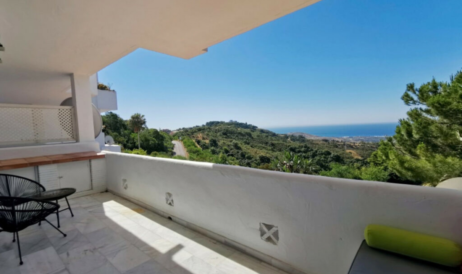 WHAT A VIEW! This superb south facing 3 bed corner duplex apartment lies on the hills of Elviria and boasts utterly breathtaking views to the sea towards the coasts of Africa. Probably the best unit in this small complex of 28 neighbors only, the apartment has been tastefully refurbished and upgraded, is in excellent condition and perrfectly equipped. The property features on a main floor a good size living-dining room open onto a superb terrace with commanding views, luxury open plan kitchen with Silestone work-top and Bosh appliances, one double bedroom with large wardrobes opening onto the main terrace and one bathroom with large walk-in shower. The lower level accommodates the 2nd and 3rd bedrooms both with large wardrobes sharing a large bathroom and a beautiful covered terrace with stunning views as well. This property is by far the most private within the complex and benefits from a large rear patio with al-fresco dining and BBQ area and a private storage room. The community is gated, very peaceful and private, perfectly integrated in the naturals surroundings with a superb swimming-pool and parking spaces. Ideal for long term stay or family holiday. It really worths a viewing. Airport: 35 min drive - Marbella Town: 15 min drive - Puerto Banus: 20 min drive - Golf : 5 min drive - Beach: 9 min drive - Restaurants/Bars: 5 min walk and 8 min drive - Amenities: 8 min drive - PublicTransports: 8 min drive Our team works incessantly to make sure that the description and the sales prices for the properties offered on this website are correct and up to date. Notwithstanding, the information contained in this website is subject to errors and omissions, and the properties themselves subject to price changes, prior sale or withdrawal from market. The property market on the Costa del Sol has completely recovered and good properties are being snapped up fast! We suggest that if you see something you like that fits your budget, contact us as soon as possible to avoid disappointment!