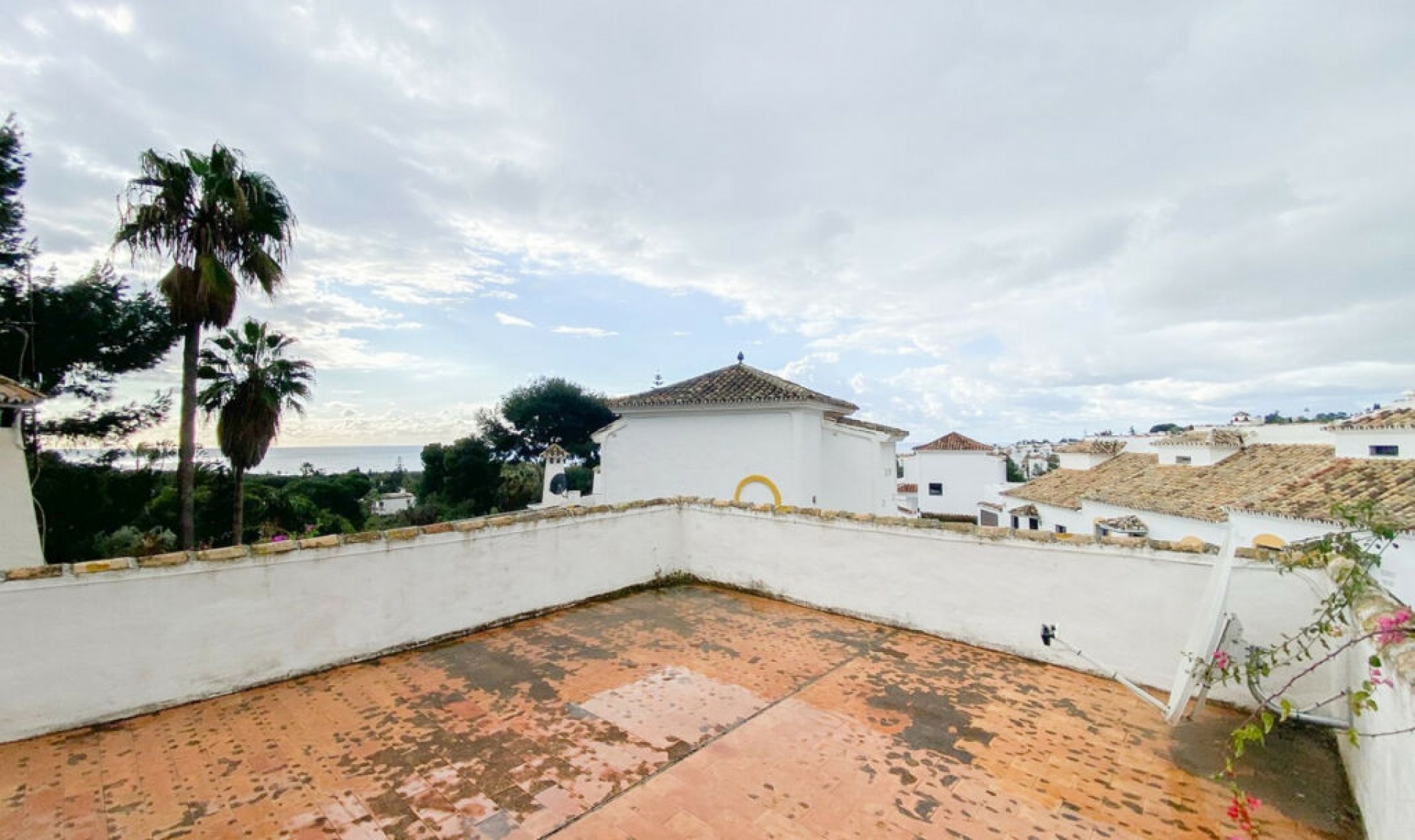 Located in Calahonda, this detached villa offers an exceptional balance between serenity, comfort and possibilities for transformation. With beautiful sea views and great potential for redesign, this property is an ideal choice for both those looking for a family home and investors looking for unique opportunities. The property features a classic design with a spacious living room distributed on two levels and a separate kitchen. It currently has three bedrooms, all with en-suite bathrooms, and enough space to add a fourth bedroom after a renovation. Spacious terraces and a winter garden bring natural light and versatility to the living space, while the living room, with its cozy fireplace, is perfect for cooler evenings. The master bedroom is located upstairs and has a spacious bathroom and a private terrace. The entire house is equipped with air conditioning for added comfort. Outside, the garden offers generous dimensions and the possibility to build a private pool In addition, the property has parking for two vehicles right next to the house. The location on a private street guarantees privacy and tranquility. With its ample indoor and outdoor spaces, this villa is perfect both as a primary residence and for vacation getaways. Do not hesitate to ask for a viewing!