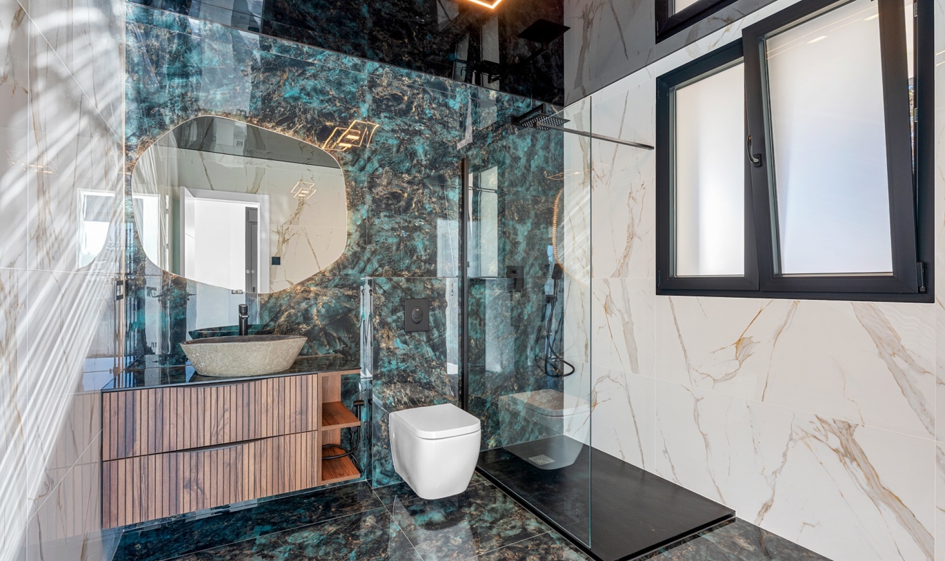 Discover the essence of Mediterranean luxury in this spectacular, fully renovated detached villa, located on one of the most sought-after streets in Ciudad Quesada, just steps from the town center and on an exclusive corner plot that guarantees privacy, spaciousness, and a unique lifestyle. This property combines contemporary design, efficiency, and absolute comfort: Home 4 spacious bedrooms, all with custom-made wardrobes and premium finishes. 4 designer bathrooms, 3 of them en suite, equipped with high-end materials and an impeccable modern aesthetic. A large, open-plan living and dining room that connects to the luxury open-plan kitchen, equipped with state-of-the-art BOSCH appliances. Individual zoned air conditioning, controllable via a mobile app. Underfloor heating throughout the house, ideal for year-round comfort. Integrated home automation and electric blinds for a smart living experience. Exclusive finishes: designer tiles, materials, and woodwork, blending elegance and functionality. Exterior Impressive 5x10 meter private pool with built-in jacuzzi, perfect for relaxing and enjoying the exceptional climate of the Costa Blanca. Large, separate laundry area, fully equipped with a washer and dryer. An outdoor environment designed for leisure, privacy, and outdoor living. This villa represents a unique opportunity for those seeking a high-end home in one of Quesada's most sought-after locations, combining technology, style, and comfort in a privileged setting.