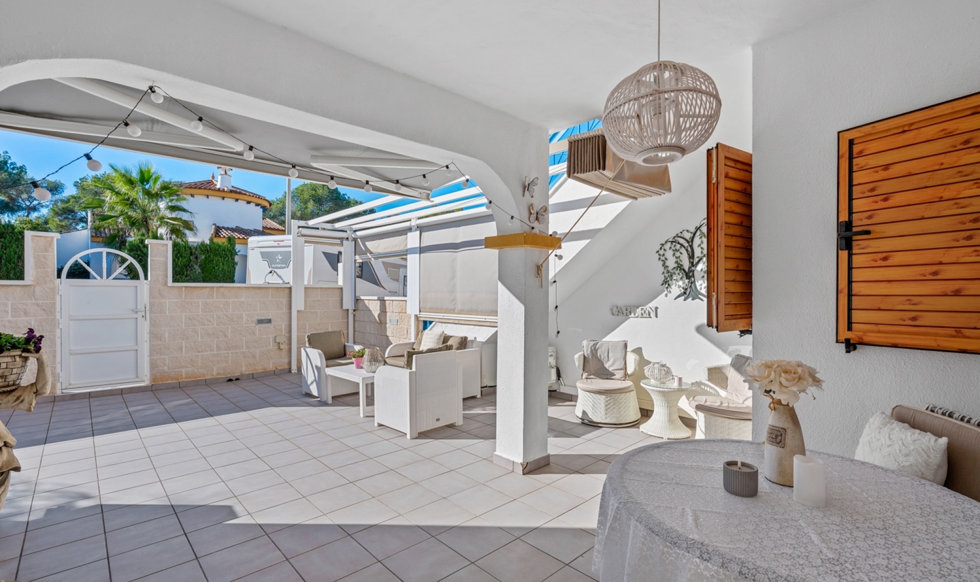 This lovely west-facing apartment is located in a quiet and well-established residential area in Mil Palmeras, just 800 metres from the sea and within easy walking distance to one of the most popular beaches on the Costa Blanca. The property offers two bedrooms, where the second bedroom is an extension and is accessed through the main bedroom. The apartment features a modern and stylish bathroom, as well as a recently renovated kitchen with a fresh and contemporary design. Outside, you can enjoy a spacious terrace and a cosy outdoor seating area, perfect for relaxing in the afternoon sun. The community also offers a shared swimming pool, ideal for cooling down on warm Mediterranean days. Key features: West-facing2 bedrooms (one accessed through the main bedroom)Modern, attractive bathroomUpdated kitchenLarge terrace and outdoor areaCommunal swimming poolQuiet and pleasant residential area Prime location: Only 10 minutes’ walk to Mil Palmeras Beach, one of the most highly regarded beaches in the area, with beachfront bars open all year roundParks, gardens and green areas nearbySupermarkets, shops and international restaurantsSports facilities, paddle tennis clubs and cycling routes15 minutes to Lo Romero golf courseExcellent connections to Alicante and Murcia (Corvera) airportsSchools and colleges in the area Book your viewing today and discover your new home on the Costa Blanca.