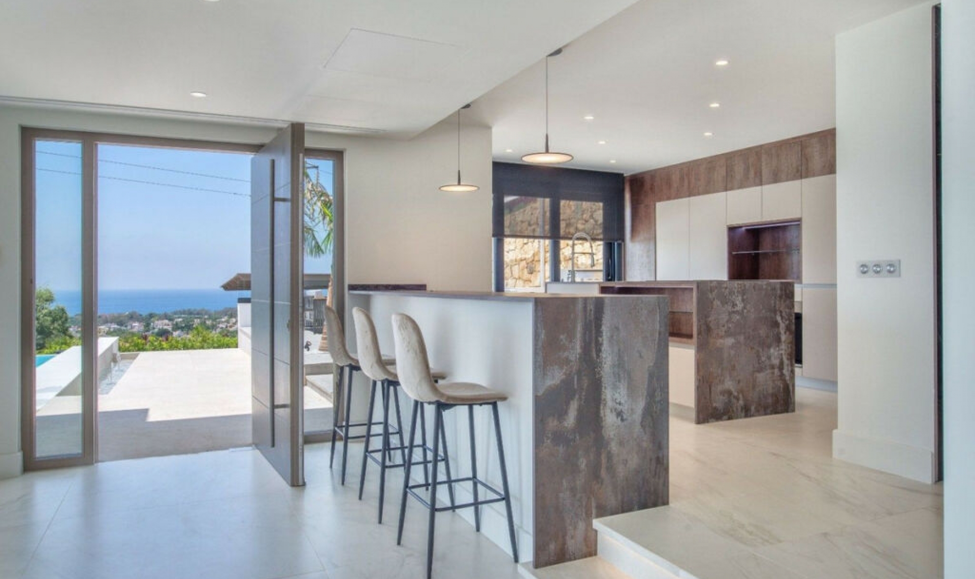 We are proud to present to the market this luxurious villa in the popular Elviria area, just to the east of Marbella. Constructed in a modern, contemporary style with a huge open plan living space and Kitchen which enjoy stunning panoramic views. The accommodation is set out over three floors, with almost all of the bedrooms benefitting from the views. The master bedroom on the first floor has a vaulted ceiling and "open plan" en suite bathroom and walk in wardrobe with patio doors to the terrace. There are three further bedrooms on this level, all opening onto the terrace and with fitted wardrobes. There is a family bathroom servicing these three bedrooms. On the lower level of the villa you will find the indoor pool and adjoining gym area. There is a large TV / games room as well as two further bedrooms and a bathroom. Finally there is a utility room and maid's bedroom with en suite shower room. The swimming pool has an adjoining terrace for outdoor dining and socialising. There is a carport and driveway parking. This property is an ideal Investment for holiday rentals or first or second home living.