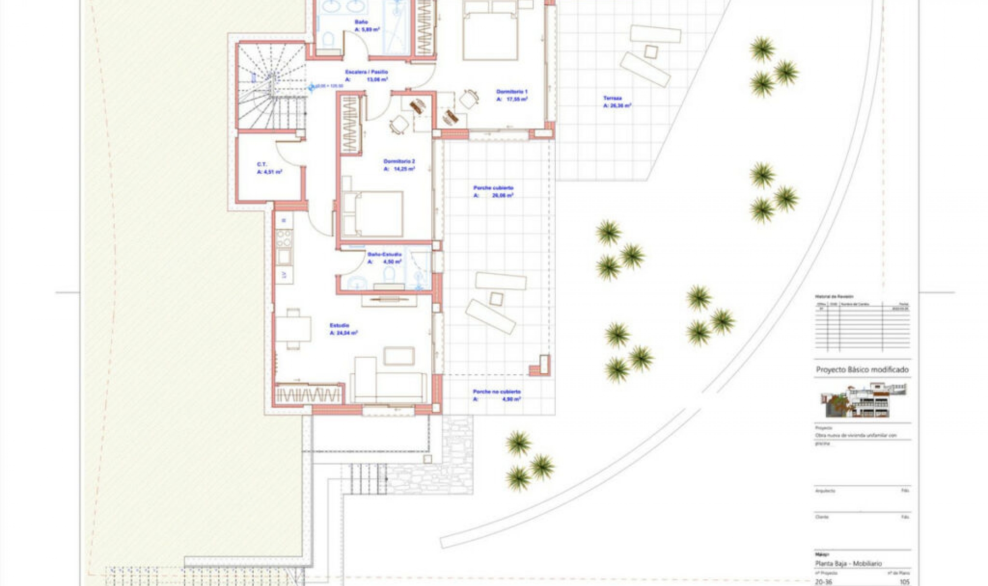 Project and licenses approved so construction can start as soon as the client wants. Off-plan luxury villa, 1st line golf in La Cala Golf consisting of 2 floors and a huge solarium with terrace and pool. This property will have 5 bedrooms, a studio/bedroom, 3 bathrooms, guest toilet, a fully fitted kitchen with all appliances, and terraces. - An airtight building envelope - Thermal bridge-free design and construction - Ventilation with highly efficient heat or energy recovery - Aerothermia & airconditioning - Exceptionally high levels of insulation - Well-insulated window frames and glazings - Island and kitchen fully fitted with household goods - High-quality tiles from GRESPANIA 1200X1200 - 800X800 - 600X600 - Heated pool fitted with the same tiles as the terrace or with gresite and colour at choice - Fully fitted bathrooms from ROCA or similar - Bathroom walls covered with COVERLAM wall plates - Windows with Planistar glass S4 5+5/16/4+4 We are a construction company, Key-in-Hand, that can design and construct any possibility you can think of. If you do not see a design of us that you like we design a totally new villa for you according to your ideas and input. Although we prefer to construct ecological building, we can construct from traditional construction to ecological constructions it all depends on you.