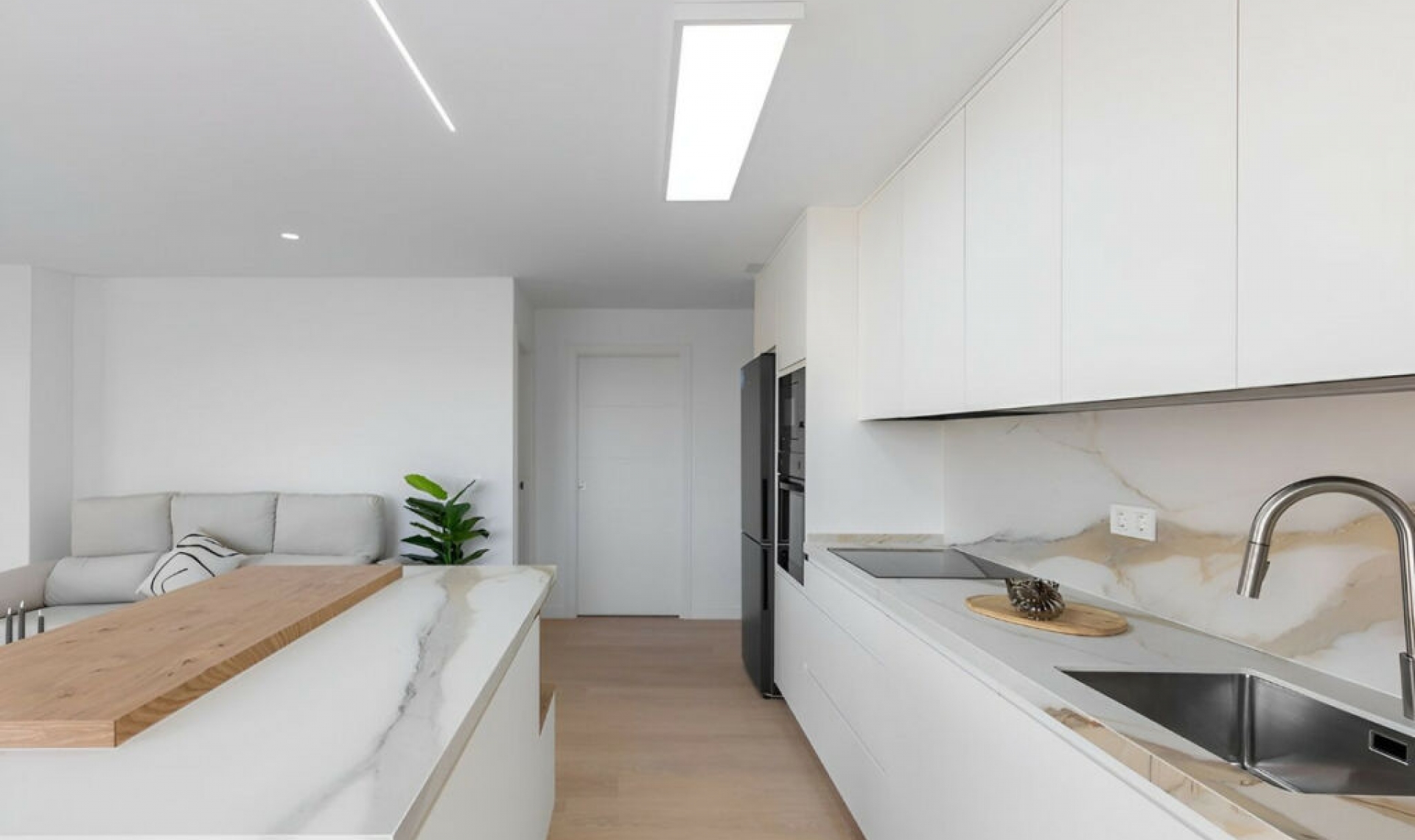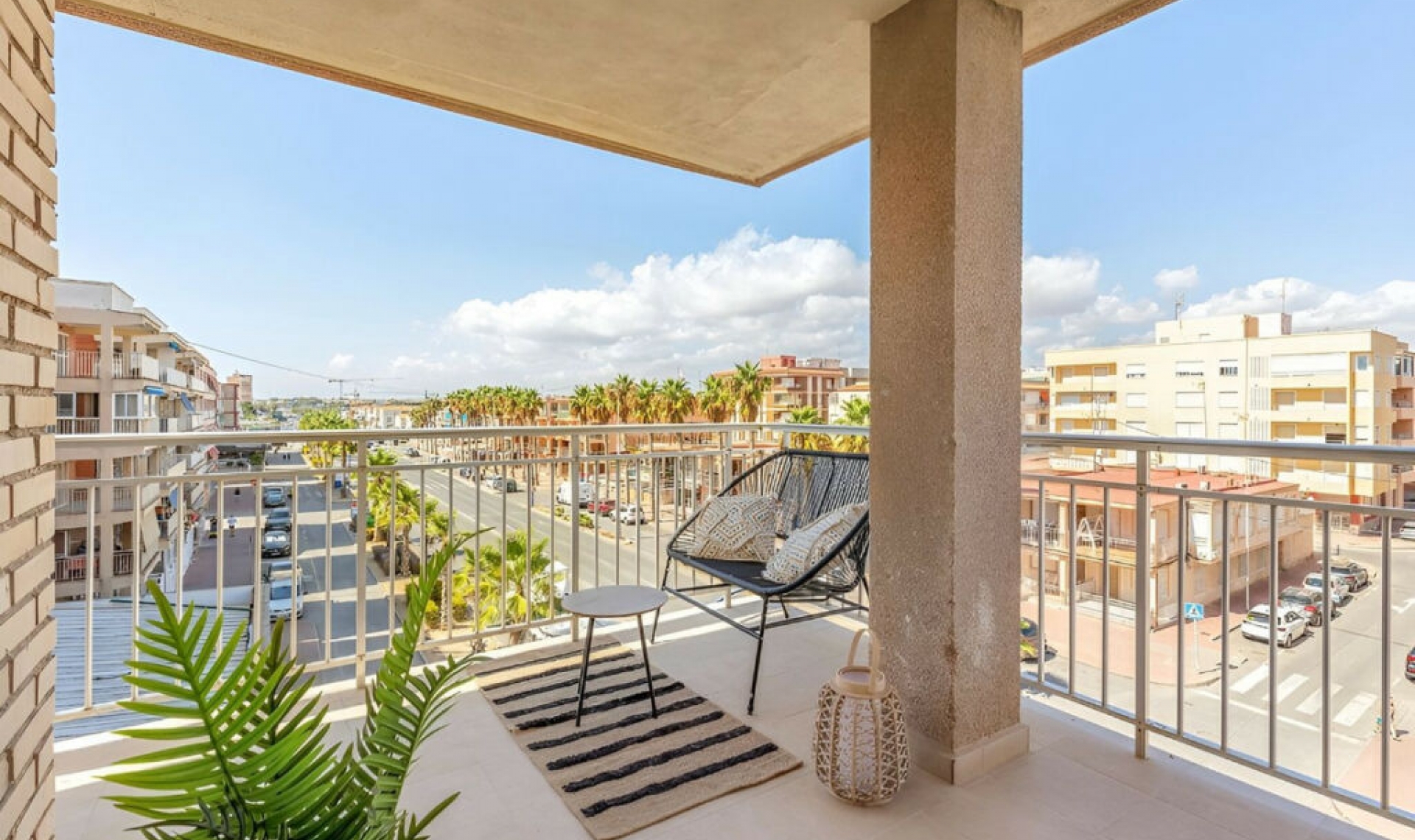 This gorgeous apartment in Torrevieja, situated in the highly desirable Playa de los Náufragos area, is a true treasure on the Mediterranean coast. Offering 91 m² of living space and a generous 20 m² terrace, this fully renovated property includes 3 spacious double bedrooms and 2 modern bathrooms. High-quality materials have been used throughout, creating a stylish and inviting atmosphere. With a southwest orientation, the home benefits from abundant natural light, further enhanced by sleek ceramic flooring that adds a contemporary feel. The fully equipped kitchen connects to the bright and airy living room, which is fitted with air conditioning to ensure year-round comfort. Recessed lighting in the hallway and living area enhances the apartment's elegant and cozy ambiance. Situated right on the beachfront, it offers nice sea views, making it a perfect retreat for relaxation. Equipped with modern conveniences, including an elevator, a balcony, and quality furnishings, this home is designed for both comfort and style. Its prime location provides easy access to essential amenities such as public transportation, shopping centers, medical facilities, supermarkets, parks, playgrounds, and hospitals. This property is ideal for those seeking a blend of luxury, convenience, and Mediterranean coastal scenery in an exceptional urban setting. The apartment is offered without furnishing. Reach out to us for more details.