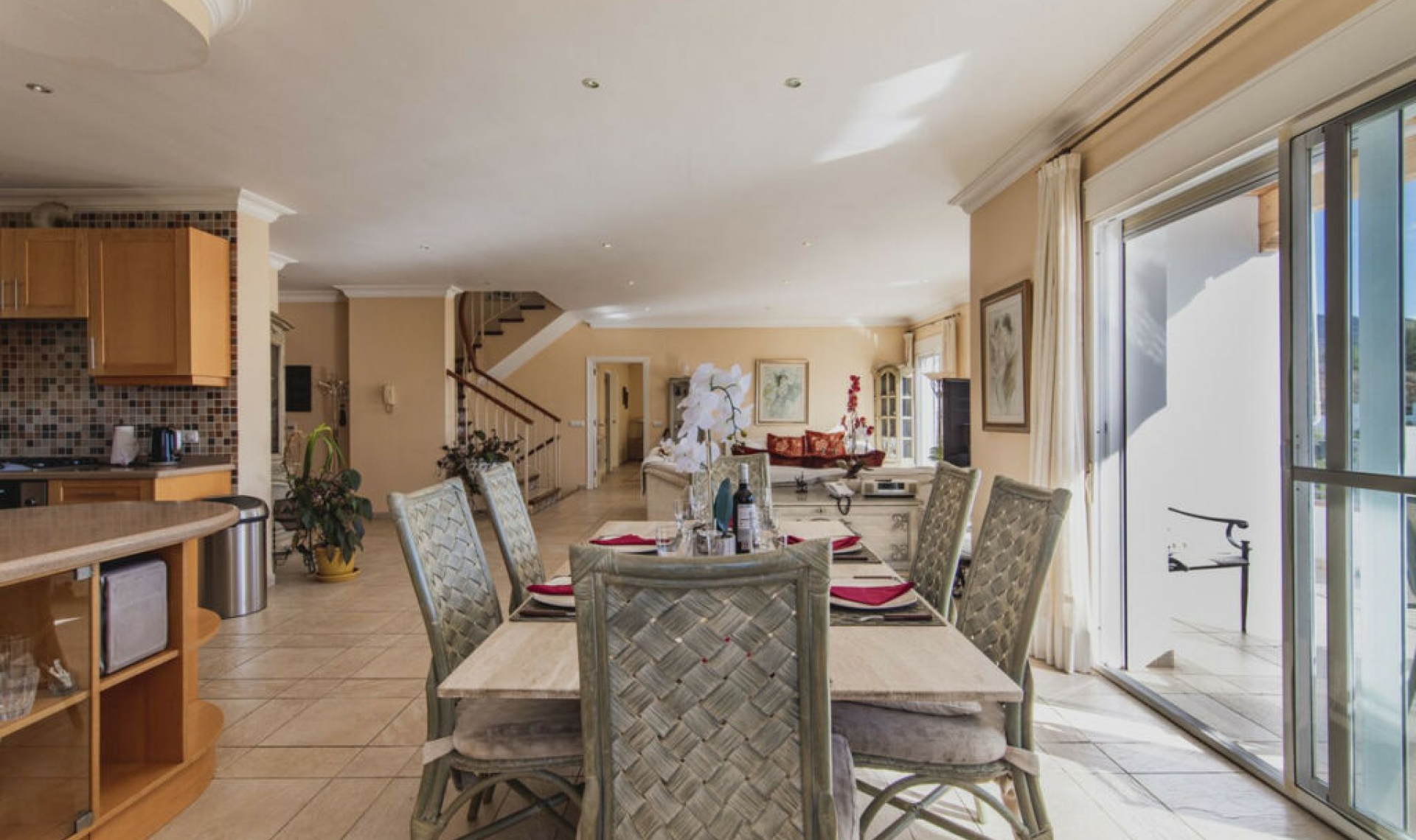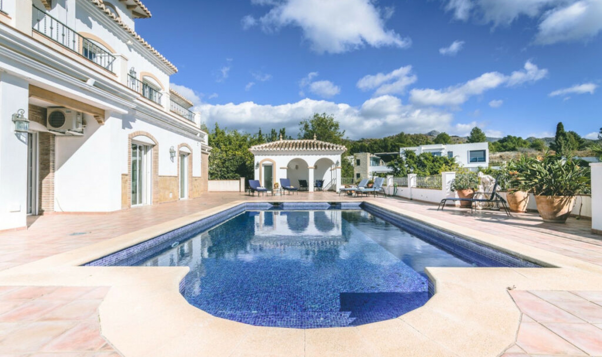 Villa for sale in Cortijos San Rafael, located between Frigiliana and Nerja. This impressive property, which spans 535 m² according to cadastral information, stands out for its spaciousness and elegant layout. It comprises five bedrooms: the tower bedroom on the upper floor is en suite, while the master suite is situated on the ground floor next to the sitting area and features a large dressing room. The three remaining bedrooms, located on the lower floor, offer direct access to a large swimming pool and a spacious terrace. Below these rooms, there is an independent games and party room that offers enormous potential. The approach to the house, adorned with terracotta-tiled floors, leads into an impressive open-plan space that integrates the kitchen, living room, and dining area, while an extensive veranda runs along the ground floor, offering uninterrupted views of the pool and the sea. In addition, the property features a large garage adjacent to the laundry area, as well as ample exterior parking for multiple vehicles. In short, this property must be visited to fully appreciate the potential and scale it offers.
