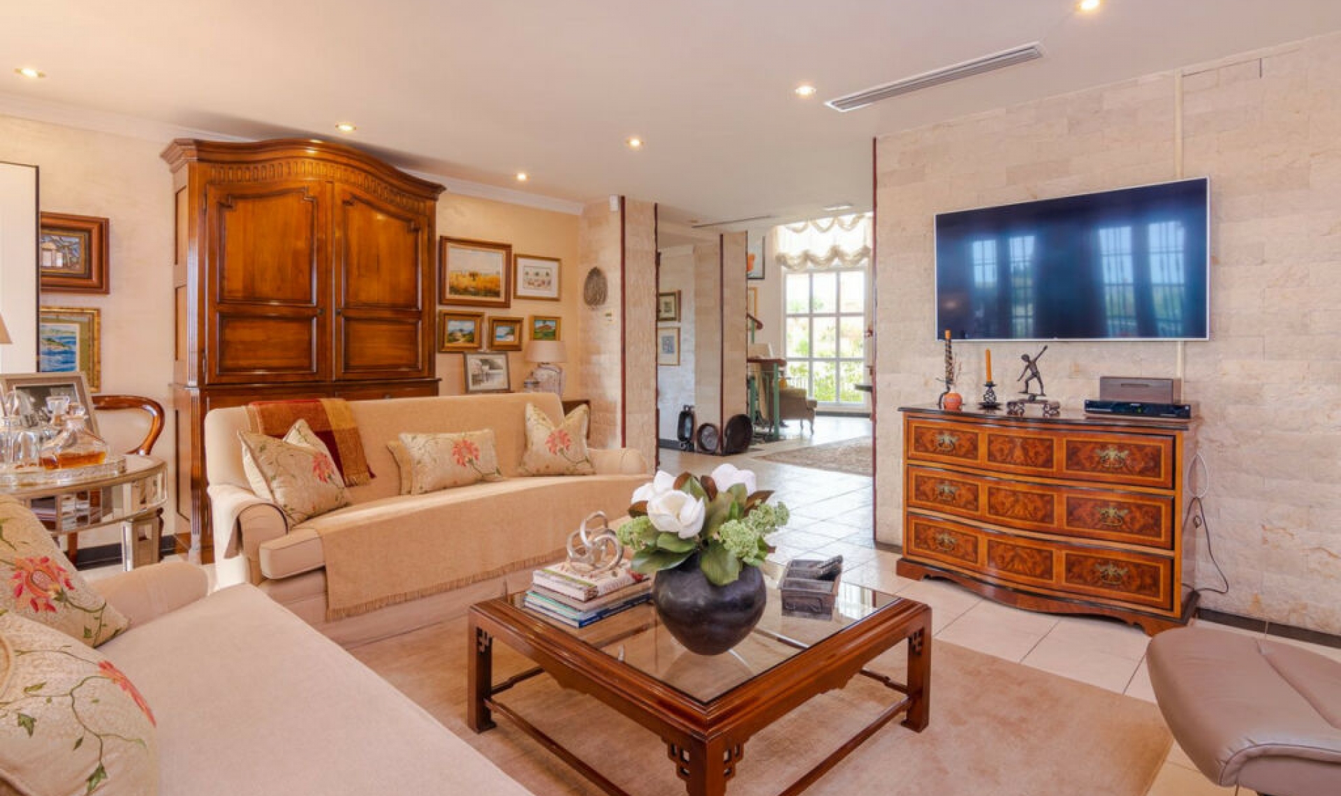 IMPRESSIVE DESIGN VILLA WITH PANORAMIC VIEWS TO THE MEDITERRANEAN SEA, COSTA DEL SOL Andalusian style, immaculate property in great condition. 5 bedrooms, 4 bathrooms, 1 toilet, sauna, private infinity pool overlooking the sea. Very quiet and very private area to enjoy the tranquility and atmosphere of the area. The property consists of 623 m2 built on a 10․000m2 plot. 360º view of golf, mountains, sea and more. Upon arriving at the property, passing through its automatic gate, you reach a road that leads to the entrance of the property, easily parking more than 10 cars inside it. You enter a very stylish hall, it is a property that combines the rustic Andalusian style and the modern. On this floor we find 2 very spacious rooms with direct access to the infinity pool area, a dining area for more than 14 diners, a large kitchen of the highest standing, a large pantry prepared for large events, a barbecue, infinity pool of more than 60 square meters heated, gardens in perfect condition, area of fruit trees. On this floor we also have access to the rest of the property's floors, including a separate one for the service apartment. If we go up to the second floor we find a reception area that gives access to a large main room, completely private from the rest of the house, in it we have a bathroom with all the necessities en suite and a large L-shaped dressing room. Here we have access to a terrace with great views of the pool, sea, mountains of Mijas and golf course. On the ground floor we have the basement area, which can be adapted for a games room, cinema, gym, whatever suits you best with more than 80 square meters and access to the garden, 3 bedrooms, one of them with an en-suite bathroom and another bathroom to share between both rooms. From this floor we have direct access to the Sauna area with a complete bathroom for the pool area. The property has double glazing in all its rooms, all of them being large and has a water tank of 50․000 liters of water to keep as a reserve and use for the house. It has air conditioning and central heating. A house to enjoy the surroundings, the tranquility and the proximity to all services. 25 minutes to Marbella 10 minutes from Cala de Mijas 10 minutes from Fuengirola 25 minutes from Malaga Costa del Sol AGP International Airport 2 minutes from golf 2 minutes from the field and hiking area. If you are looking for something exclusive, do not hesitate to visit it.