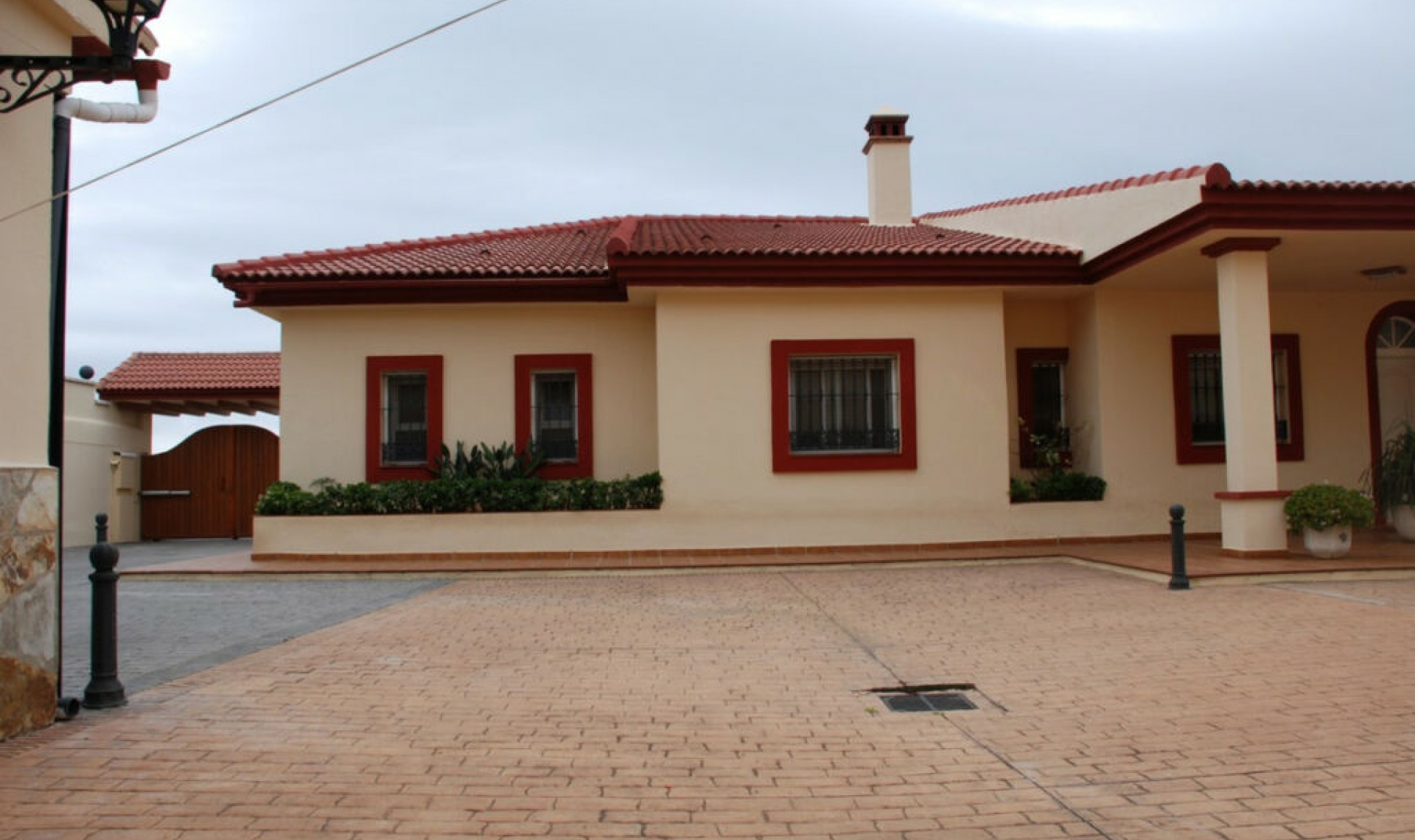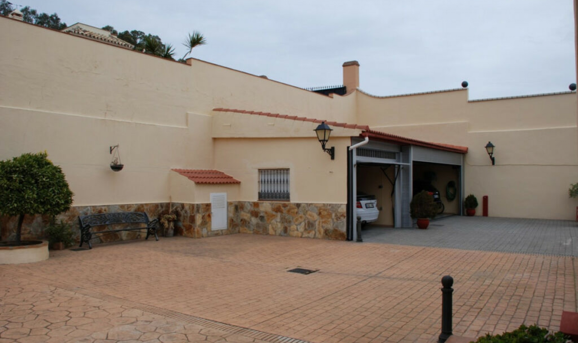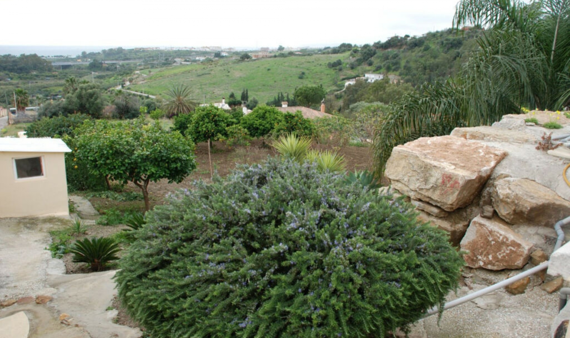 Very special bungalow villa on 2800 square meters land in Estepona. 1600 square meters are built up area. All on one level and beautiful panoramic views of the Mediterranean. Huge eat-in kitchen with separate dining area and laundry. All rooms have access to the landscaped terrace. On the terrace you have a large heated pool and a built in BBQ. There are several storage rooms, a workshop and a small private gym. Air Conditinning, Solar Energy for 500 liter of hot water. garage with automatic doors for 4 cars. Rest of the plot has 45 fruit trees and some agrikultur. There is also a water reservoir about 30․000 liter of fresh water. two big electric entrance door with cameras.