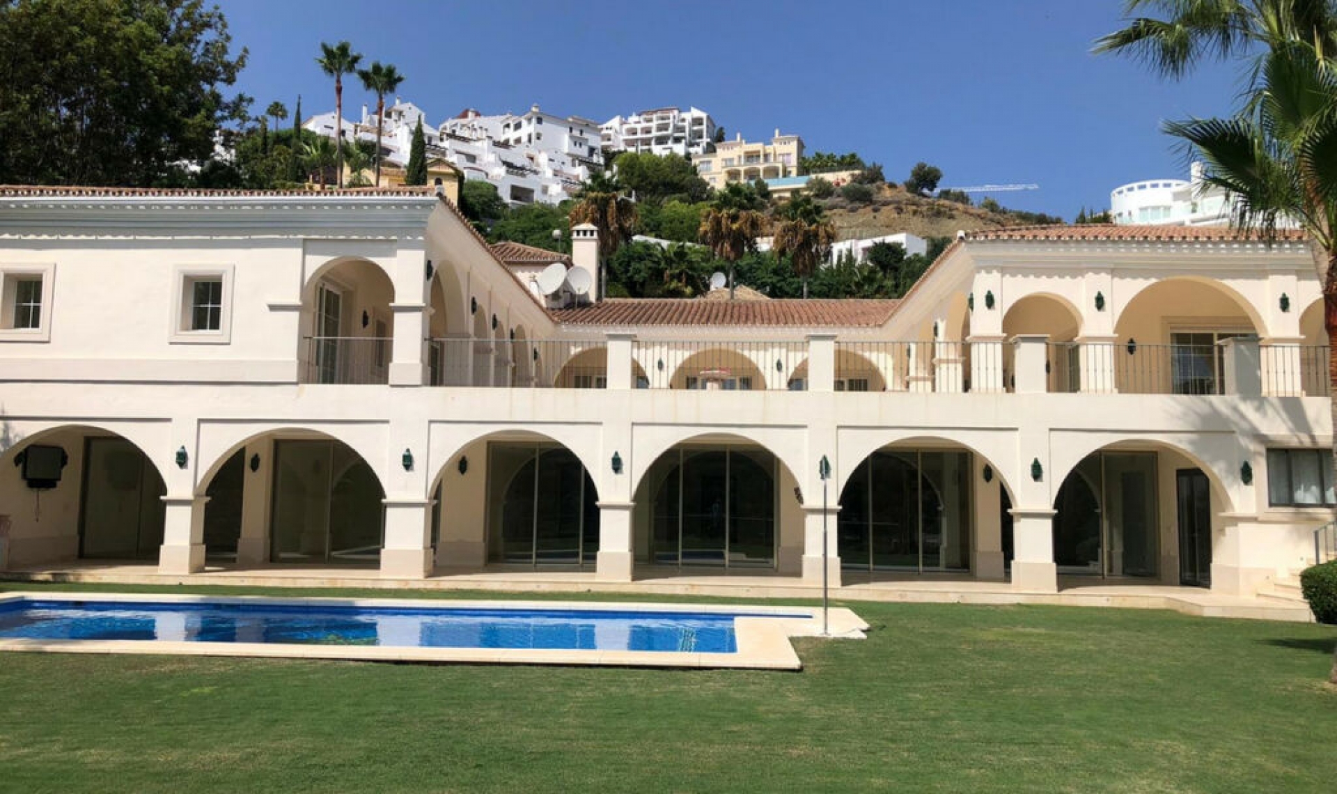 Impresive Luxury Frontline Golf Villa in Los Arqueros The best property in Los Arqueros for sale. Fully equipped luxury frontline golf villa located in Los Arqueros with big plot looking directly to the best area of the Community, looking directly to the golf course, the big Lake and the Mountain of La Concha de Marbella, and also the sea. One of the biggest villas in the urbanization with all amenities to enjoy a luxury lifestyle, with cinema room, huge parking space inside the plot, underfloor heating, gym with sauna and turkish bath, all of these surrounding a big wines Bodega. Perfect luxury residence on the area with an enourmous surface to enjoy the weather in the Costa del Sol.