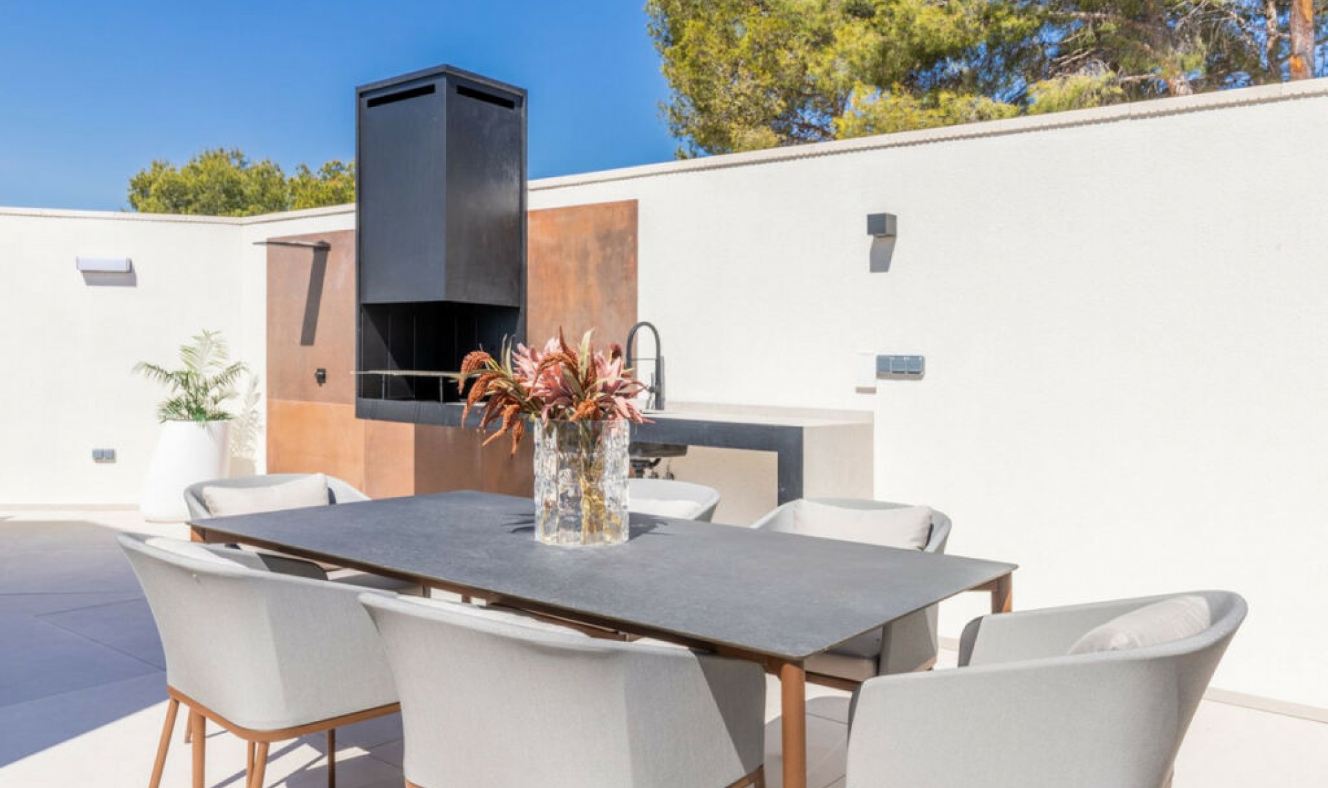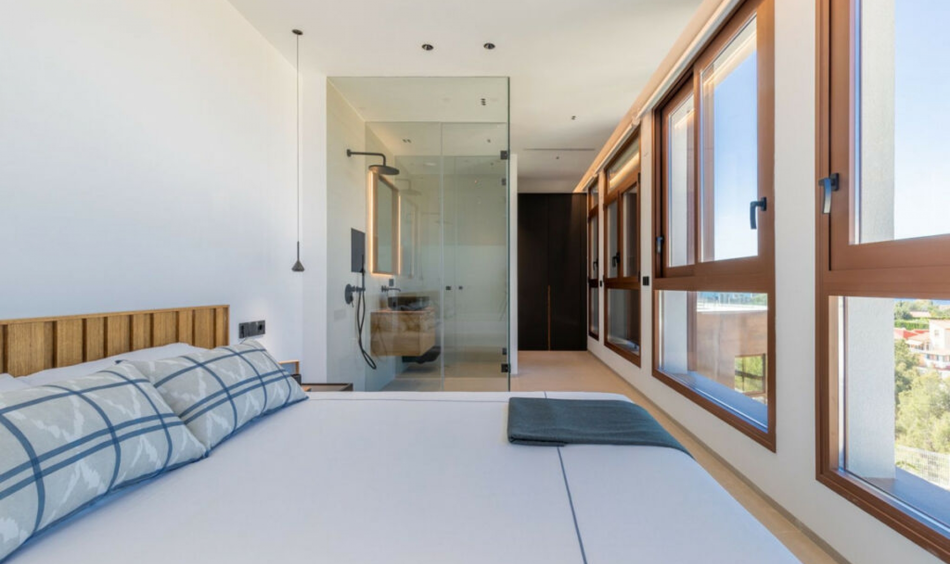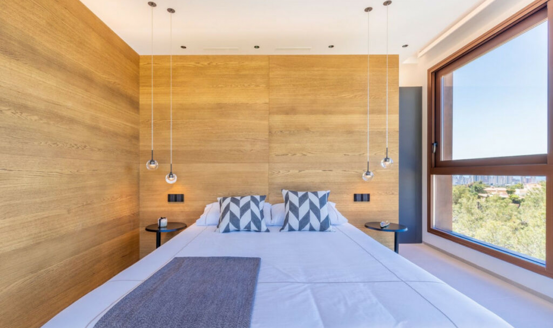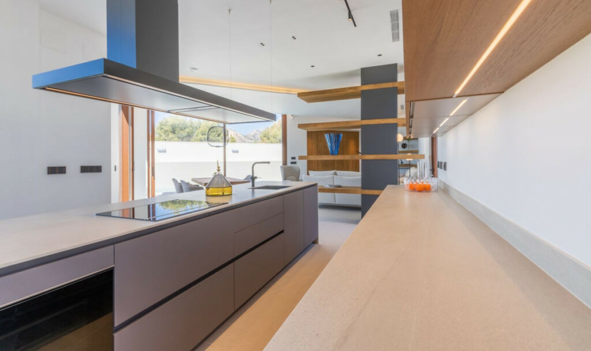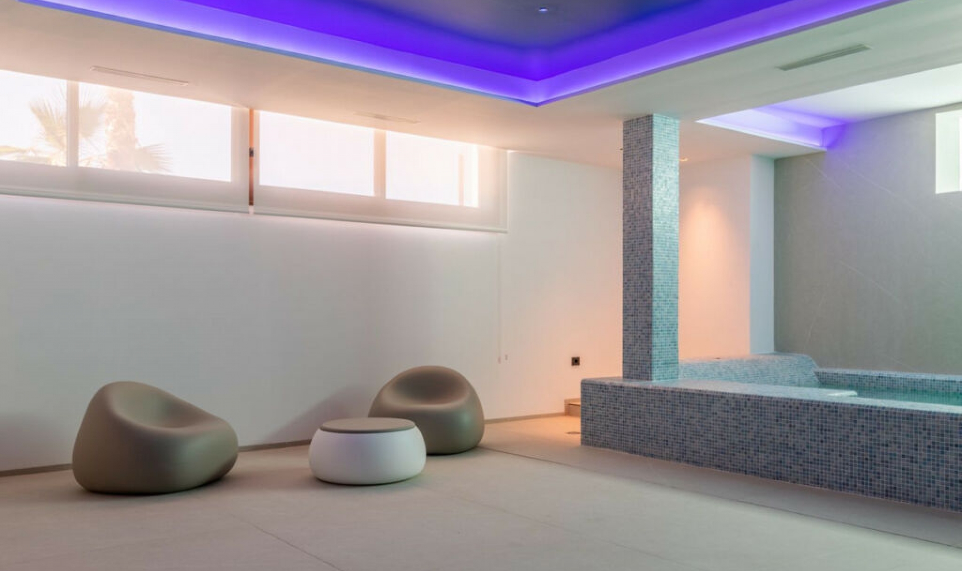 Villa Zen Infinity is a masterpiece of modern architecture, nestled between the sea and the mountains of the beautiful town of La Nucia, just minutes from the vibrant coastal city of Benidorm. From the moment you approach the property, you are drawn in by its sleek and clean design, with straight lines and high quality finishes that give it an impeccable appearance. Villa Zen Infinity features a spacious living room with a breathtaking panoramic view of the Mediterranean Sea. The large 3m tall glass windows with solar protection allow natural light and the sea breeze to flood the rooms, creating a relaxing and welcoming atmosphere. There is a large office and four full suites, each with a sea view and 2 of them with access to their own private terrace. The rooms have an elegant and contemporary design, with minimalist furniture and finishes in light tones that create a calm and serene atmosphere. All bedrooms are en-suite with private bathrooms and dressing rooms, guaranteeing a luxurious and comfortable experience. On the lower floor there is a large Spa, the heart of the villa. A space for complete relaxation and wellness, with a heated Jacuzzi-style swimming pool equipped with a waterfall, hydromassage benches and bubble loungers, as well as a large Finnish sauna and Turkish bath. There is also a large wine cellar and a lift with a stop at each level. The villa also has an outdoor infinity pool and barbecue area, allowing you to enjoy the outdoors and the kitchen at the same time. You will also be able to enjoy the sunsets in its spacious and carefully designed garden. The villa's garage, with capacity for 2 vehicles, is equipped with an electric car charger. The high insulation of the villa's façade, together with its SOUTH orientation and its 19 photovoltaic panels on the roof, allow the property to have an "A" Energy Rating, ideal for those who care about the environment, sustainability and savings. State-of-the-art home automation, underfloor heating and Airzone in every room are some of the many details that complete the comfort and quality of Villa Zen. Overall, Villa Zen Infinity is a unique property with a modern, elegant and sophisticated design, offering an unbeatable quality of life on the Costa Blanca.
