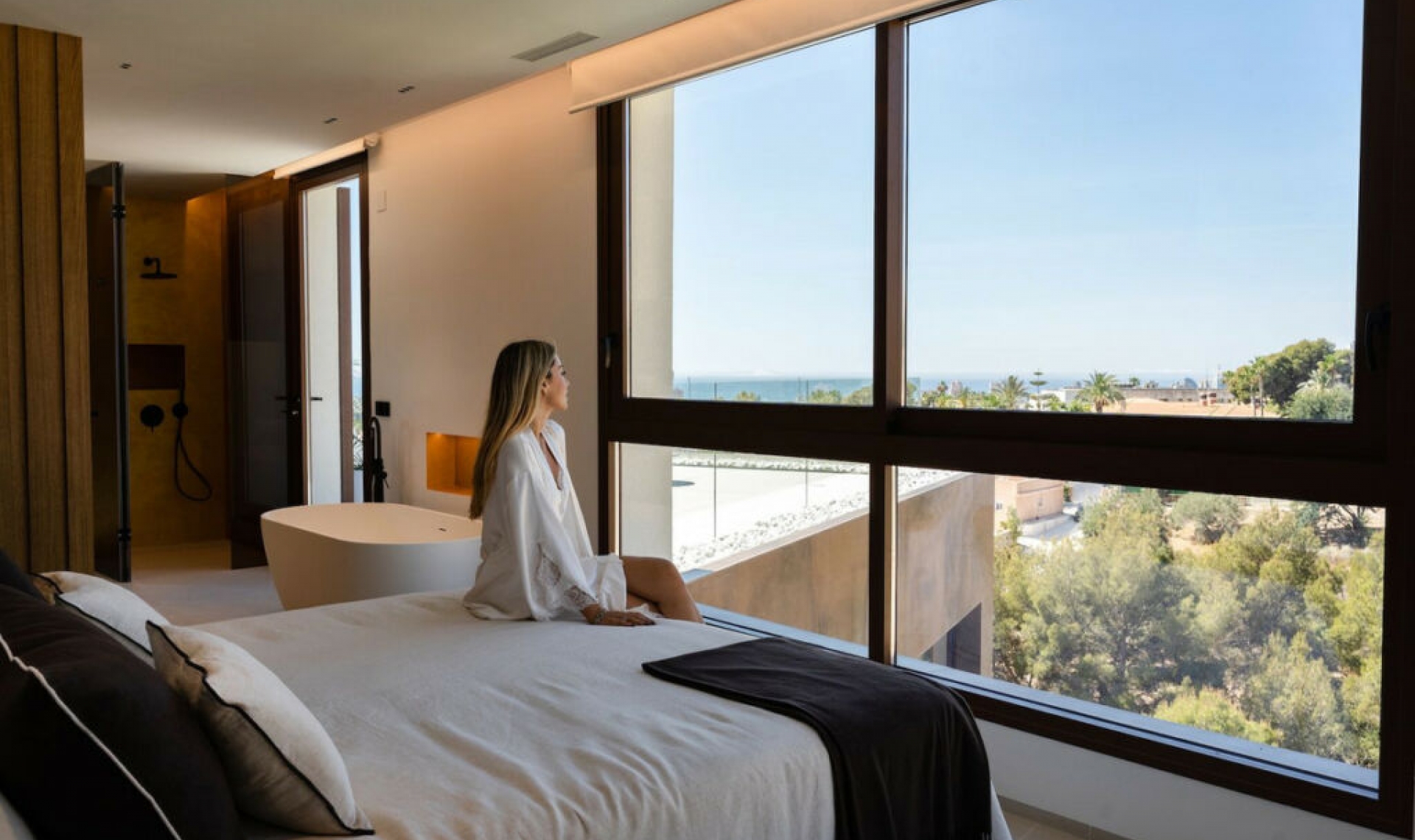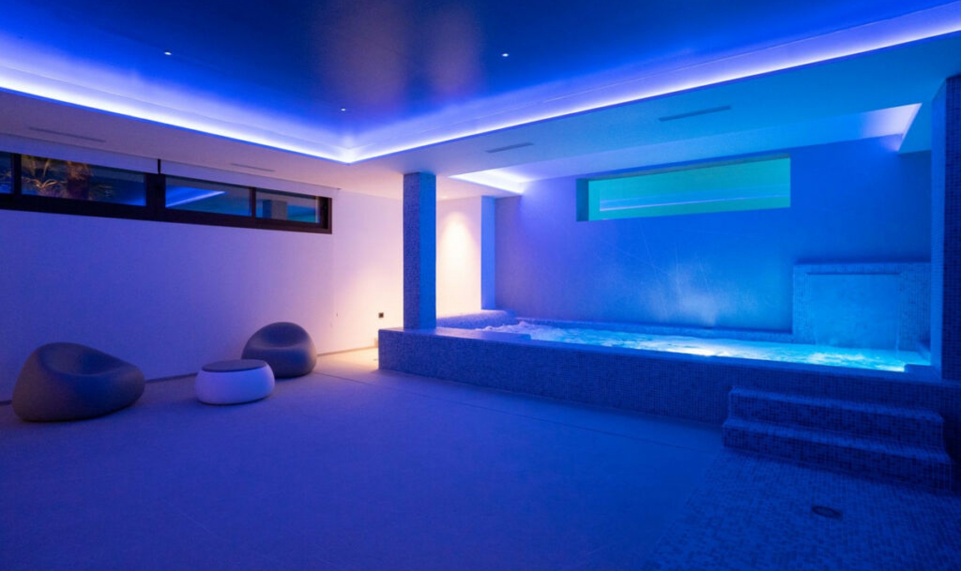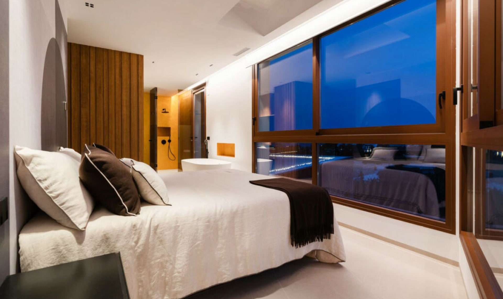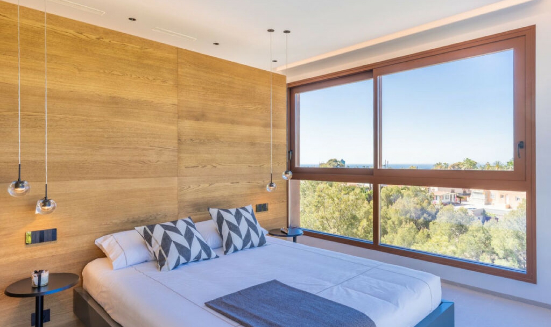 Villa Zen Infinity is a masterpiece of modern architecture, nestled between the sea and the mountains of the beautiful town of La Nucia, just minutes from the vibrant coastal city of Benidorm. From the moment you approach the property, you are drawn in by its sleek and clean design, with straight lines and high quality finishes that give it an impeccable appearance. Villa Zen Infinity features a spacious living room with a breathtaking panoramic view of the Mediterranean Sea. The large 3m tall glass windows with solar protection allow natural light and the sea breeze to flood the rooms, creating a relaxing and welcoming atmosphere. There is a large office and four full suites, each with a sea view and 2 of them with access to their own private terrace. The rooms have an elegant and contemporary design, with minimalist furniture and finishes in light tones that create a calm and serene atmosphere. All bedrooms are en-suite with private bathrooms and dressing rooms, guaranteeing a luxurious and comfortable experience. On the lower floor there is a large Spa, the heart of the villa. A space for complete relaxation and wellness, with a heated Jacuzzi-style swimming pool equipped with a waterfall, hydromassage benches and bubble loungers, as well as a large Finnish sauna and Turkish bath. There is also a large wine cellar and a lift with a stop at each level. The villa also has an outdoor infinity pool and barbecue area, allowing you to enjoy the outdoors and the kitchen at the same time. You will also be able to enjoy the sunsets in its spacious and carefully designed garden. The villa's garage, with capacity for 2 vehicles, is equipped with an electric car charger. The high insulation of the villa's façade, together with its SOUTH orientation and its 19 photovoltaic panels on the roof, allow the property to have an "A" Energy Rating, ideal for those who care about the environment, sustainability and savings. State-of-the-art home automation, underfloor heating and Airzone in every room are some of the many details that complete the comfort and quality of Villa Zen. Overall, Villa Zen Infinity is a unique property with a modern, elegant and sophisticated design, offering an unbeatable quality of life on the Costa Blanca.