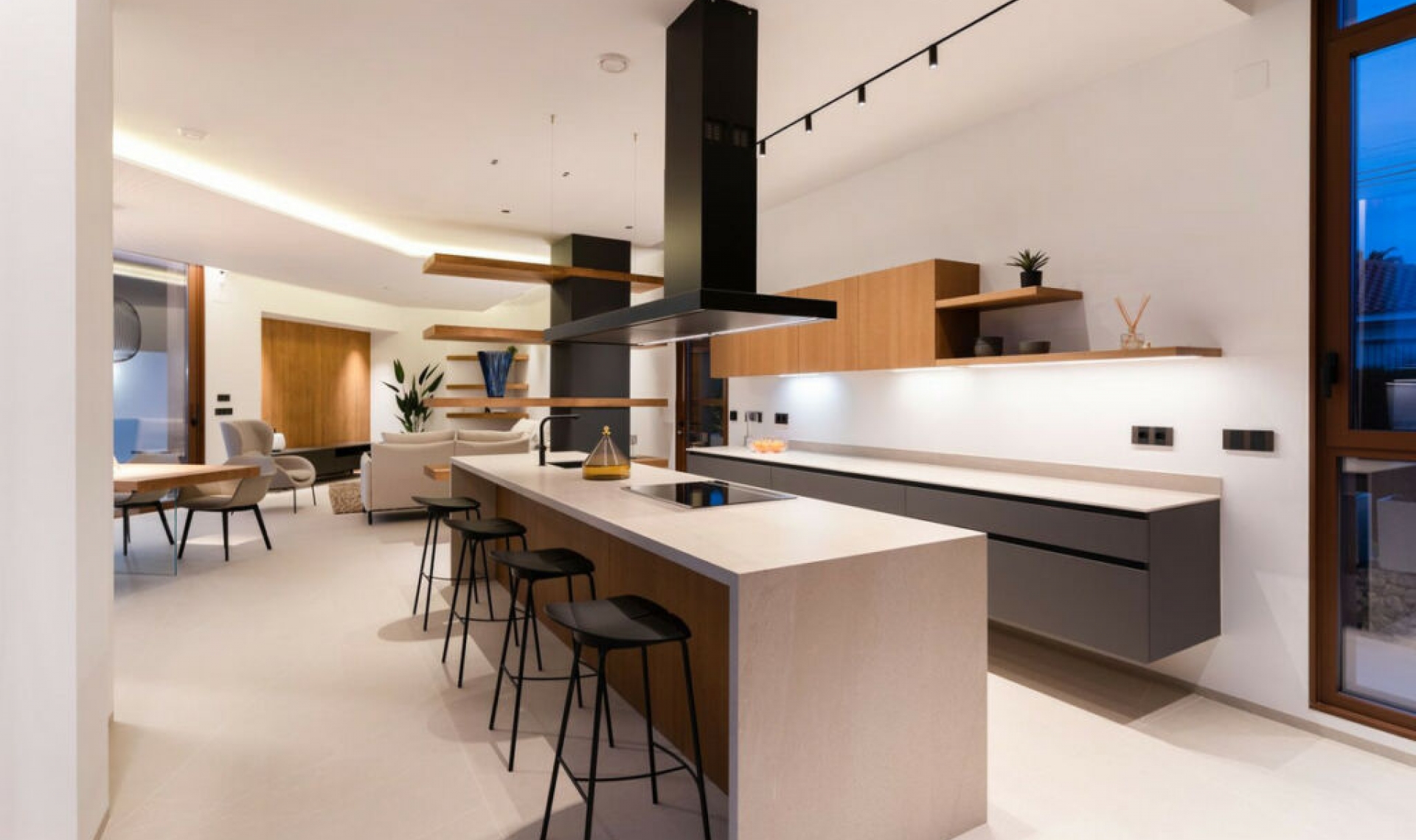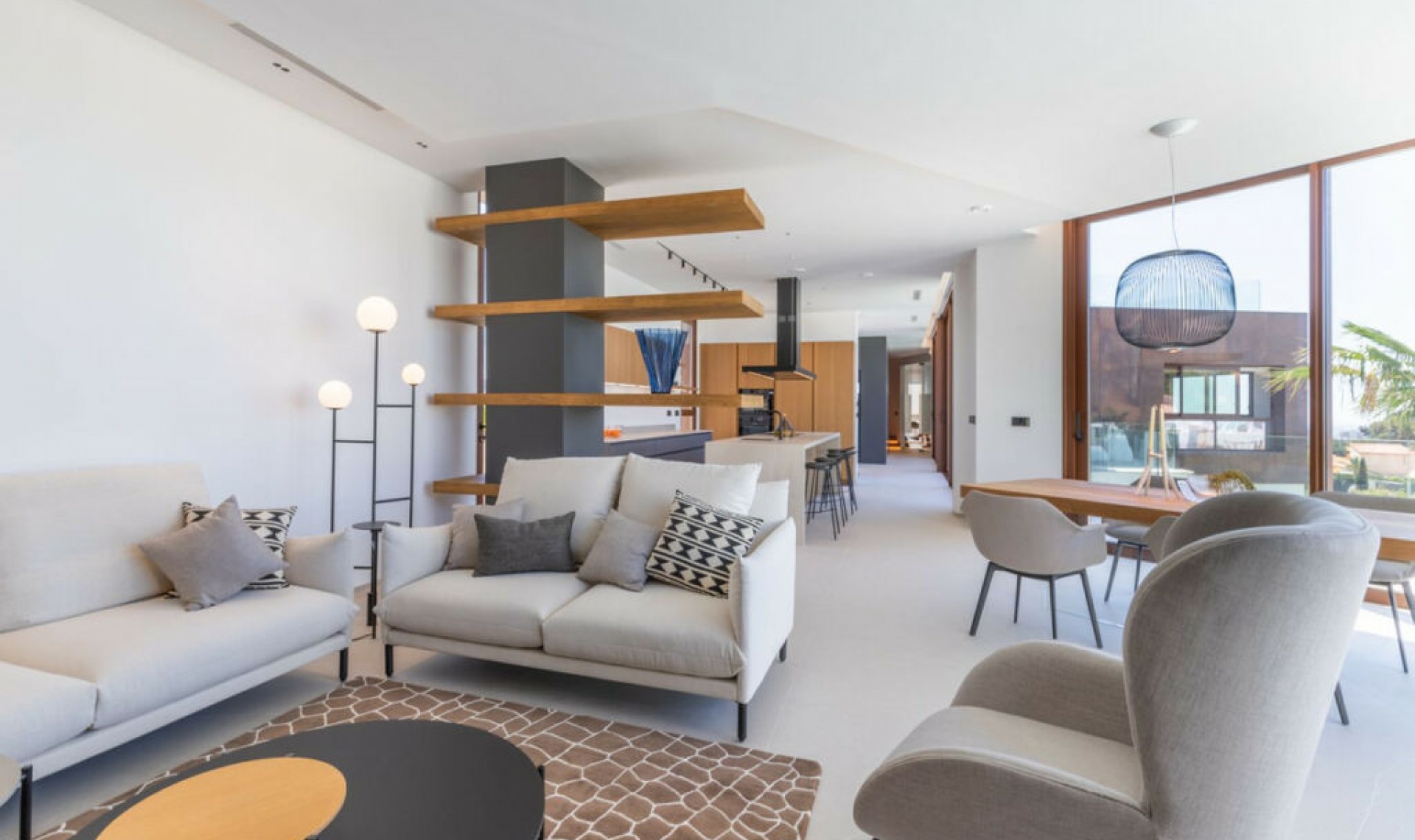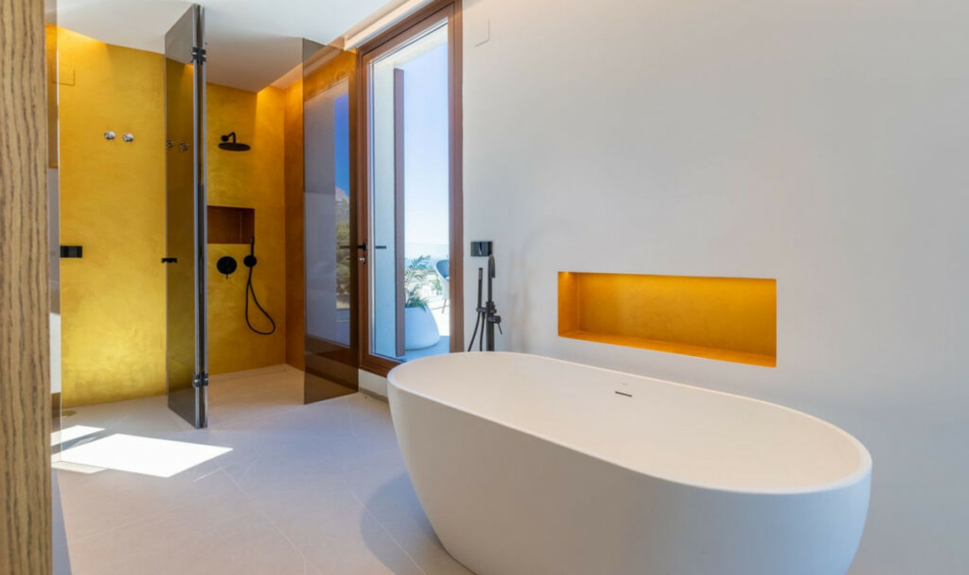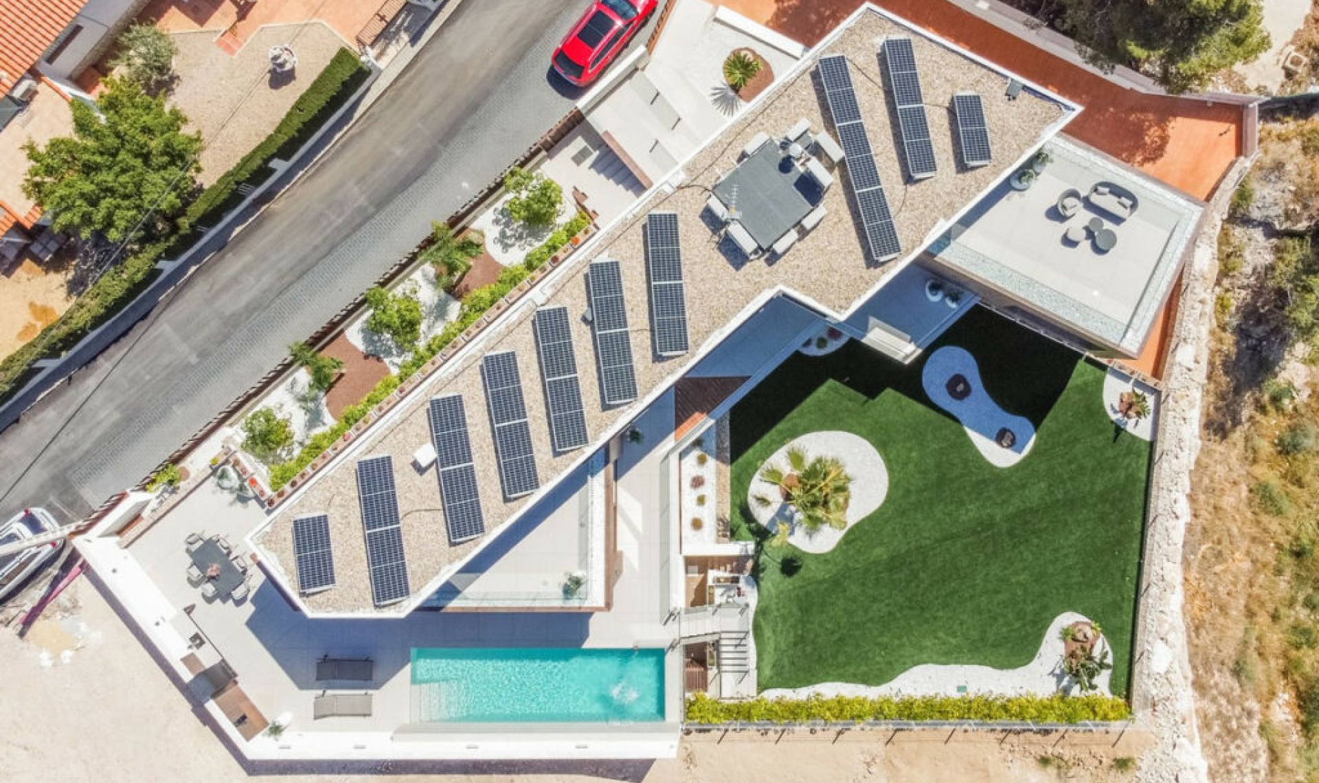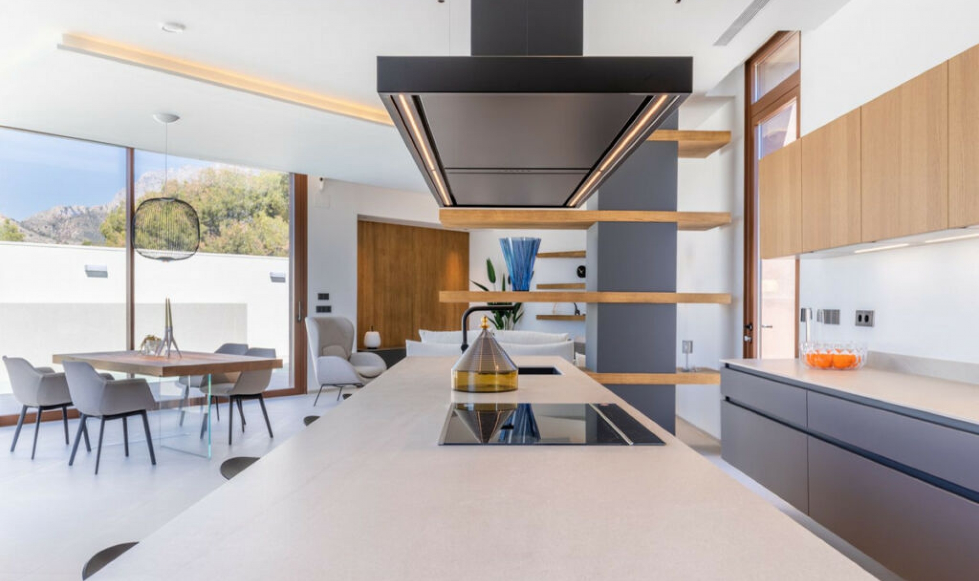 Villa Zen Infinity is a masterpiece of modern architecture, nestled between the sea and the mountains of the beautiful town of La Nucia, just minutes from the vibrant coastal city of Benidorm. From the moment you approach the property, you are drawn in by its sleek and clean design, with straight lines and high quality finishes that give it an impeccable appearance. Villa Zen Infinity features a spacious living room with a breathtaking panoramic view of the Mediterranean Sea. The large 3m tall glass windows with solar protection allow natural light and the sea breeze to flood the rooms, creating a relaxing and welcoming atmosphere. There is a large office and four full suites, each with a sea view and 2 of them with access to their own private terrace. The rooms have an elegant and contemporary design, with minimalist furniture and finishes in light tones that create a calm and serene atmosphere. All bedrooms are en-suite with private bathrooms and dressing rooms, guaranteeing a luxurious and comfortable experience. On the lower floor there is a large Spa, the heart of the villa. A space for complete relaxation and wellness, with a heated Jacuzzi-style swimming pool equipped with a waterfall, hydromassage benches and bubble loungers, as well as a large Finnish sauna and Turkish bath. There is also a large wine cellar and a lift with a stop at each level. The villa also has an outdoor infinity pool and barbecue area, allowing you to enjoy the outdoors and the kitchen at the same time. You will also be able to enjoy the sunsets in its spacious and carefully designed garden. The villa's garage, with capacity for 2 vehicles, is equipped with an electric car charger. The high insulation of the villa's façade, together with its SOUTH orientation and its 19 photovoltaic panels on the roof, allow the property to have an "A" Energy Rating, ideal for those who care about the environment, sustainability and savings. State-of-the-art home automation, underfloor heating and Airzone in every room are some of the many details that complete the comfort and quality of Villa Zen. Overall, Villa Zen Infinity is a unique property with a modern, elegant and sophisticated design, offering an unbeatable quality of life on the Costa Blanca.
