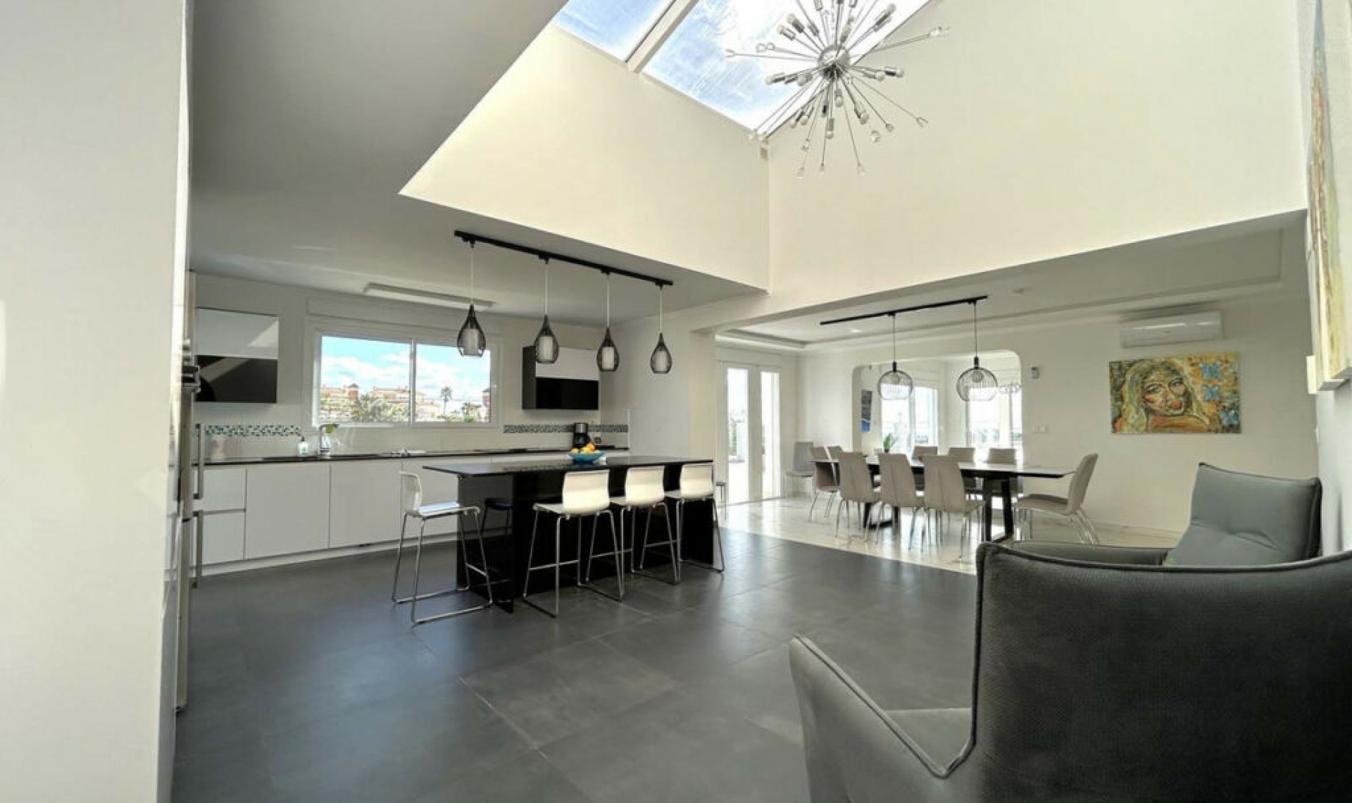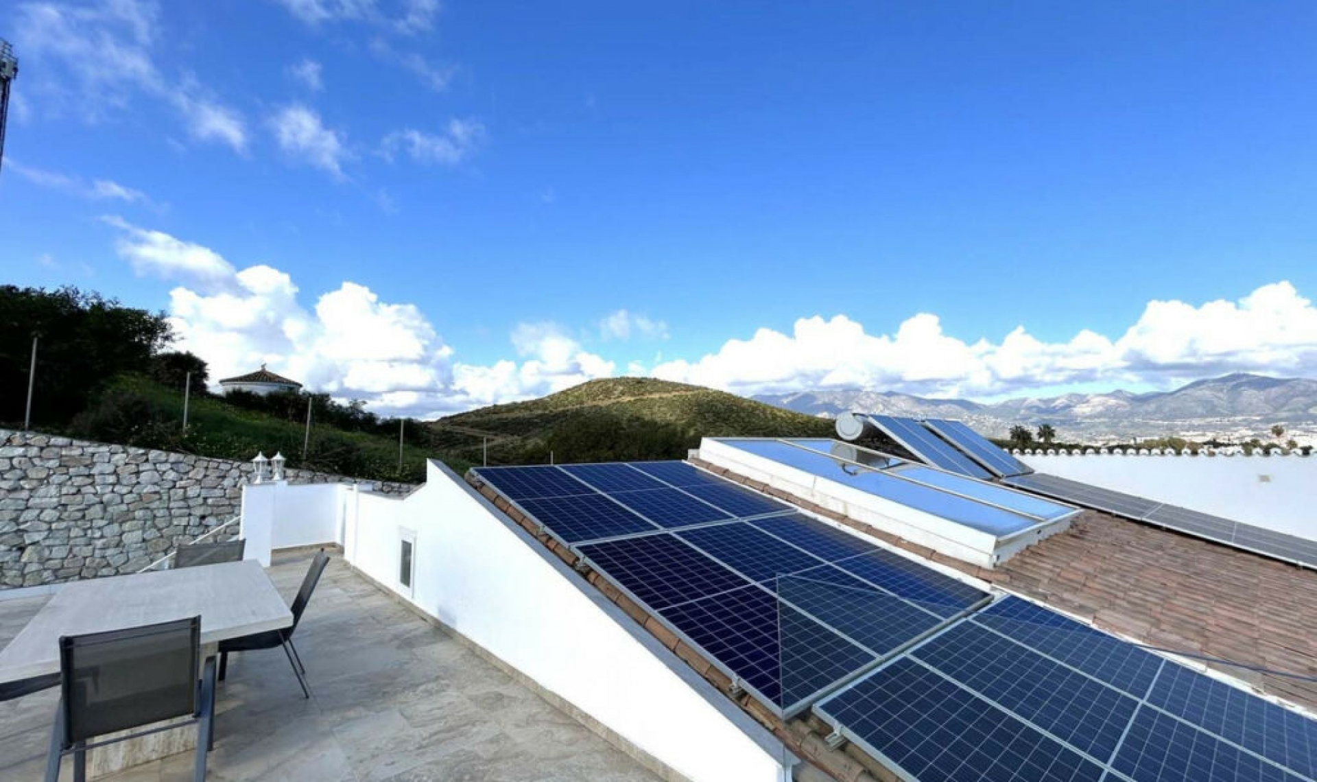 Located in the beautiful area of El Faro, Mijas, this stunning villa offers the perfect blend of luxury and convenience. Just minutes from shops, restaurants, and the beach, the villa provides a peaceful yet accessible retreat. With breathtaking views of the countryside and coastline, it offers a serene living experience. The spacious villa features six bedrooms, each with an ensuite bathroom, a fully equipped kitchen, and a separate guest apartment with its own kitchen, bedroom, bathroom, and living room. Outdoor spaces include large terraces, gardens, a solarium, a heated pool, and an outdoor dining and barbecue area. The villa also boasts air conditioning, underfloor heating, and solar panels for power and water heating. Additional amenities include a laundry room, covered garage for two vehicles, and exterior parking for up to three more cars. This exceptional property combines comfort, style, and sustainability in a prime location, offering an ideal home for year-round living or entertaining.