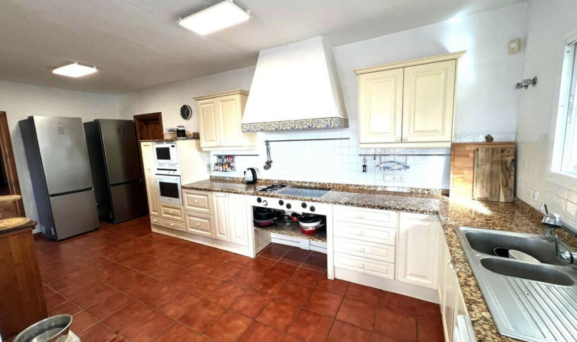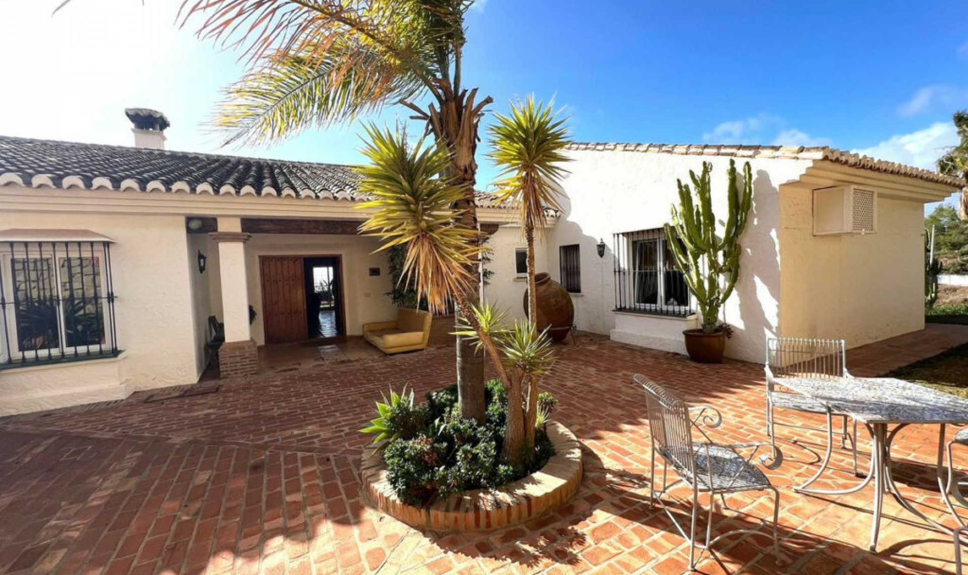 Traditional Andalusian villa on La Alqueria, Mijas Pueblo with LPO and tourist license this traditional villa has so much charm and Character, with many original features and giving a very warm and homely feeling from the minute you open the front door. Positioned towards the bottom of a cu-de sac there is no road noise at all. The drive will accept more than 10 cars with a garage for 1 car and a covered area for another. Entering the property there is a large hall area with exposed brickwork, to the left is a large farmhouse style kitchen with seating area, this leads to an extensive utility area and access to the garage. between the kitchen and dining room is a large hatchway. the dining area opens directly onto the outside terrace with beautiful sea views. From the dining area you enter the vast lounge, more than capable of seating a dozen people comfortably, the centre piece is a lovely fireplace. double patio doors open out onto the covered terrace. from the lounge there is an additional room which is now used as an office but would also make the third upstairs bedroom, Heading back into the hallway you find 2 large double bedrooms, one with dressing area, a separate toilet and family bathroom. the outside dining area is extensive with wonderful views down to the coast, there is also steps down to the pool area. Downstairs to the lower level you find a separate apartment with lockable door to the upstairs. there are 2 further bedrooms, bathroom, kitchen and lounge diner. This can be rented independently from the upstairs living accommodation. Outside there is a large covered terrace with direct access to the pool and gardens. This is a large house with many possibilities, unspoilt with over modernisation, ideal for a family home, multi occupancy villa or holiday rental investment. Detached Villa, Mijas, Costa del Sol. 6 Bedrooms, 3 Bathrooms, Built 619 m², Terrace 200 m², Garden/Plot 2995 m². Setting : Country, Village, Mountain Pueblo. Orientation : South West. Condition : Good. Pool : Private. Climate Control : Air Conditioning, Fireplace. Views : Sea, Mountain, Country, Panoramic, Garden, Pool. Features : Covered Terrace, Fitted Wardrobes, Near Transport, Private Terrace, Guest Apartment, Storage Room, Utility Room, Double Glazing. Furniture : Part Furnished. Kitchen : Fully Fitted. Garden : Private. Security : Alarm System. Parking : Garage, Open. Utilities : Electricity, Photovoltaic solar panels. Category : Holiday Homes, Investment.