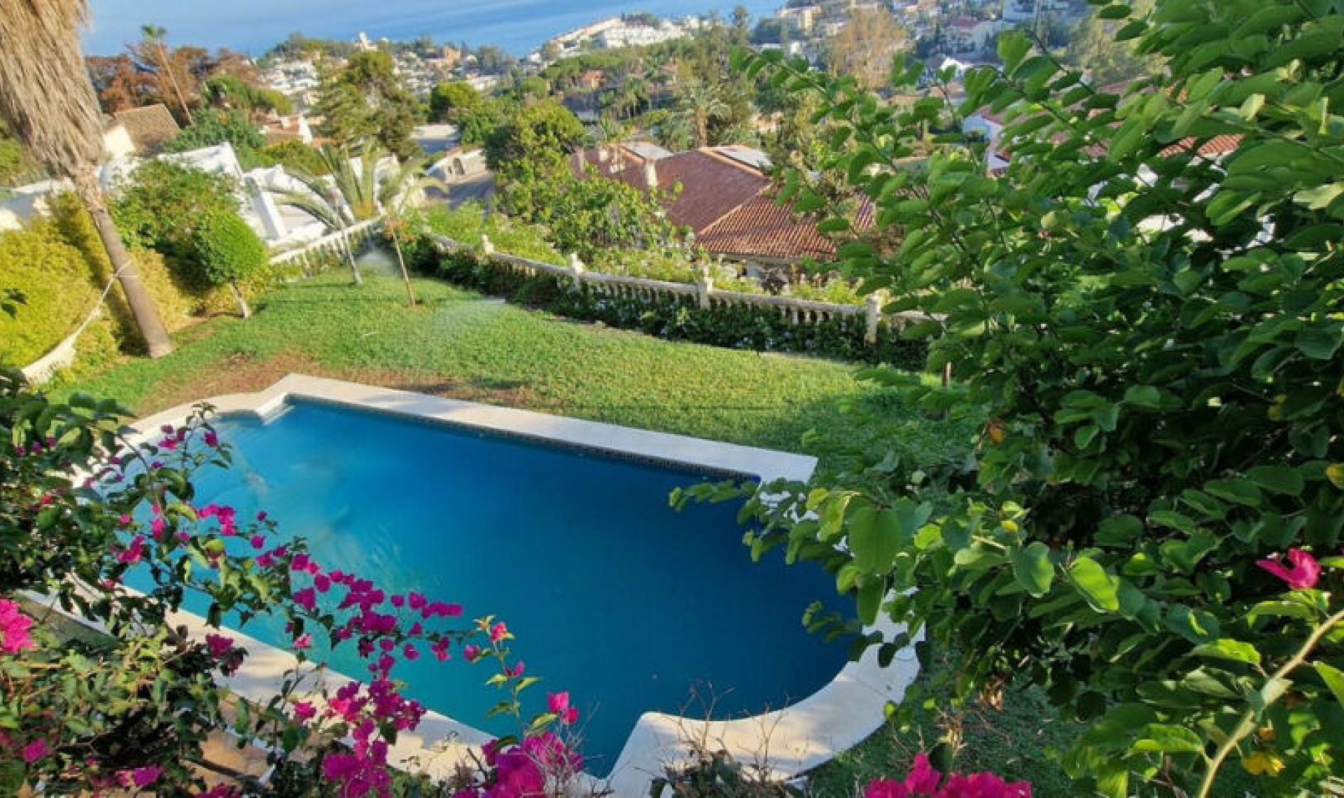 Detached Villa, Málaga East, Costa del Sol. 7 Bedrooms, 4 Bathrooms, Built 354 m², Garden/Plot 689 m². Setting : Close To Town. Condition : Excellent. Pool : Private. Views : Sea. Features : Fitted Wardrobes, Near Transport, Private Terrace, Double Glazing. Kitchen : Fully Fitted. Garden : Private. Parking : More Than One, Private. Category : Investment, Reduced.