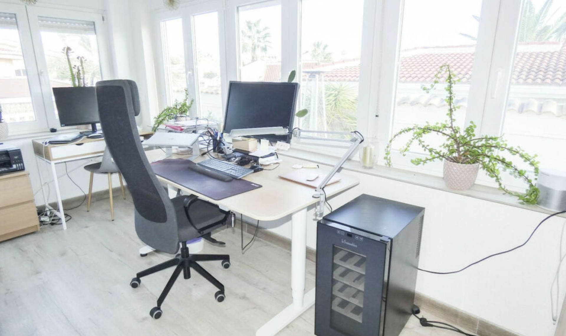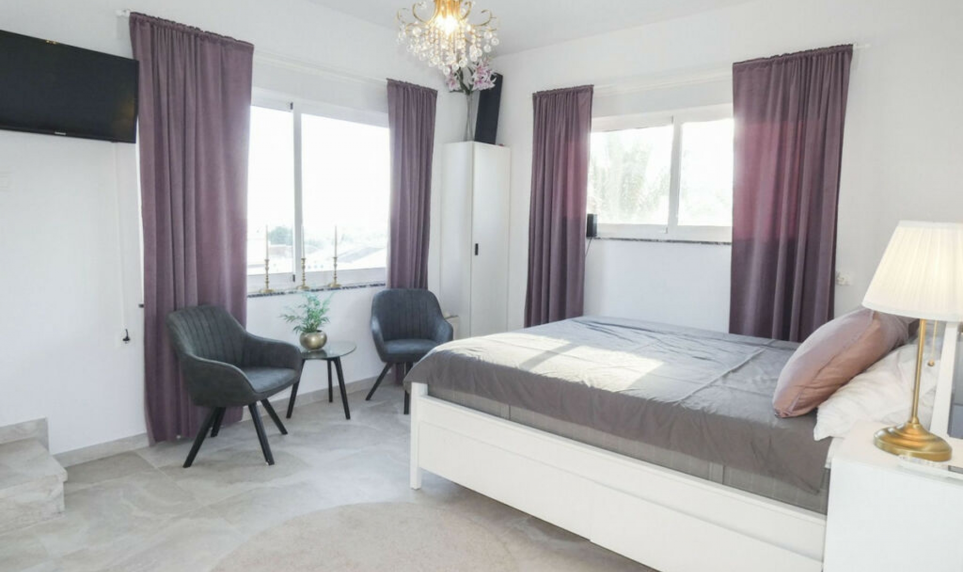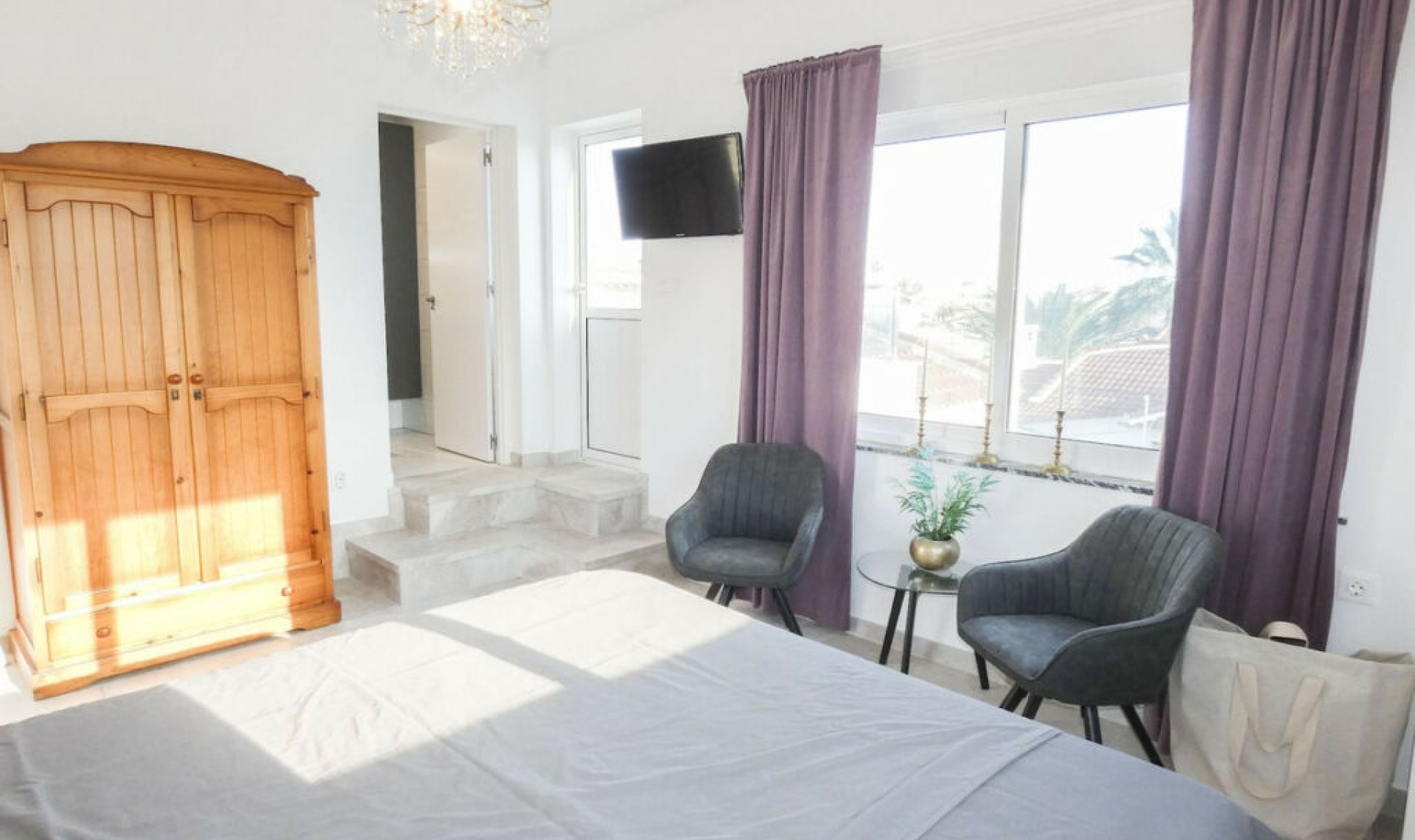Do you want a villa with everything extra? Then you have found your home here! A large plot with a thoughtful layout. Here, plants and flowers thrive alongside mandarins, oranges, kiwis, limes, passion fruits, and mangos. There are planting boxes for vegetables and herbs at the back, along with two storage sheds. A large saltwater pool leads you to an outdoor kitchen (with refrigerator/freezer and dishwasher) and bar, as well as spacious areas for dining furniture, a lounge section, and sun loungers. The house also opens up with a spacious and modern kitchen, a TV room, a large bathroom with a shower, and four bedrooms, including a master bedroom with a walk-in closet and an ensuite bathroom with a shower. There is underfloor heating in the ensuite bathroom and the kitchen. Upstairs, you will find an additional apartment with a large bedroom, a bathroom with a shower, and a balcony with a fantastic view of both the salt lakes and the sea. Integrated air conditioning and two separate AC units in one of the bedrooms (currently an office) and in the apartment on the upper floor. There is parking for two cars on the property with an automatic gate. Automated irrigation for pots and trees. Within walking distance, there are restaurants, bars, shopping, a gym, and a very good new bodega, as well as Marquesa Golf Course two kilometers from the house. Welcome home!