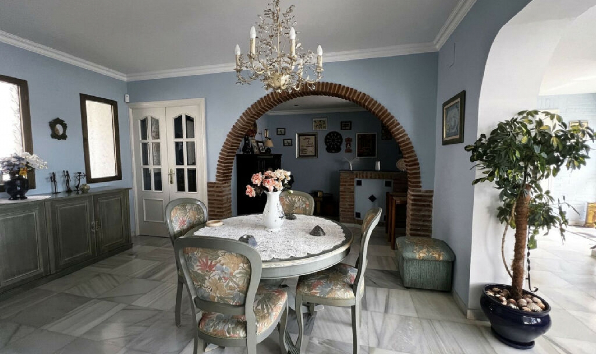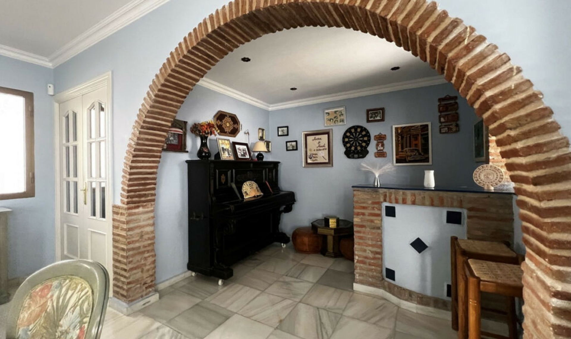 This beautiful Andalusian-style villa is located in the prestigious La Capellanía Urbanization, near the beach and with impressive sea views. The house is distributed over two floors, is very bright and faces south. It has covered parking for two vehicles and a storage room for tools. Upon entering, you enter a spacious living room with fireplace and dining room, as well as a relaxation area. From this level, you reach a large patio that surrounds the house, with a barbecue area and private pool. The kitchen is fully equipped; On this floor we also have a bedroom, a full bathroom and a large hall. On the upper floor there are three bedrooms. The master bedroom is spacious, with a dressing room and private bathroom. The other two bedrooms share a bathroom. Also on this floor, there is a large terrace with sea views. The urbanization is located 5 minutes from the highway, 20 minutes from Malaga International Airport and 40 minutes from Puerto Banús. There are shopping areas nearby, as well as the British School and the Torrequebrada International School, both less than 15 minutes away. The villa also has a well-kept garden and a variety of native plants that enhance its Mediterranean charm. In addition, it offers the possibility of enjoying tranquility and privacy, surrounded by nature and with the comfort of having everything you need just a few minutes away. With its traditional architecture and modern amenities, this property is the ideal place to enjoy life on the Costa del Sol, either as a permanent residence or as a holiday retreat. Welcome to paradise at La Capellanía!