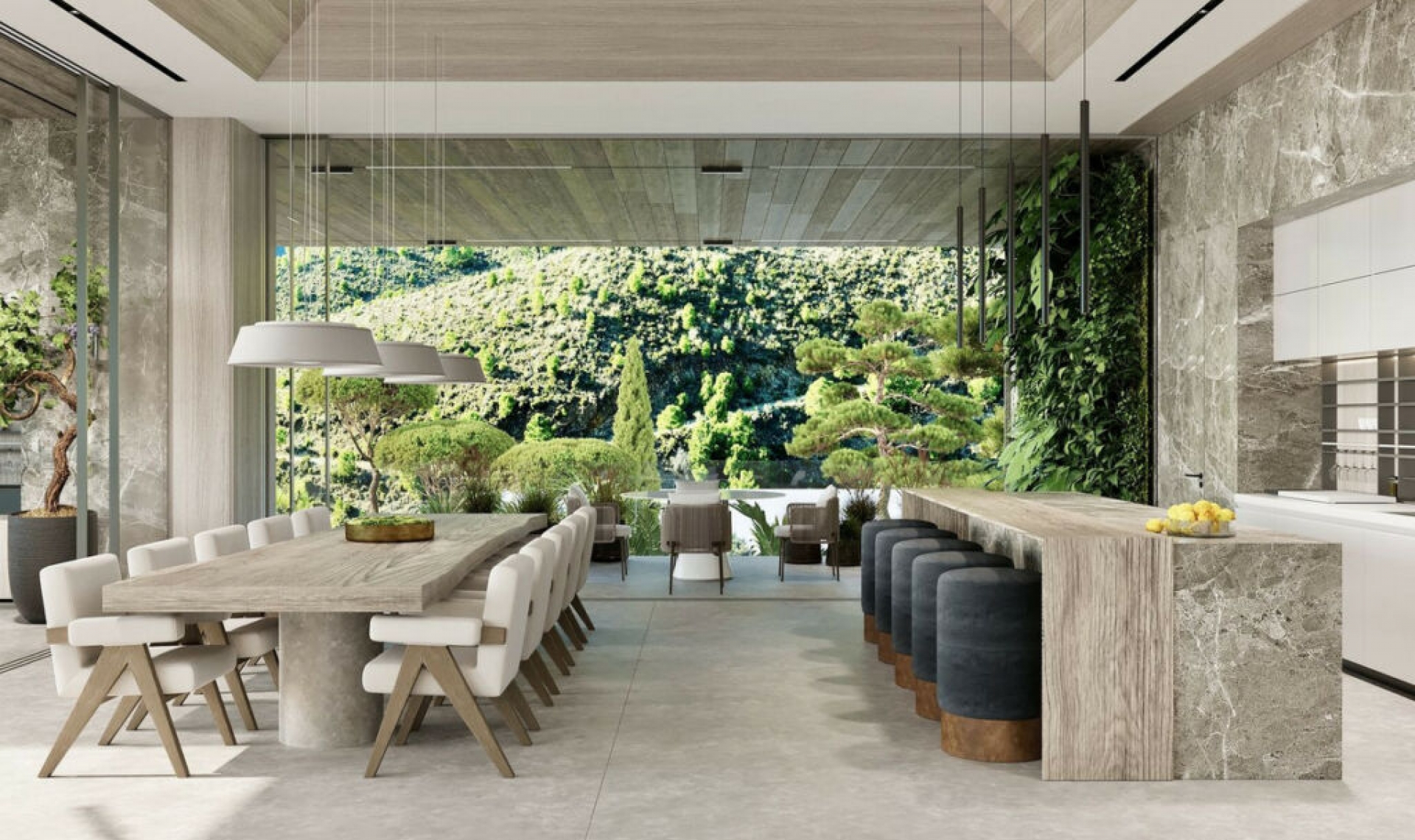 This incredible project is set on a 11․178 sqm plot with absolutely breathtaking views. It's a truly unique opportunity, sold with plans and an active building license for a stunning 2․443 sqm villa with 1․998 interior space. The inspiration for the design was the plot's breathtaking location in a valley flanked by steep hills on either side, with uninterrupted views of the Mediterranean sea. The villa is built into the hill side, as if it almost becomes part of the environment, rather than just sitting on top of it. All the windows disappear into the walls, whereby nature is brought into the living spaces using water features, living walls, and natural materials. The design is inspired by the natural vegetation and used colors and materials that perfectly matched the decor of the villa. The valley is home to a wealth of naturally occurring dark stone, which has been incorporated into many of the wall finishes. This is a home that is truly integrated with its natural surroundings—it's absolutely amazing! The finished villa will be distributed over three floors, with eight bedrooms (of which three are private suites with their own living and kitchen areas), 13 bathrooms (eight of which are part of ensuite, and two outdoor with outdoor showers), an outdoor pool and jacuzzi, an indoor pool and jacuzzi, a sauna, steam room, salon and medi-spa, and a gym! And there's still more! A bowling alley, cinema, beverage cellar, game room, library, chef's kitchen, show kitchen, living room, dining room, informal dining room, two English patios, a six-car garage, a three-car carport, a dedicated laundry room, a machine room, and a smart home equipped with audio throughout indoor/outdoor spaces! Plus, photovoltaic-powered water heating, underfloor heating, a rain catch system for irrigation, water recycling, and so much more! Further renders and plans are available upon request.