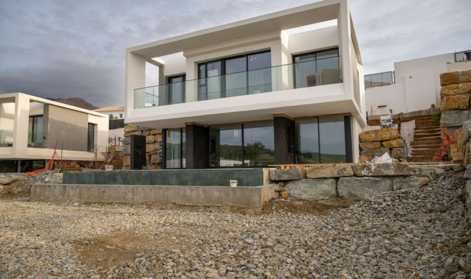 Valle Romano Green is an exclusive development comprising 8 modern villas with golf and sea views, complete with private garden and swimming pool. They are located within a short drive to the beach and all the amenities of the famous Valle Romano Golf Resort, on the outskirts of Estepona on the Costa del Sol. Currently under construction is this beautiful 4 bedroom villa for sale in Valle Romano Green Estepona. This beautiful project offers a selection of 8 exclusive southwest facing villas overlooking the golf course and the Mediterranean Sea. They are distributed over 3 levels, with 3 bedrooms on the upper floor, and 1 bedroom on the lower floor, plus a magnificent basement of 40 m2 with many possibilities for adaptation, bedroom, cinema room, games room, as well as having private terraces offering incredible views. Each villa sits on individual plots of almost 500 m2 and has more than 142 m2 built. This beautiful villa is characterised by its luminosity, large sunny terraces and a private garden with a magnificent saline water swimming pool. This complex is located in Valle Romano Golf Resort, right in the heart of the New Golden Mile. Estepona and the beach are only 5 minutes away, while Marbella and Puerto Banús are only an additional 15 minutes away. These villas are surrounded by a wide variety of amenities and are easily accessible from anywhere on the Costa del Sol. Malaga and Gibraltar airports are less than an hour away.