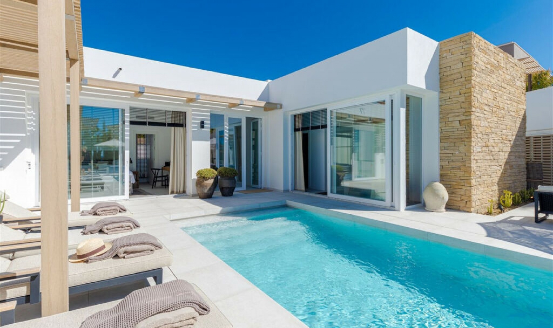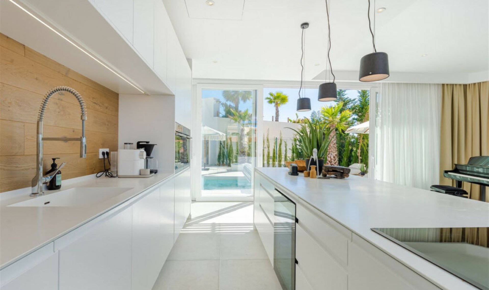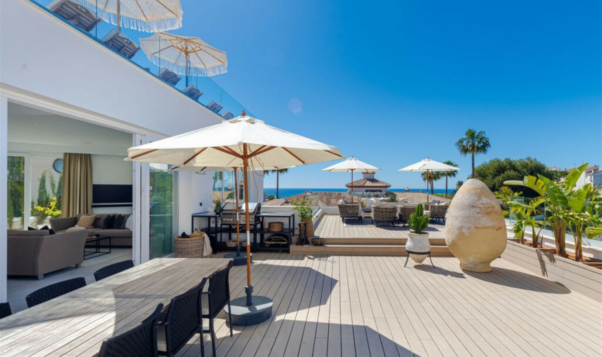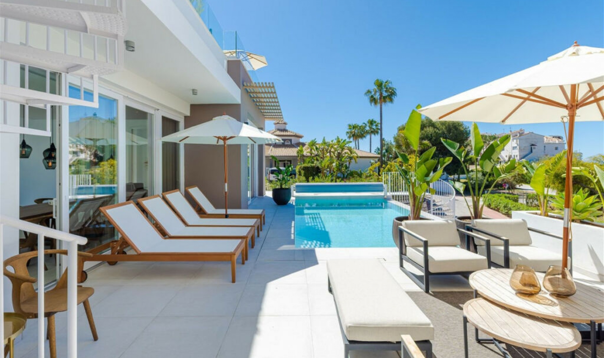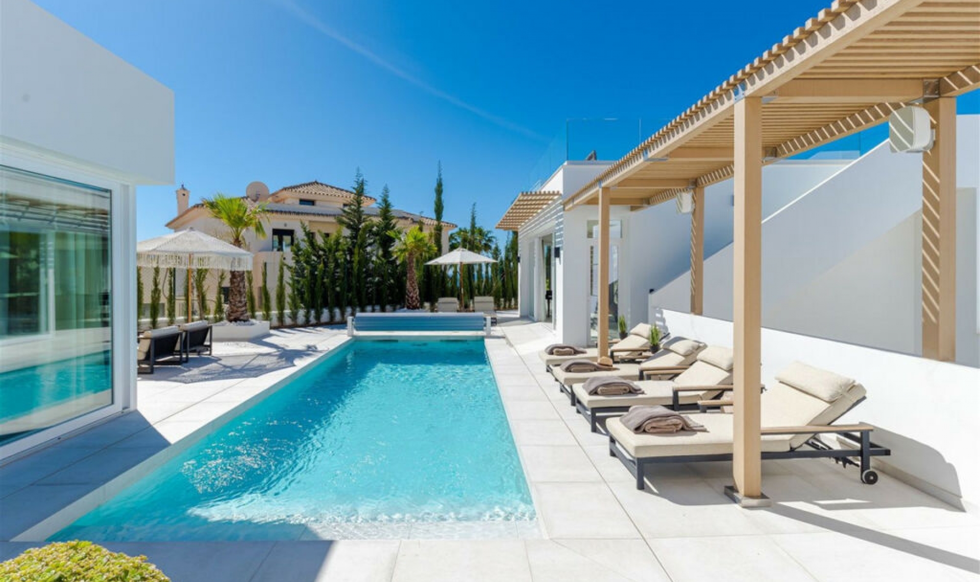 9 BEDROOM SOUTH-WEST FACING LUXURIOUS VILLAS WITH 2 HEATED SWIMMING POOLS, CINEMA ROOM, GYM AND WINE BODEGA CLOSE TO THE BEACH. This unique contemporary 9-bedroom property consists of TWO SEPARATE UNITS which are adjacent to each other on two adjoining plots. The properties could easily be joined together by installation of a lift or staircase if desired. Situated in a luxury, secure gated community, just 1․2 km (a 15 minute walk) from the beach, shops and restaurants in Riviera del Sol and Calahonda. This new development of 12 low-rise villas has been constructed in a contemporary style using very high-end materials. With a combined build size of 476 m2 these two properties consist of two lounges, two fully-equipped open-plan modern kitchens, two guest bathrooms and two large laundry rooms. All nine bedrooms (three in one property and six in the other) have ample fitted wardrobe space and ensuite bathrooms with underfloor heating. Nine of the bathrooms have walk-in showers, sink, and toilet and 1 bathroom has bathtub and shower. Most of the bedrooms have a semi-private outdoor space and are also equipped with a flat-screen TV. The owner has recently installed a gym with state-of-the-art equipment, a comfortable home cinema and a wine bodega with temperature control system. There is a Sonos home sound system providing excellent quality sound both inside and outside of the properties. High ceilings and large heat-resistant windows make the properties feel very spacious and bright allowing for the seamless integration of indoor and outdoor living spaces. Along with the two 8 x 4 metre heated saltwater swimming pools (with counter-current and electric cover) are a generous 89 m2 of terrace/porch areas and 2 huge roof solariums of 76 m2 and 141 m2 with glass balustrade and impressive 360 degree views over the sea and coastline. The total plot size is 977 m2. The current owners' interior design skills have transformed this property into a stunning and inviting space, perfect for daily living, as a holiday home or high rental-income property (currently rents for 12․000 Euros per week in high season). All interior and exterior designer furnishings are included in the asking price. There is gated covered parking for four vehicles and an additional two open parking spaces directly in front of the properties. Both properties are equipped throughout with air zone air-conditioning to ensure comfortable air quality and temperatures all year around, 1000 litre water reserve, water treatment system, UV resistant security glass, alarm system, safe, ample fitted wardrobe space, heated floors in ensuite bathrooms, high quality porcelain stoneware floor tiles (interior and exterior), 2 gas barbecues and video entry phone. Riviera del Sol sits on the Costa del Sol in Southern Spain midway between Marbella and Fuengirola. It is situated only a few minutes from the AP7 motorway access and the A7 national coastal road (formerly the N-340), allowing easy access to Malaga airport in 25 minutes and Marbella in 15 minutes. Riviera del Sol is a mixed residential and holiday area offering all the facilities and services needed to enjoy life comfortably. MUST BE SEEN TO APPRECIATE THE EXCELLENT QUALITIES AND POTENTIAL! VILLA 6 - 190M2 BUILD, 40M2 TERRACES, 76M2 SOLARIUM, 446M2 PLOT HALLWAY 3 BEDROOMS + 3 ENSUITE BATHROOMS GUEST BATHROOM UTILITY ROOM LOUNGE + OPEN PLAN KITCHEN (BUILT APART FROM BEDROOMS) 8 X 4 SWIMMING POOL SHARED COVERED PARKING FOR 4 CARS 1 OPEN PARKING SPACE VILLA 7 - 286M2 BUILD, 49M2 TERRACES, 141M2 SOLARIUM, 531M2 PLOT 6 BEDROOMS + 6 ENSUITE BATHROOMS (2 BEDROOMS ON LOWER FLOOR HAVE SEPARATE LOCK UP ENTRANCES) GUEST TOILET LOUNGE + OPEN PLAN KITCHEN UTILITY ROOM GYM WINE BODEGA CINEMA ROOM 8 X 4 SWIMMING POOL SHARED COVERED PARKING FOR 4 CARS 1 OPEN PARKING SPACE