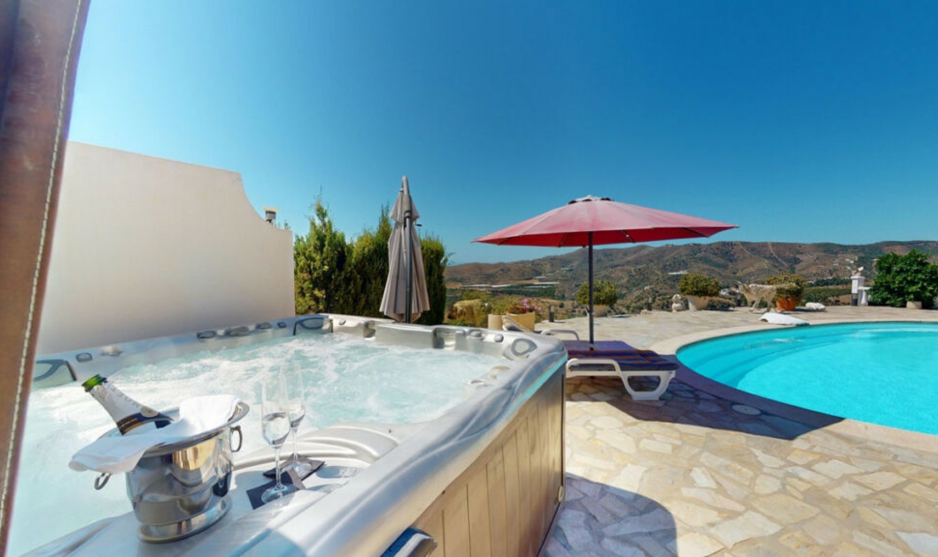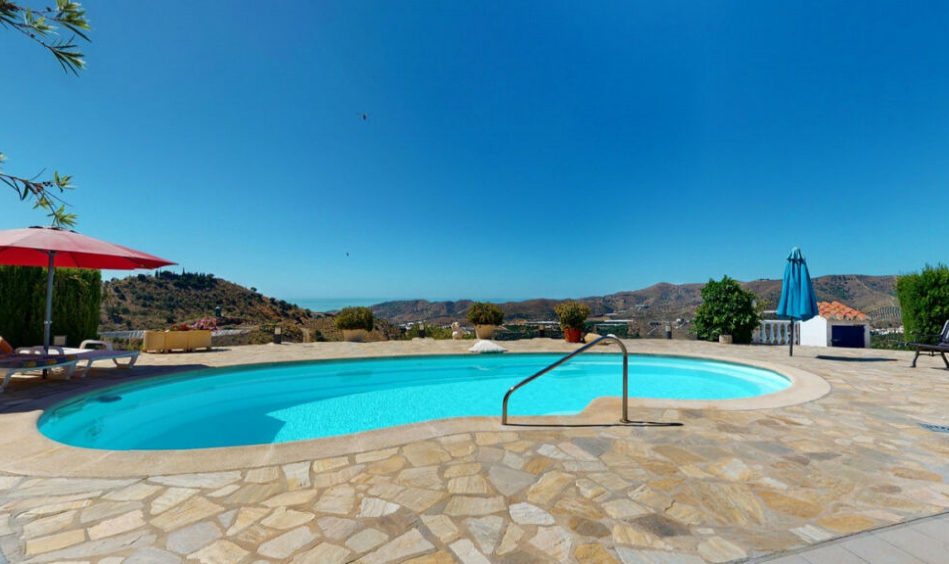 This exceptional, spacious U-shaped villa is located in the picturesque area of Iznate and offers two separate living units, each fully equipped. The villa spans two floors and features a total of seven bedrooms and six bathrooms. Each unit includes a functional kitchen and a spacious living room. The property boasts luxurious amenities, including air conditioning, central heating, and a cozy fireplace. An idyllic patio in the center of the villa invites relaxation and adds a special charm to the estate. The basement houses a generous area with an underground garage, a storage room, additional living spaces, including an extra bedroom, a living room, and a bathroom. The outdoor area leaves nothing to be desired: a large pool and a Jacuzzi provide refreshing relaxation, while the well-maintained garden and an additional garage for one car offer further convenience. The panoramic views of the sea, surrounding mountains, and vast landscape are simply breathtaking and promise restful hours in a peaceful setting. Despite the tranquil seclusion, the villa is easily accessible and offers excellent connectivity. This villa is a true dream for those who wish to enjoy life in luxurious surroundings amidst nature. We are pleased to be able to present this dream property to you soon, either personally or via virtual viewing. Because this world is unique - just like our Axarquía. In Andalusia. On the Costa del Sol. Here, on the sunny side of life...