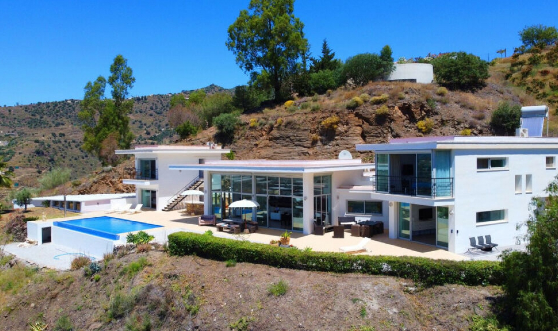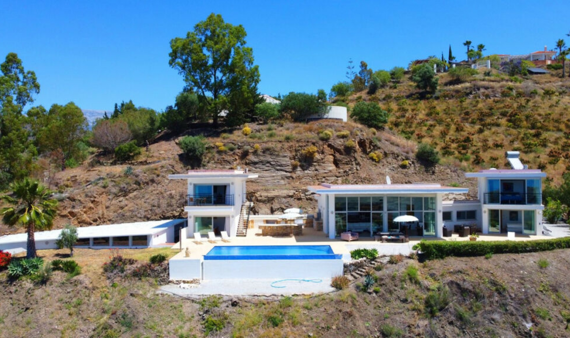 Prestigious Seaview Estate in Sayalonga – A Masterpiece of Luxury and Serenity Step into a world of unparalleled elegance with this breathtaking estate in the enchanting town of Sayalonga. Perched on an expansive plot, this south-facing sanctuary offers panoramic sea views, world-class amenities, and an atmosphere of pure tranquility. The Main Residence: Sophisticated Comfort & Timeless Design: • 2 Exquisite Bedrooms – Spacious, sunlit sanctuaries designed for rest and relaxation. • 2 Designer Bathrooms – Featuring premium fixtures and finishes for a spa-like experience. • Grand Living Room – A refined space with floor-to-ceiling views, perfect for both intimate moments and lavish entertaining. • Gourmet Kitchen – A chef's dream, equipped with state-of-the-art appliances and an expansive layout for culinary artistry. • Storeroom – Thoughtfully designed for ample storage and effortless organization. Exclusive Guest & Leisure Spaces: • Two Private Guest Apartments – Each featuring a bedroom and en-suite bathroom, ensuring comfort and privacy for visitors or extended family. • Charming Studio – Ideal for an artist's retreat, home office, or additional guest accommodations. Unparalleled Outdoor Living: • Infinity Pool – A spectacular horizon-edge pool that merges seamlessly with the Mediterranean backdrop, offering unrivaled sunset views. • Outdoor Kitchen & Dining Area – Fully equipped for al fresco entertaining, where you can enjoy exquisite meals beneath the stars. • Manicured Gardens – A vast landscaped paradise featuring vibrant flora, creating a serene oasis of beauty and relaxation. • Spacious Garage – Secure and spacious parking for multiple vehicles, adding convenience and exclusivity. Located just 400 meters from the main road, with a fully concreted driveway, accessibility meets seclusion in this extraordinary retreat. This luxury estate is more than a home—it's a statement of refined living, offering an unmatched blend of privacy, elegance, and natural beauty. Own a Piece of Paradise – Schedule Your Private Viewing Today.