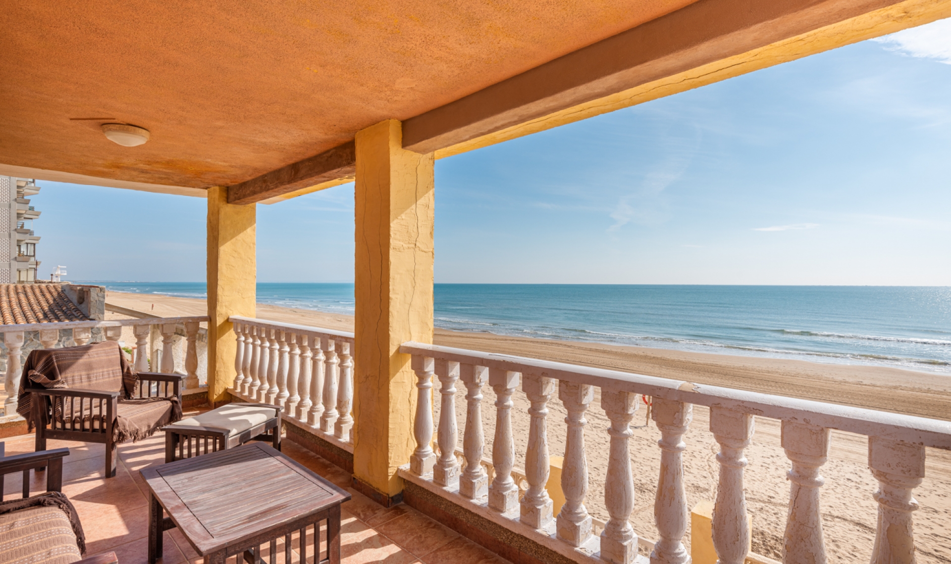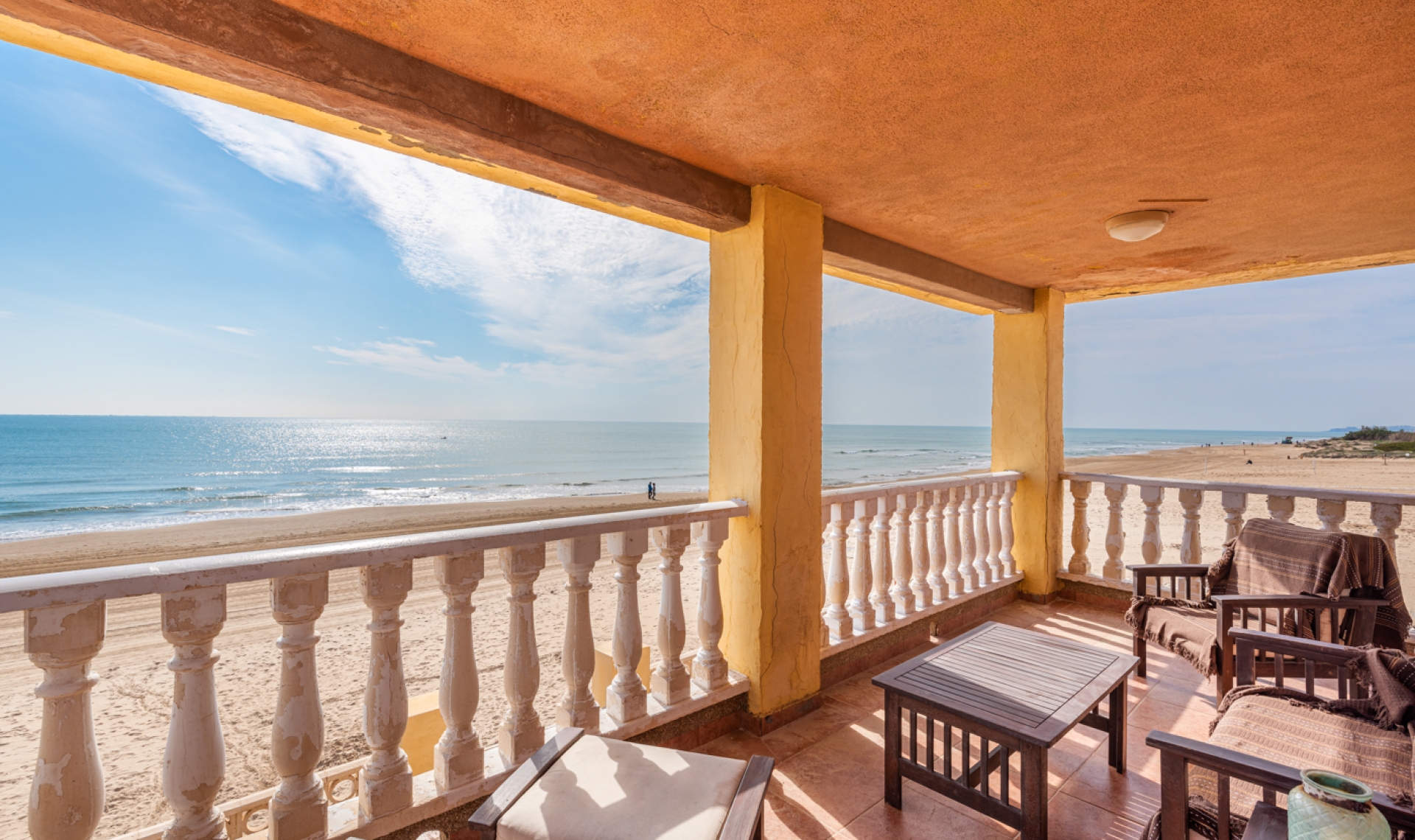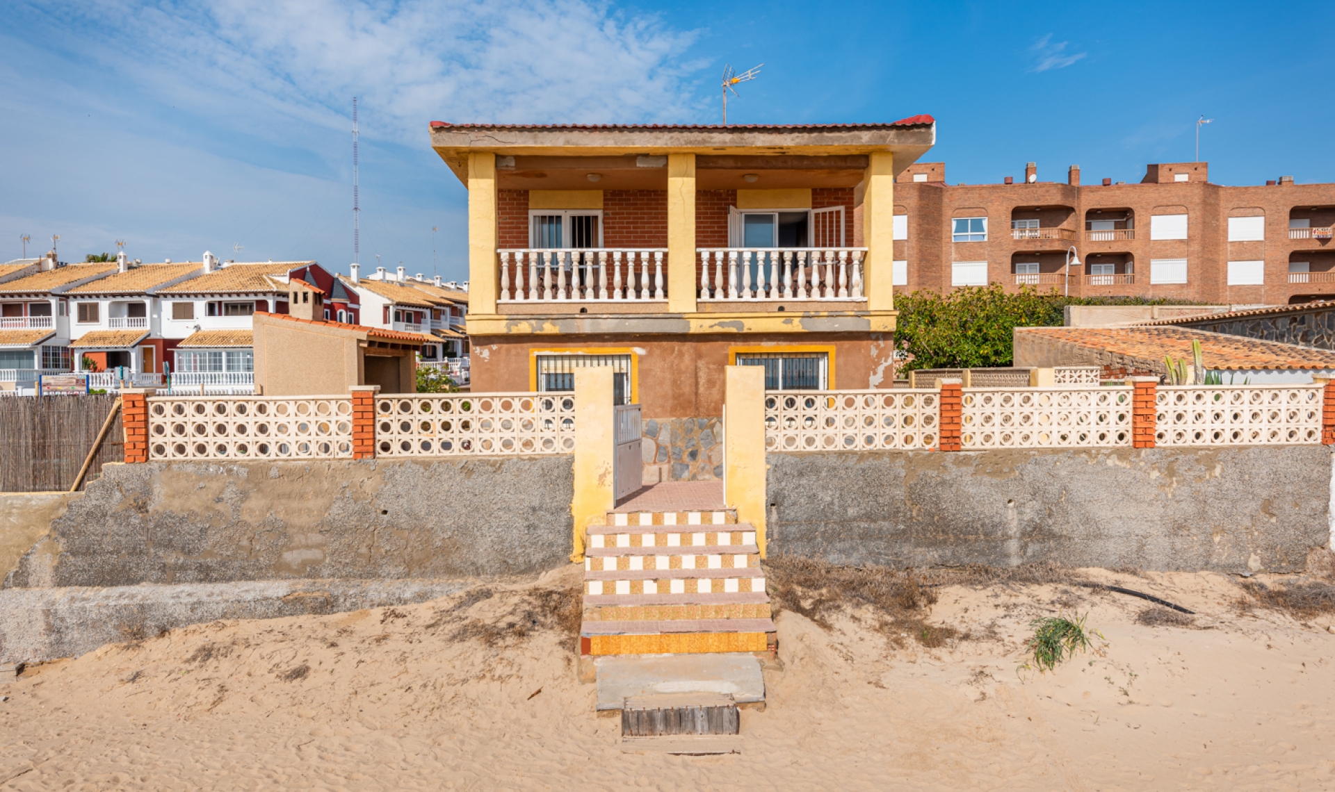 Unikátní nabídka: 7‑ložnicová vila na pláži Vila je postavena na pozemku o rozloze 467 m² a má obytnou plochu 266 m², rozmístěnu ve dvou podlažích. Skládá se ze sedmi ložnic, tří koupelen (jedna en-suite), otevřené kuchyně, obývacího/jídelního pokoje, kryté terasy, garáže, zahrady s privátním přímým přístupem na pláž a grilovací zóny. Vila je k okamžitému nastěhování, nabízí ale i skvělou příležitost k renovaci a vytvoření luxusní moderní nemovitosti v jedné z nejlepších lokalit Costa Blanca. Při vstupu do vily se ocitnete v obývacím/jídelním prostoru. Dále je zde otevřená kuchyň s přímým vstupem na zadní část zahrady. Ze salónu vede schodiště do prvního patra, kde se nacházejí dvě ložnice (jedna s vlastní koupelnou) s přístupem na krytou terasu s úchvatným výhledem na moře. Na chodbě je dalších pět ložnic a další koupelna. V garáži (místo pro více vozidel) je navíc další koupelna a technická místnost. Vila je plně zařízená, má dvojitá okna a sítě proti hmyzu. Venkovní prostor Nachází se zde dlážděná zahrada s grilovací zónou. Ze zahrady je privátní přístup na pláž. Lokalita Guardamar je útulné a oblíbené místo na Costa Blanca s nádhernou 11 km dlouhou písečnou pláží, dunami a parkem, který se vine městem. Najdete zde obchody, supermarkety, restaurace, kavárny, bary, lékárny, banky, zdravotnické a zubní služby. Dále zde jsou marina, tenisová hřiště, fotbalové hřiště, fitness centra a další. V blízkosti jsou golfové hřiště La Marquesa a vodní park Rojales. Torrevieja leží asi 10 km daleko a nabízí bohaté volnočasové možnosti a nákupní centra. Pláže Úžasná pláž „Torrelamata“ v La Mata je vedle Guardamaru – nádherné pláže zdá se táhnou do nekonečna. Klima Guardamar je ideální k trvalému pobytu a nádherné místo pro léto. Léto je vždy slunečné a teplé, zimy mírné, průměrná teplota je kolem 20 °C. Guardamar leží mezi solnými pánvemi Santa Pola a Torrevieja, které čistí vzduch a vytvářejí zdravé klima. Toto klima má zvlášť pozitivní vliv na lidi s astmatem, alergiemi, revmatismem a kožními chorobami. Podle lékařské vědy patří tato oblast díky solným jezerům mezi nejzdravější místa na světě. Nákupy V Guardamaru najdete mnoho obchodů a supermarketů. Také v Torrevieja (cca 10 minut autem) se nachází obchodní centrum Habaneras a Carrefour a rušná nákupní ulice. 15 km daleko je velké nákupní centrum Zenia Boulevard s obchody jako Zara, Massimo Dutti, H&M, Stradivarius, Oysho, Mango, Primark, Pull & Bear, Decathlon, Guess, Kiko, Druni, Rituals, Swarovski, Leroy Merlin a další. Golf Ve vzdálenosti 7 km v Ciudad Quesada najdete známé hřiště La Marquesa Golf & Country Club. V okruhu 20 km jsou další golfová hřiště: Las Colinas, La Finca, Las Ramblas Villamartín, Lo Romero, Vistabella, Real Club de Golf Campoamor a Greenlands. Jachting a vodní sporty V okruhu 20 km se nachází několik jachtařských klubů a marin: v Torrevieja tři, v Guardamar del Segura jedna, ve Santa Pola dvě. Najdete zde školy plachtění, windsurfingu a potápění. Na několika místech lze pronajmout SUP (stand-up paddleboarding); pláže nabízejí flyboarding, banánové lodě, jet ski a další vodní atrakce. Nemocnice a zdravotní péče V Torrevieja je moderní veřejná nemocnice s výbornou pověstí, také soukromá nemocnice Hospital Quirón. Pro zdraví je ideální i laguna Mar Menor, asi 40 minut autem – jedna z největších slaných lagun v Evropě (maximální hloubka cca 7 m). Vysoká slanost vody vytváří mikroklima, které je velmi zdravé zejména pro lidi s problémy se srdcem, revmatismem, artritidou či plicními potížemi. Slané bahenní koupele jsou známé pro úlevu při kožních onemocněních jako psoriáza a doporučovány mnoha odborníky. Doprava Guardamar je asi 30 minut autem od letiště Alicante a cca 55 minut od Murcia. Z Guardamaru se snadno dojedete po dálnici A‑7 nebo silnici N‑332 do měst jako Elche, Alicante, Valencia, Murcia či Cartagena.