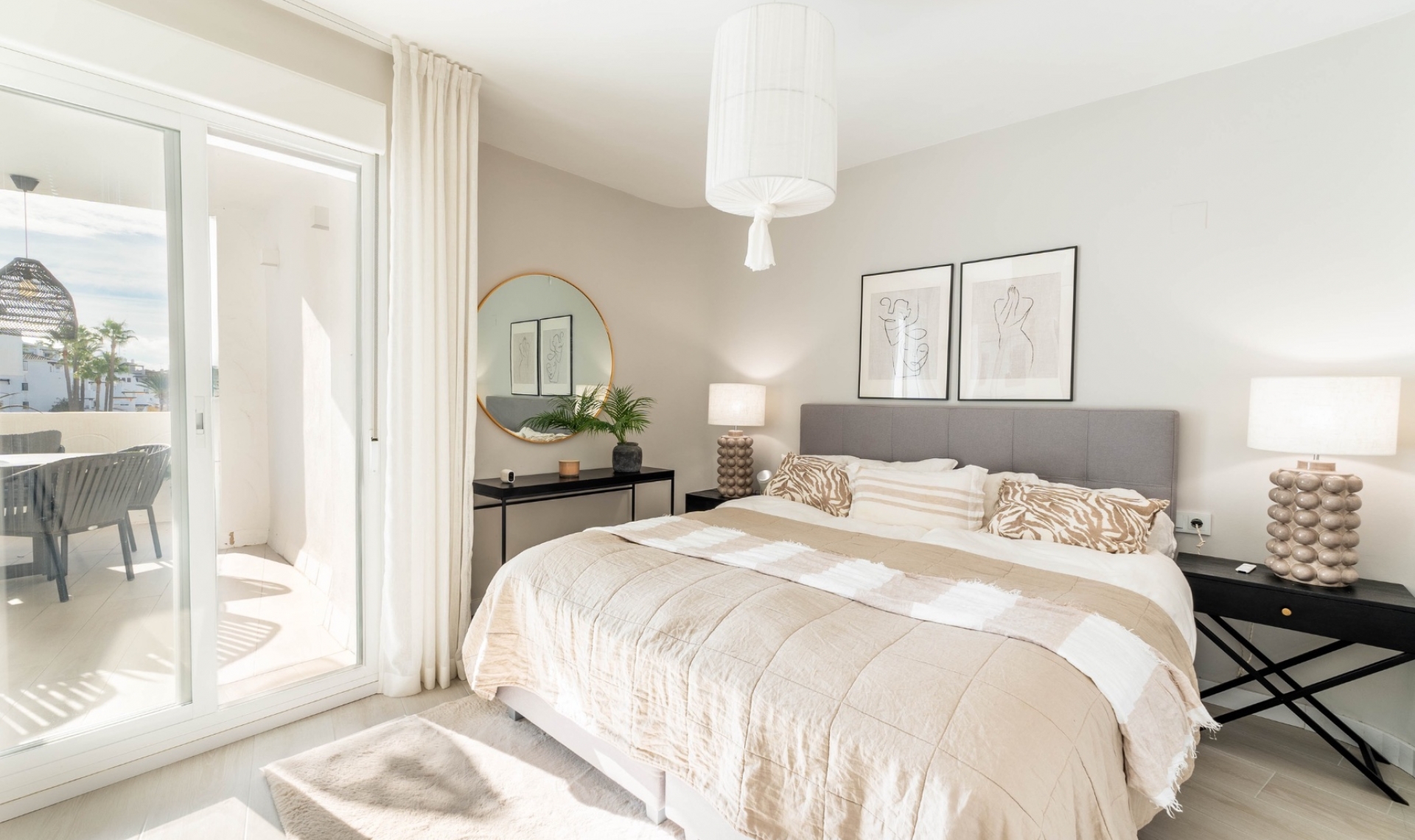 Hlavní ložnice je luxusním útočištěm s vlastním soukromým přístupem na terasu